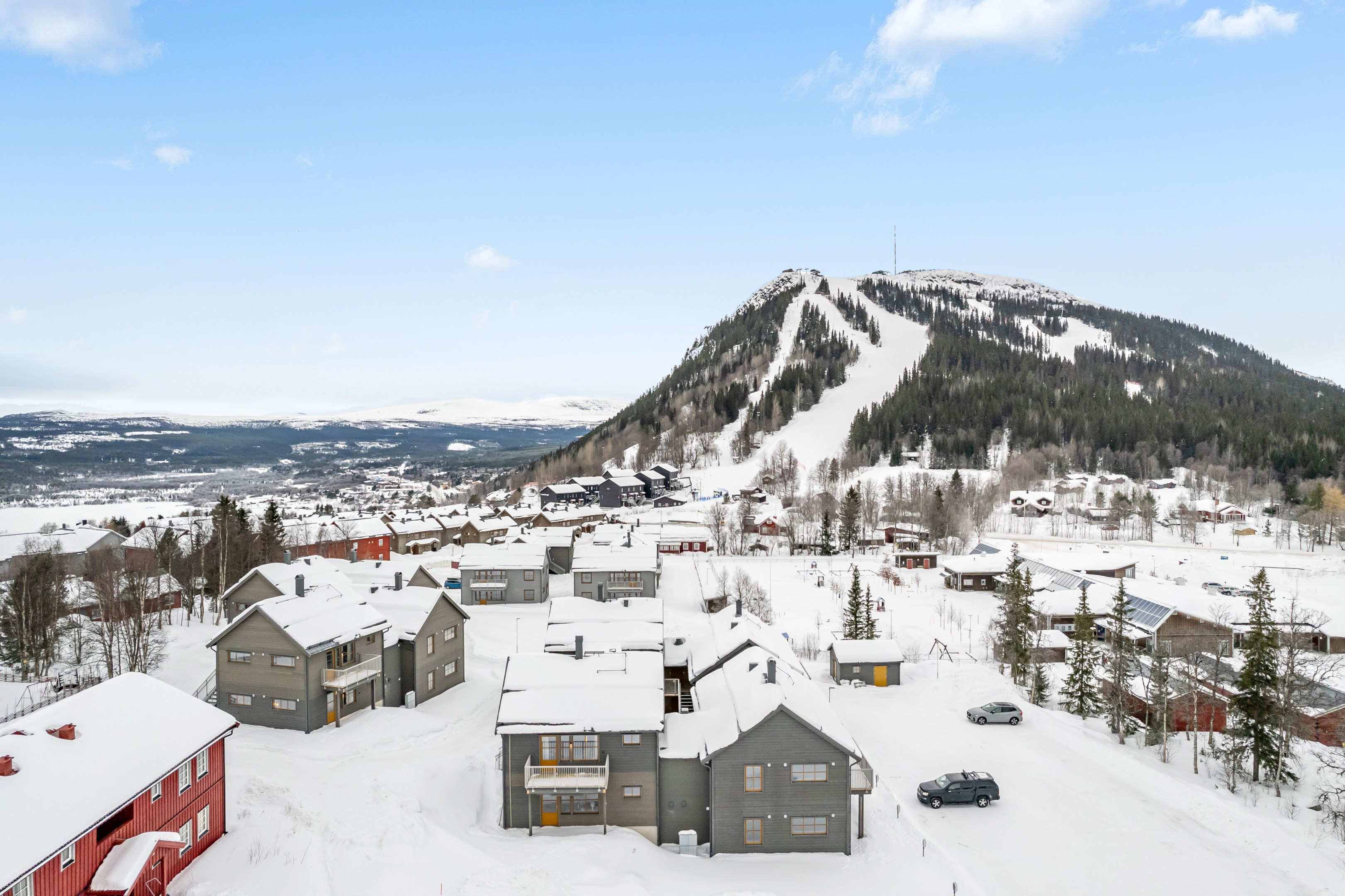 På soliga Funäsdalshöjden bor man i nya, välbyggda och snyggt designade lägenheter. Förmodligen de sista nybyggda lägenheterna, under överskådlig framtid, med så här centralt och vackert läge. Föreningens lån är endast 5 750 kr/m², vilket bidrar till att hålla räntekostnader, och därmed avgifterna, nere. Belåningsgraden är väldigt låg för att att vara nyproduktion! Drygt hälften av de 30 lägenheterna är sålda och inflyttade. Tillgängliga lägenheter framgår dels av "Orienteringsplan", dels av "Lägenhetsöversikt", som även visar priser, våningsplan mm. Båda finns under Dokument. En del lägenheter kan tillträdas omgående, en del inom några månader. Oavsett vilket kan överlåtelseavtal tecknas redan nu. Lägenheterna, om närmare 80 m², har 3 sovrum, 2 badrum, bastu, kombinerad tvättmaskin/torktumlare, balkong eller uteplats samt fiber installerat och klart. I lägenheterna på de övre planen finns en värmande kamin. Till varje lägenhet hör ett bra förråd om ca 7 m² och varje lägenhet har tillgång till en P-plats. Dessutom finns laddplatser och gästparkeringar. Föreningen har lämpligt nog både vallabod och cykeltvätt, vilka delas med de två grannföreningarna. I månadsavgiften ingår föreningens gemensamma kostnader för t.ex: VA, sophantering, fastighetsförsäkring, gemensam el, vägunderhåll och snöröjning. Här bor man högst upp på höjden med gott om sol och härlig utsikt mot Anåfjällen, Funäsdalberget och/eller Skarvarna, beroende vilken lägenhet man väljer. Och vill man inte sitta hemma och glo är det bara att öppna dörren och gå till allt, bokstavligen allt: skidspår, slalombacke, restauranger, affärer, förskola, grundskola, gym, skidbuss, busstation mm. Dessutom är det enkelt att kombinera familj och ett rikt friluftsliv med jobb på distans eller på plats. Att bo i Funäsdalen är helt enkelt ett gott liv - oavsett om det är permanent eller då och då! NOTERA! Det finns även några mindre lägenheter på 54,5 m². De finns i en separat beskrivning under adressen: Funäsdalshöjden 8D.