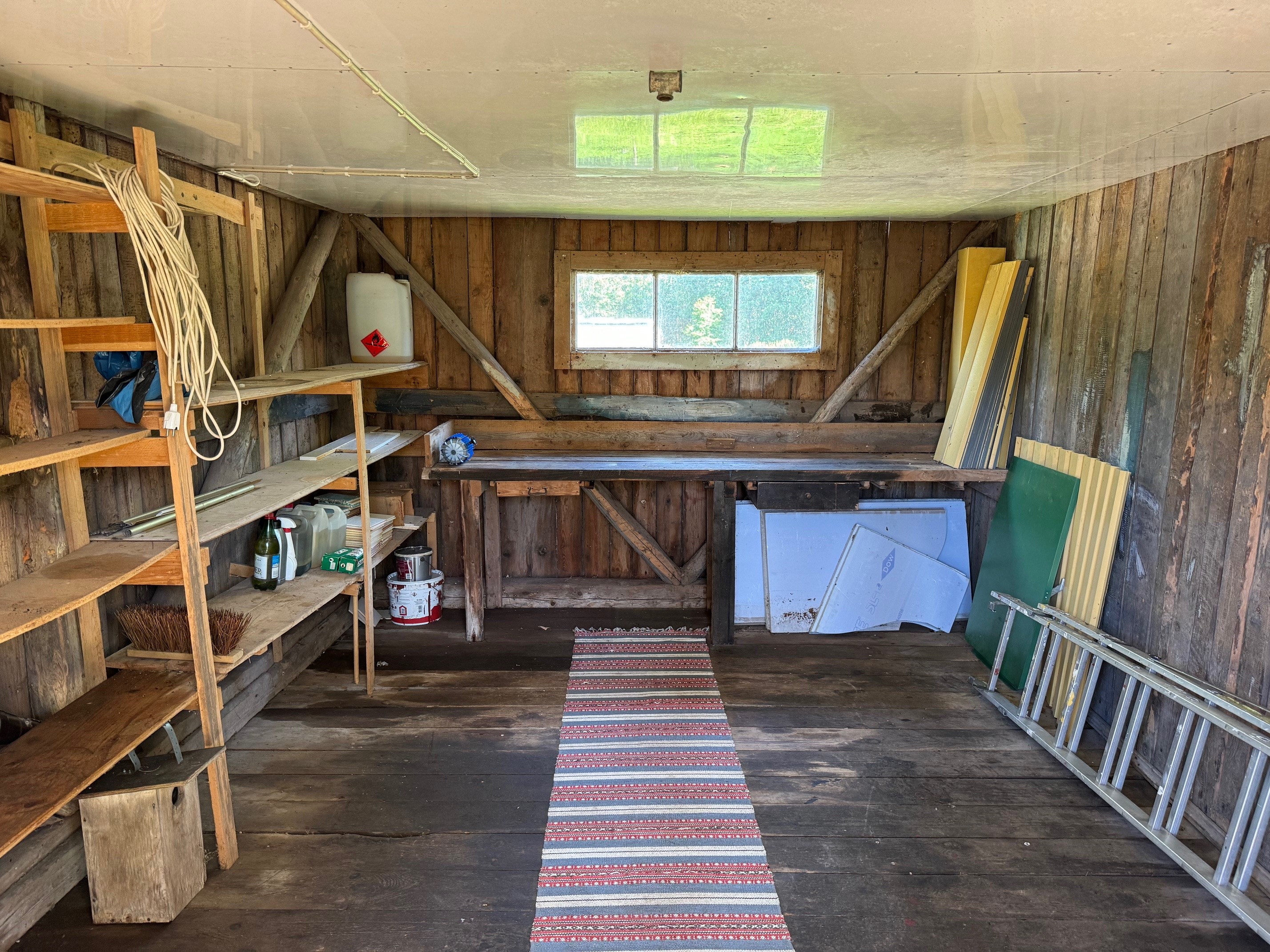 1 1/2 plans hus med torpargrund, plåtfasad med gavlar i tegel samt plåttak. Inglasad veranda. SJöutsikt över Skagern Noret Skagersvik. Bottenplan: Möblerbar hall med två garderober och överskåp. Badrum med WC, tvättställ, duschkabin och tvättmaskin. Förråd med varmvattenberedare och vattenpump. Vattenburet system med vedpanna i köket. Luftvärmepump. Kök med spishäll, spis, fläkt, diskbänk, kylskåp, skafferi och vedpanna. Vardagsrum, matsal. Övervåning: Stor hall med balkong, två sovrum och stor klädkammare (kan användas som sovrum). Stort inrett uthus byggt i trä med plåttak. Festlokal/verkstad. Brygghus/tvättstuga. Förråd/verkstad. Kyl och frys. Stort förråd/rum på övervåning. Jordkällare. Grävd brunn, enkelt avlopp - 2-kammarbrunn. Trädgård med fruktträd.