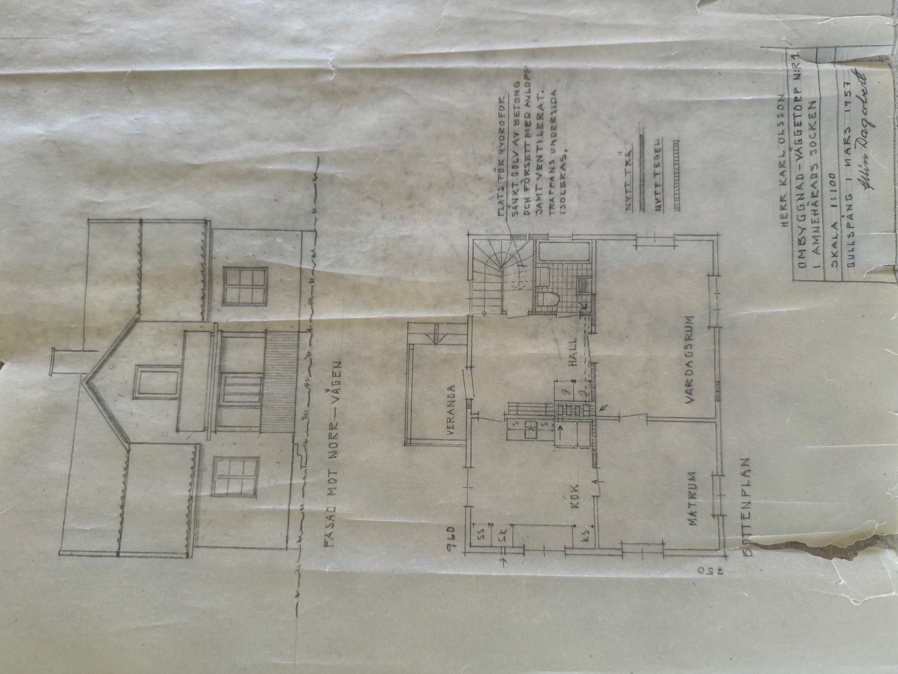 Bostad, uthus samt tomt c:a 1 500 m² skall avstyckas, köparen betalar Lantmäterikostnaderna.