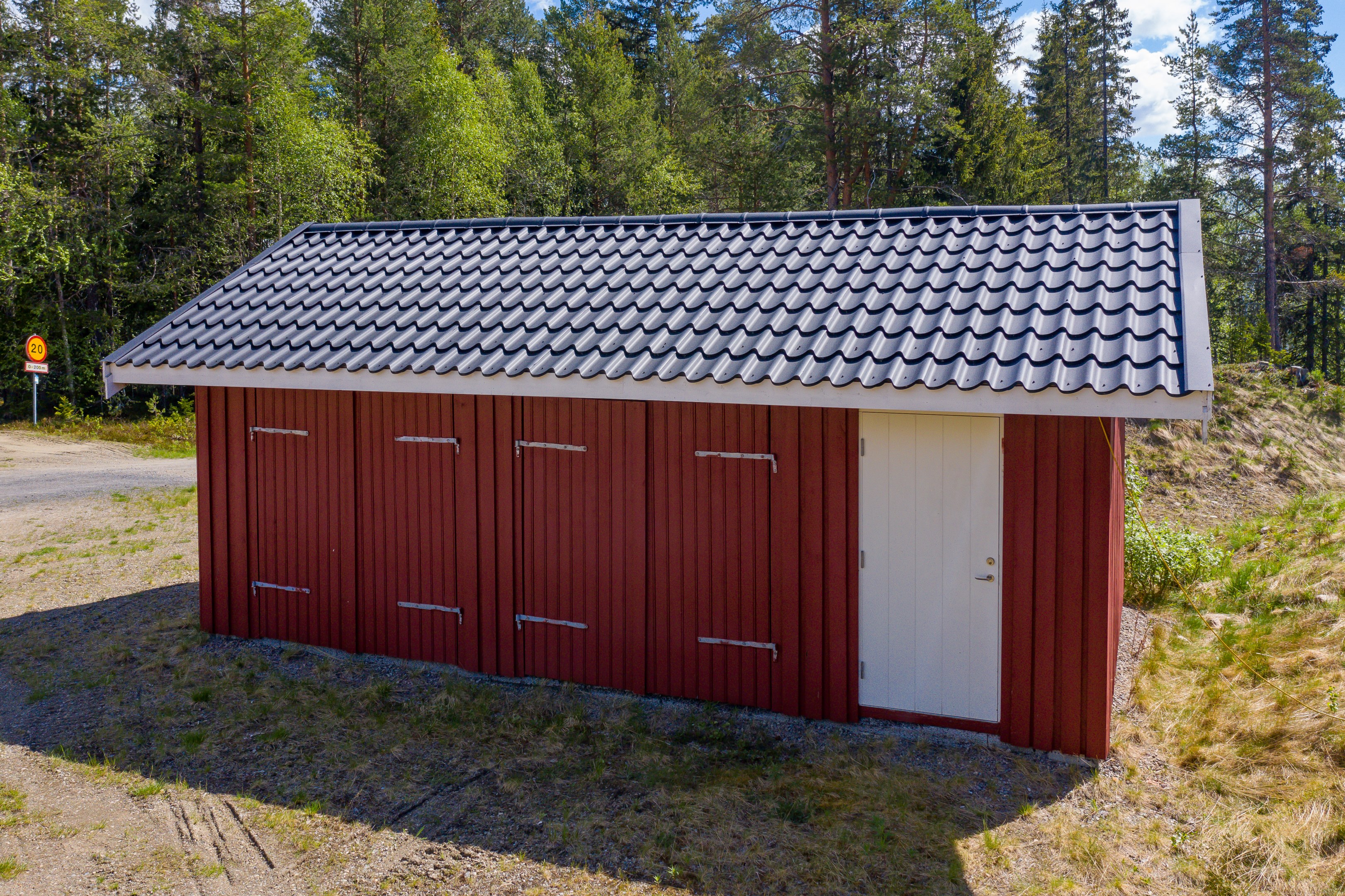 På fastigheten finns ett väl tilltaget skotergarage/förråd med plats för minst tre skotrar. Garaget har singelgolv och är oisolerat.