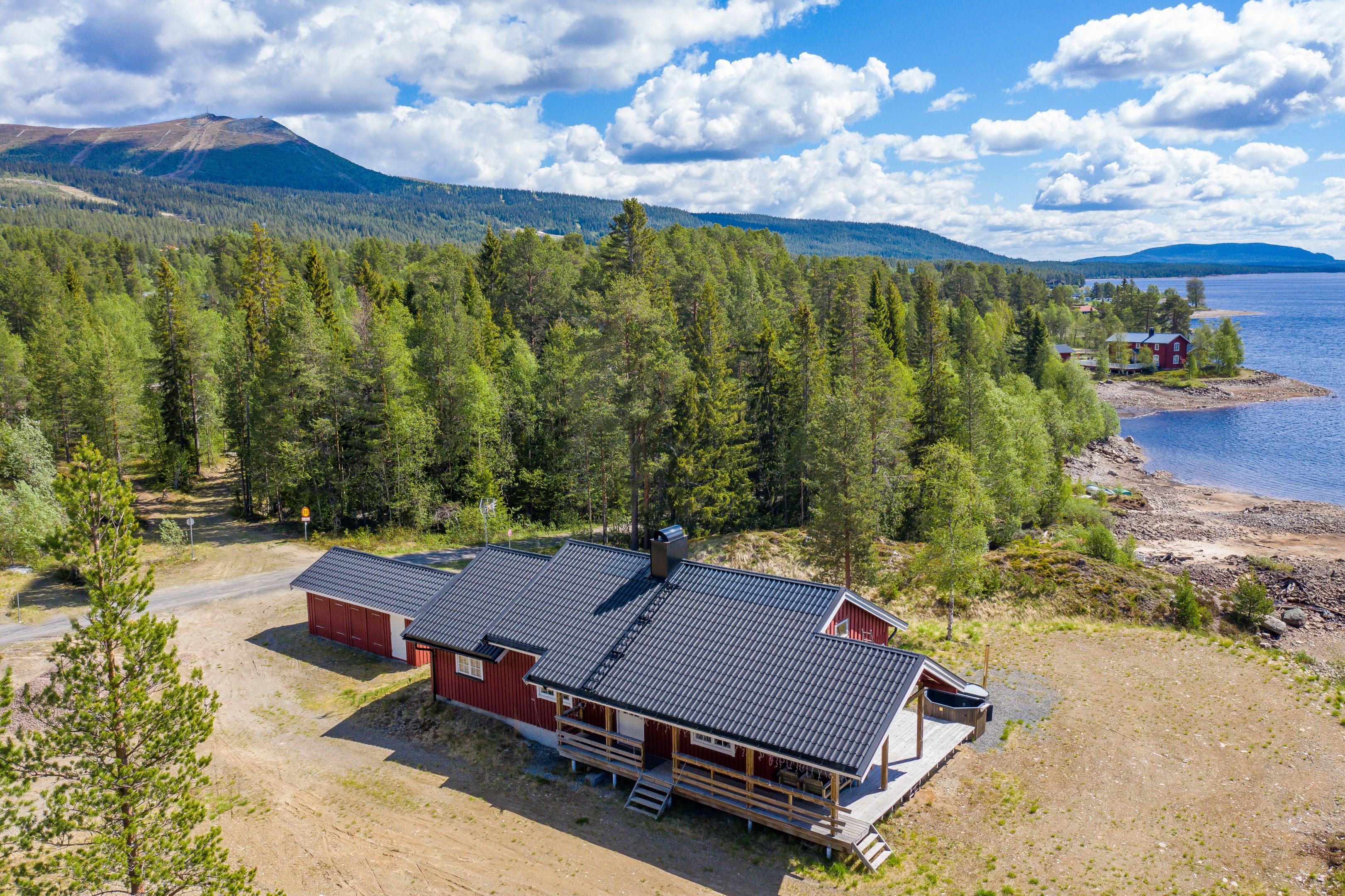 Sjö, fjäll, nära byn och alla aktiviteter året om! Ibland får onekligen beskrivningen LÄGET extra tyngd. Den här fastigheten är unikt belägen alldeles vid Lofssjöns vackra strand. Här inleder och avslutar man gärna dagen på verandan med magisk vy över fjäll och sjö. När det sedan är dags för aktiviteter, så är det bara att välja; kanske ett dopp, en fisketur eller varför inte kliva i längdskidorna eller starta skotern - allt med direkt tillgång från tomten. Från fastigheten tar man sig direkt ut på leden som tar en vidare upp på fjället. Vi rekommenderar ett besök till Lofsdalens vackert belägna våffelstuga för en nygräddad våffla och en rykande kopp varm choklad. Själva huset upplevs stort och rymligt. Det är på 90 kvm vilket gör att alla rummen erbjuder gott om plats. Storstugan har plats för både soffgrupp, trevlig matplats och läshörna. Här finns en gedigen murad spis med insats för extra skön och effektiv värme. I det trivsamma köket finns också en eldstad. Köket erbjuder bra arbetsutrymmen för flera personer samtidigt, vilket kan vara extra trevligt när man ska fixa middagen framåt kvällen. Här får även ett matbord för 3-4 personer plats vid fönstret. Tre rymliga sovrum ger totalt 8-11 bäddar, för stora och små. Med andra ord kan flera familjer bo här utan problem. Badrum med kommod, duschkabin och tvättpelare. Husets altan är delvis taktäckt och löper utmed två sidor av huset mot söder och väster. Härifrån har man en helt underbar utsikt med Lofssjön och fjällen i blickfånget. Att slå sig ner i vintersolen med en varm kopp kaffe mot husväggen är en njutning. Likaså de oförglömliga grillkvällarna i kvällssolen när sommaren är som skönast. Altanen nås inifrån storstugan. Utvändigt går man via en liten trappa i söder eller i anslutning till entrén. Bredvid altanen finns dessutom en vedeldad badtunna där man kan koppla av efter en fartfylld dag på fjället. Till fastigheten hör ett väl tilltaget skotergarage/förråd med plats för minst tre skotrar. Det har en entrédörr och två garageportar åt väster, samt en större garageport åt öster ner mot sjön och skoterleden. Tomten, som alltså bara ligger ca 150 meter från sjön, är en vacker och lättskött naturtomt på drygt 1 300 kvm. Strax bortom huset ansluter man till den fina skoterleden mot sjön, som sedan erbjuder varierad åkning mil efter mil. Till Lofsdalens by är det gångavstånd - här finns bl.a. affärer, bensinmack, restaurang och sportshop med skiduthyrning. Och en bit bort ligger den attraktiva fjällanläggningen med en mängd uppskattade aktiviteter för alla åldrar. För de som föredrar långdåkning, vandring och cykling, är Lofsdalen känt för sina vackra och välskötta leder.