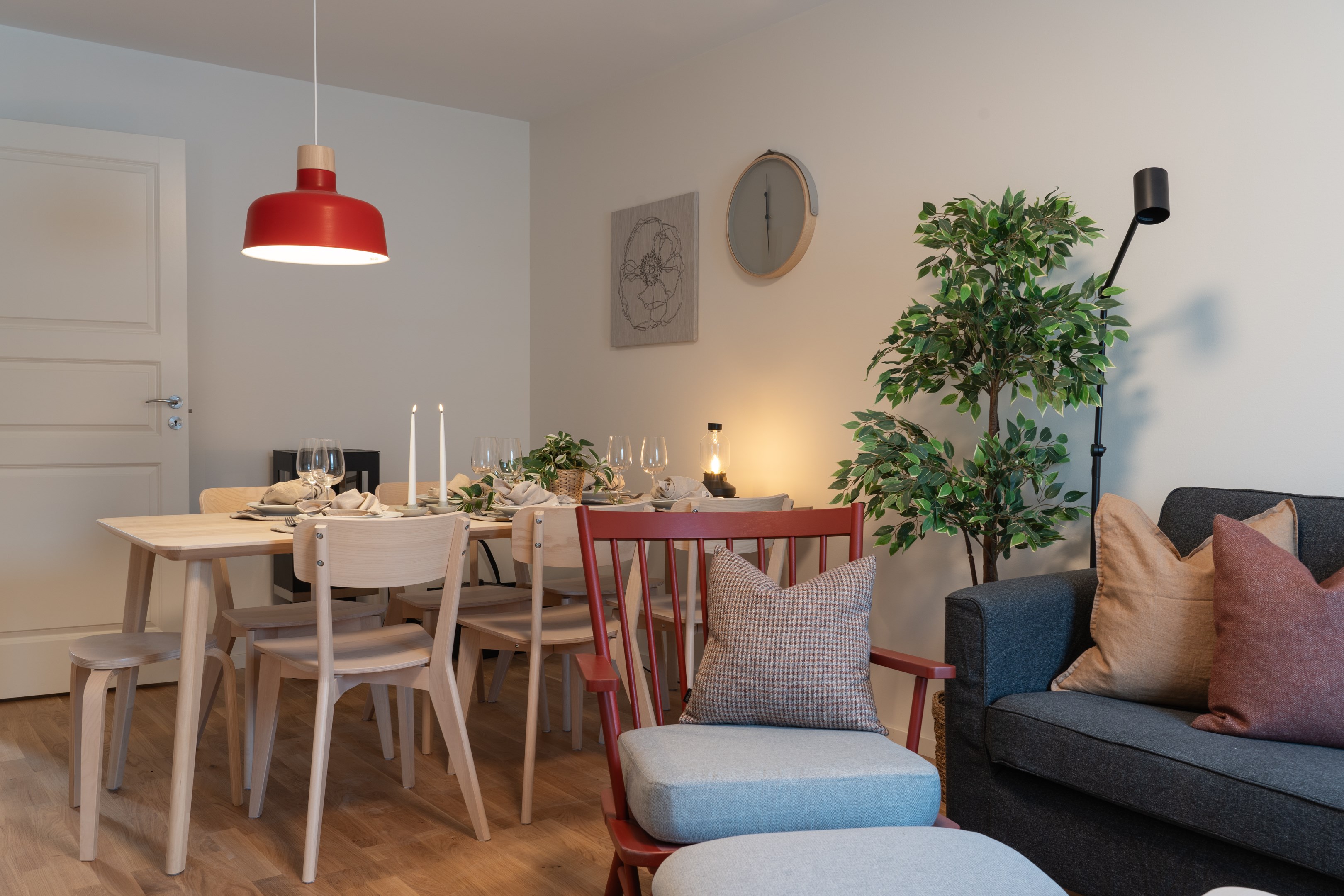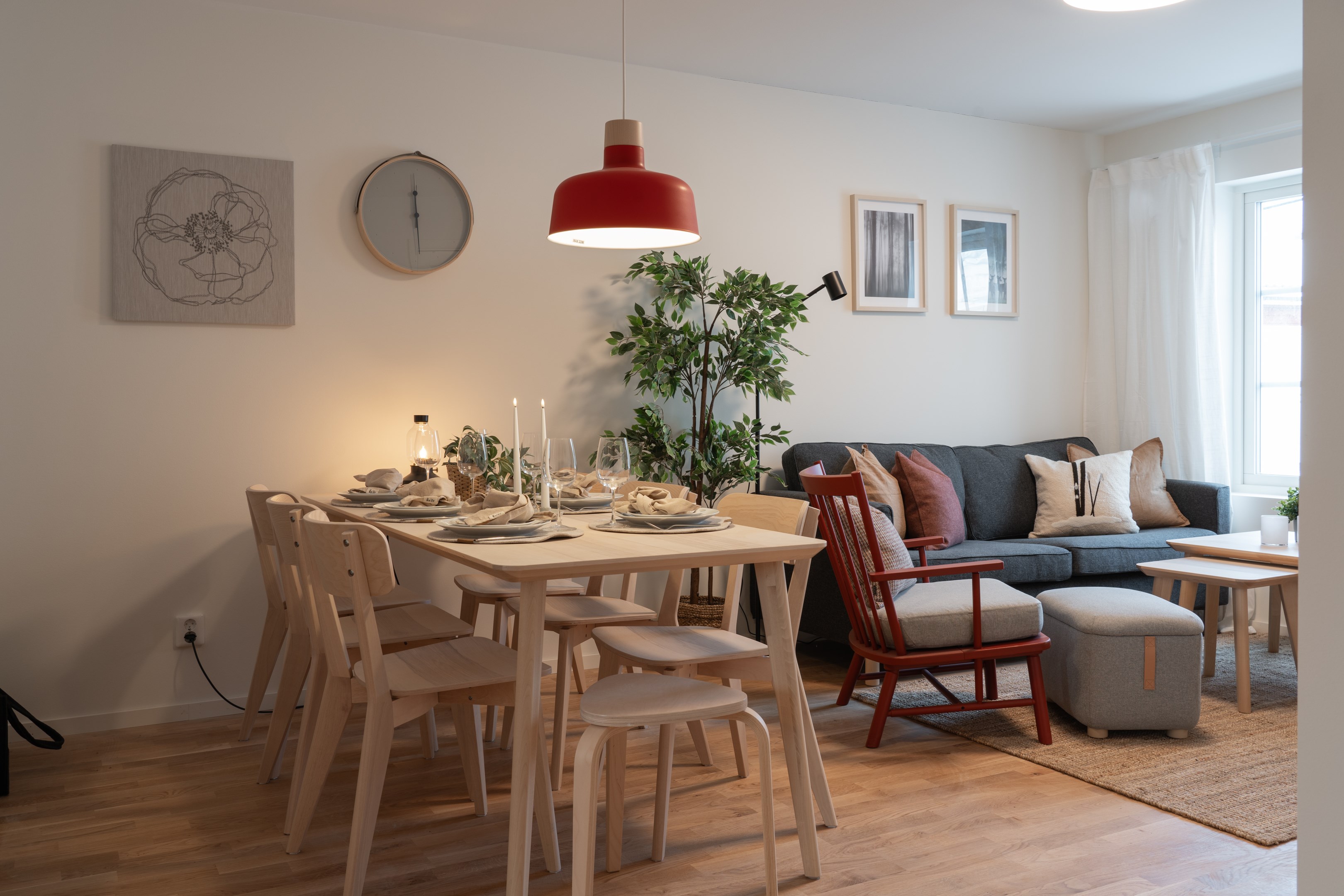 Utgångspriset avser oinredd lägenhet utan möbler och inventarier. För den som vill ha bostaden färdigmöblerad kan man smidigt köpa till detta. Samtliga möbler, husgeråd, tavlor, gardiner och TV säljs för inköpspris från IKEA och kostar 90 000 kr.