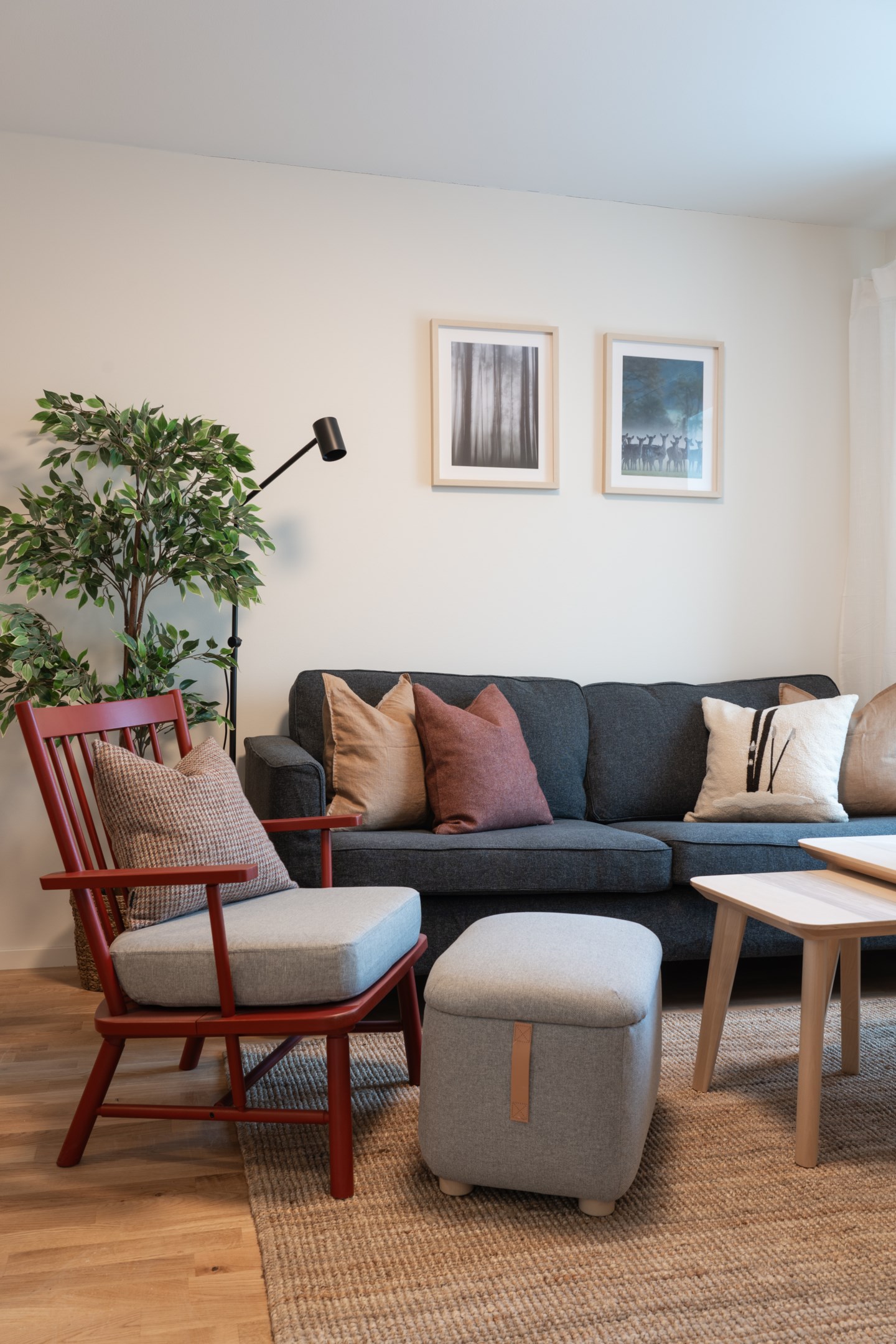 Utgångspriset avser oinredd lägenhet utan möbler och inventarier. För den som vill ha bostaden färdigmöblerad kan man smidigt köpa till detta. Samtliga möbler, husgeråd, tavlor, gardiner och TV säljs för inköpspris från IKEA och kostar 90 000 kr.