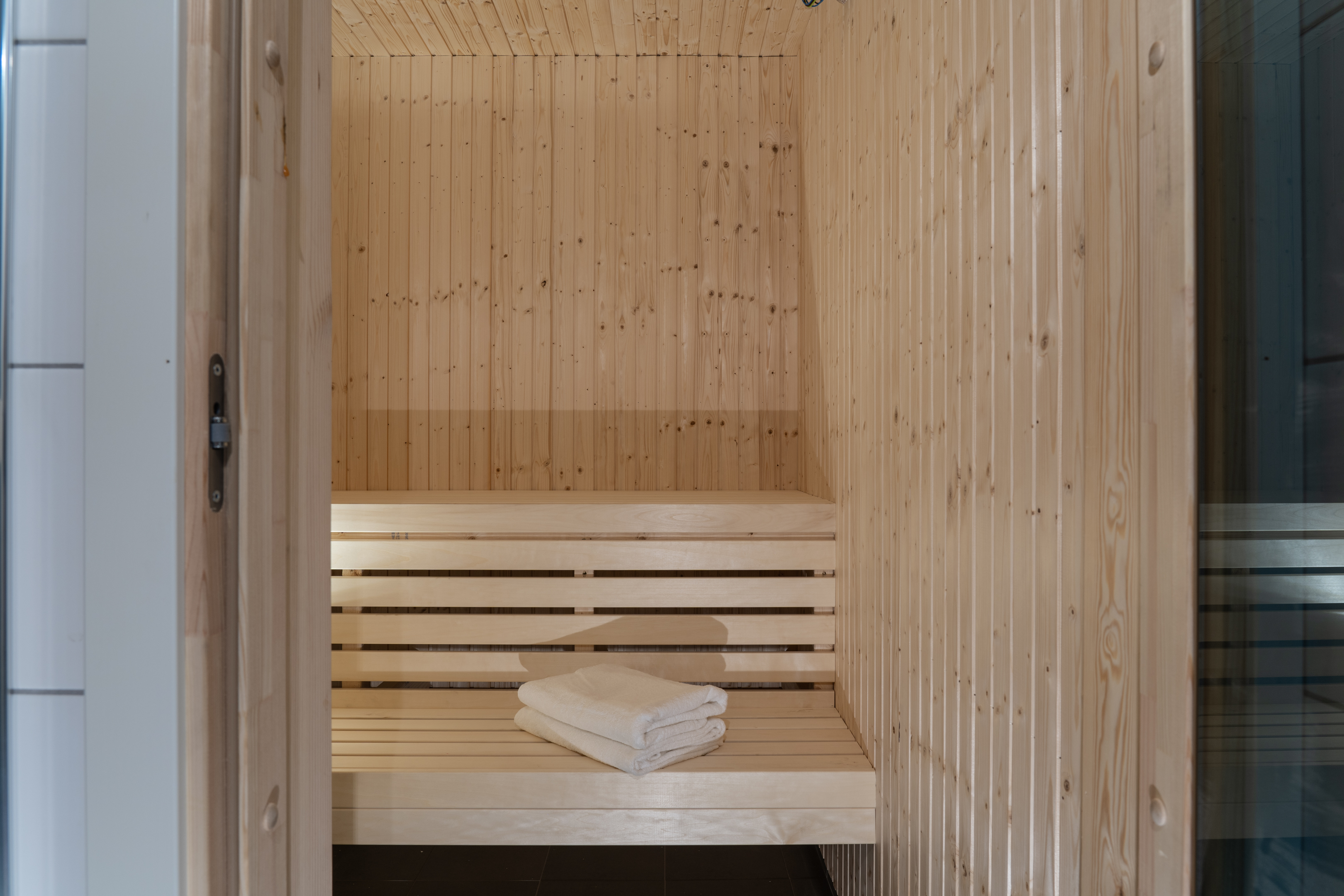 I allrummet finns ingången till badrum med bastu. Badrummet har tvättpelare, värmepanna, WC, tvättställ med kommod och spegel samt dusch med duschvägg i glas. Klinker på golv, kakel på väggar och vitmålat tak. Innanför badrummet finns en bastu med inredning och sittlavar i asp. Eldrivet bastuaggregat och belysning under lavar.