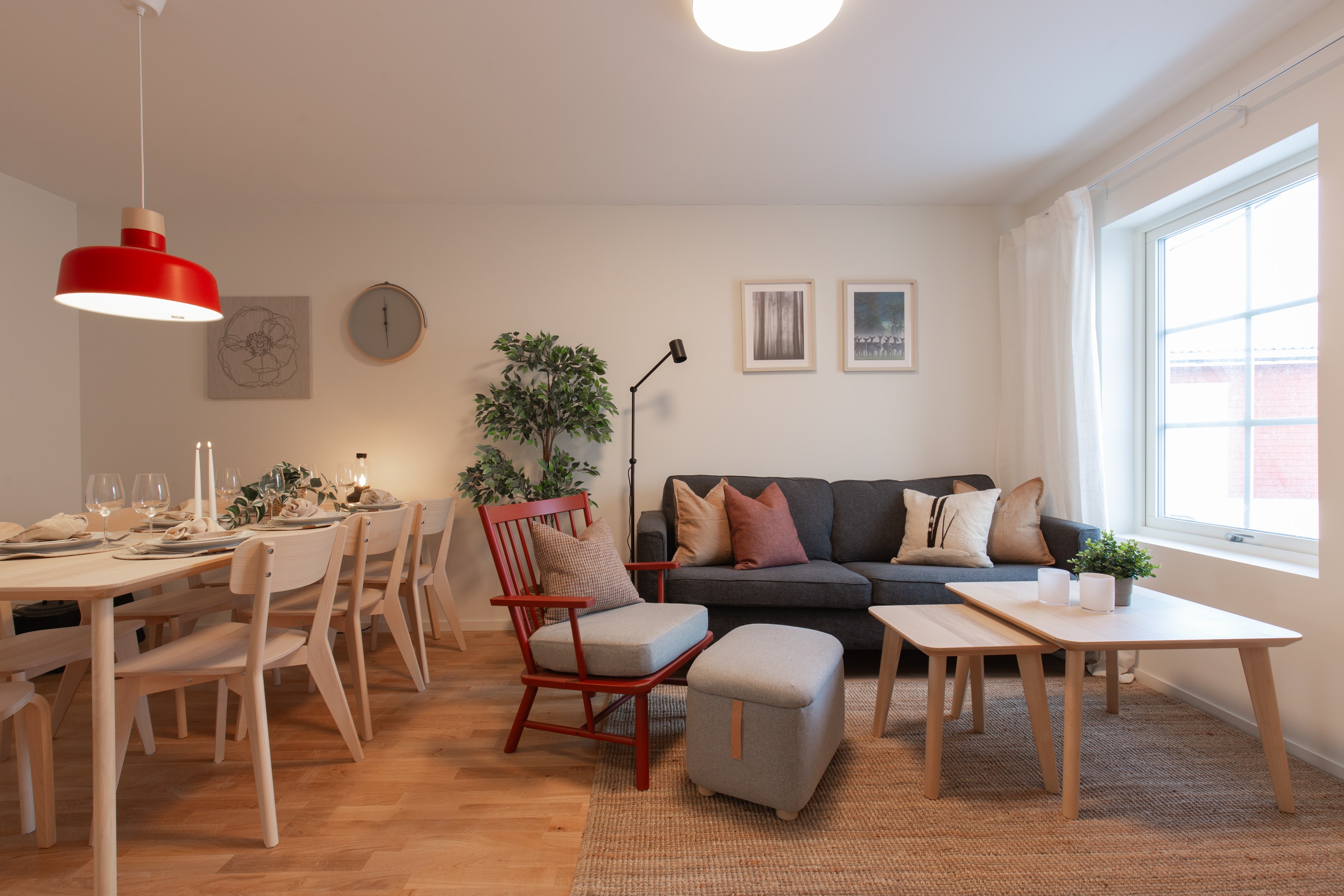 Utgångspriset avser oinredd lägenhet utan möbler och inventarier. För den som vill ha bostaden färdigmöblerad kan man smidigt köpa till detta. Samtliga möbler, husgeråd, tavlor, gardiner och TV säljs för inköpspris från IKEA och kostar 90 000 kr.