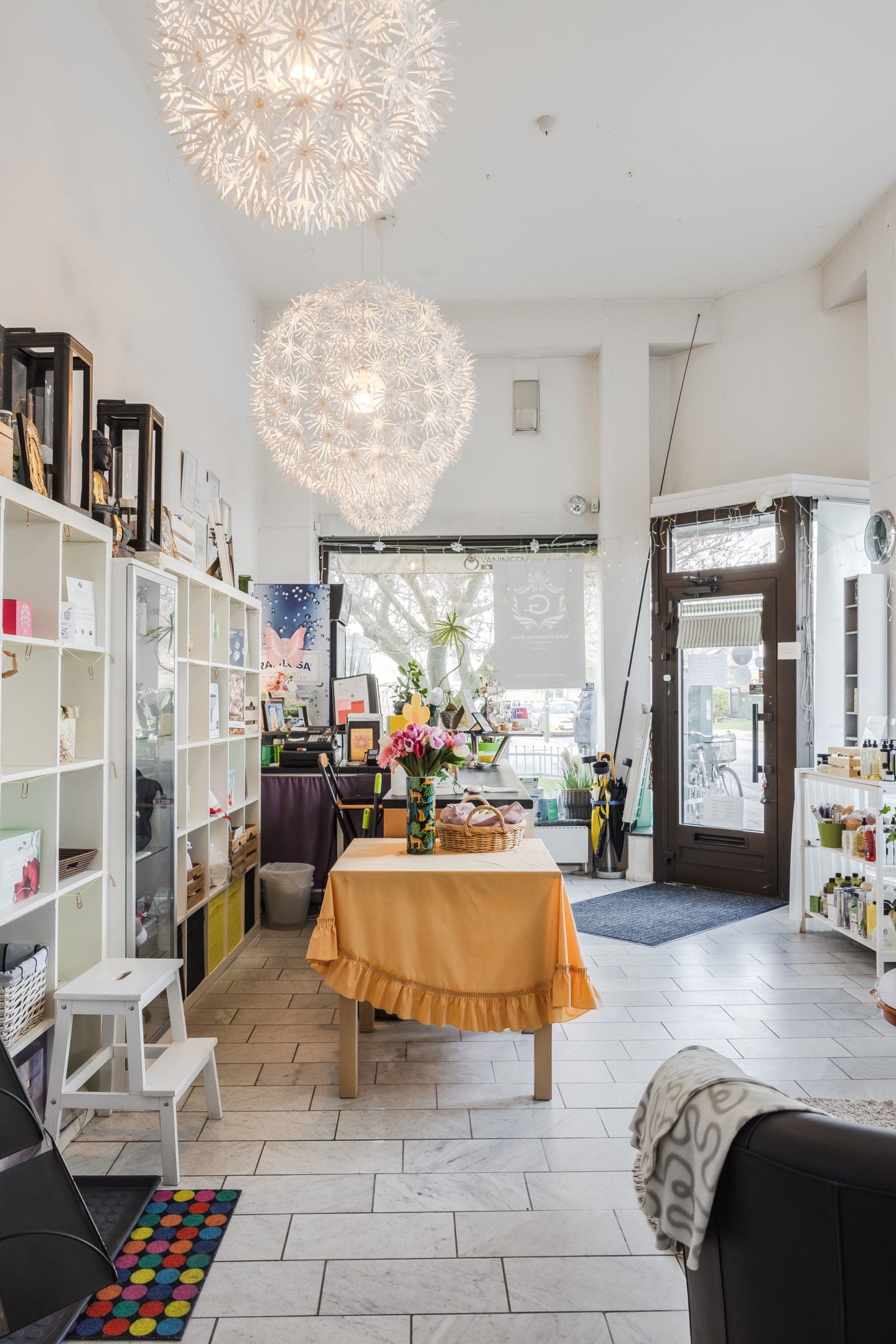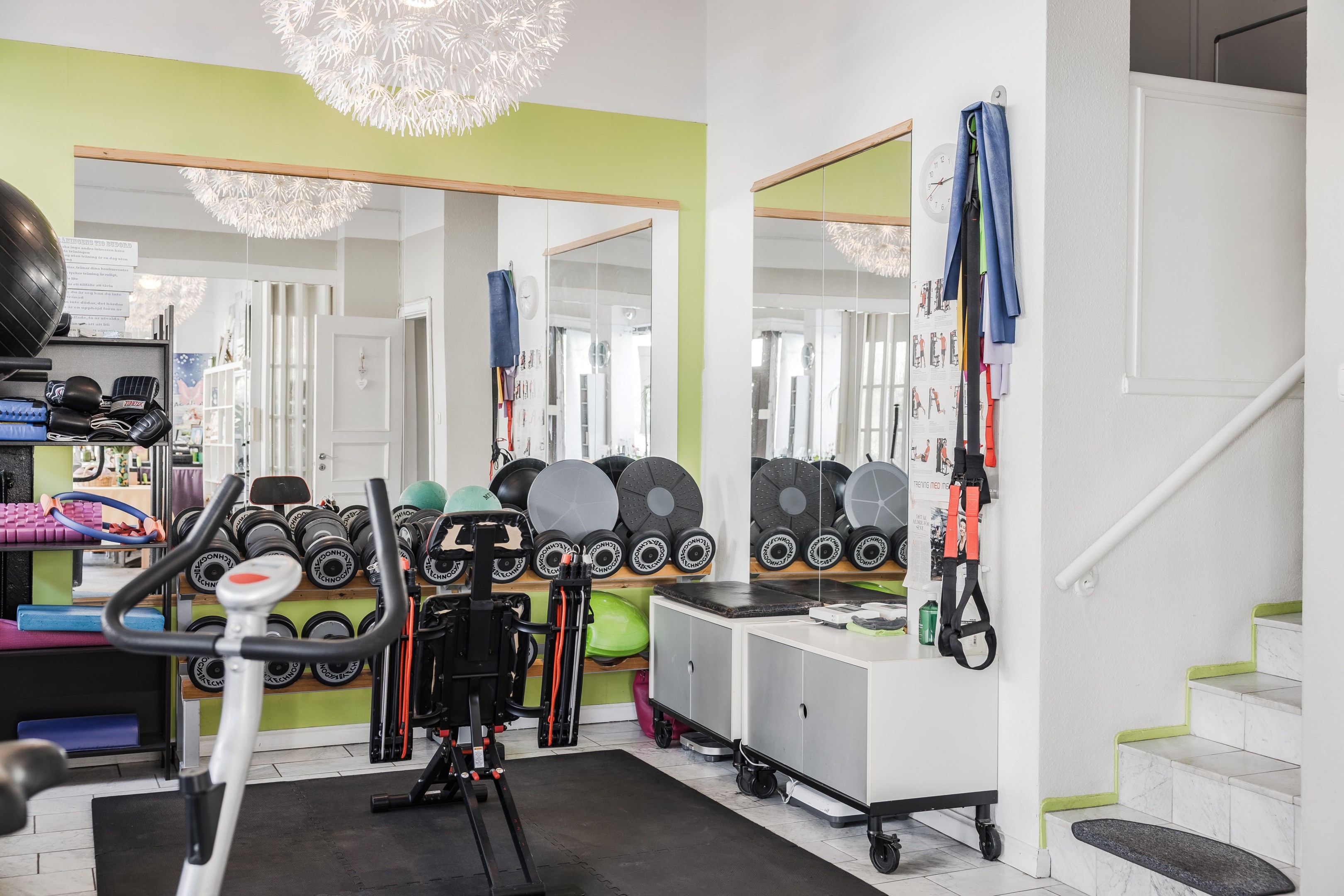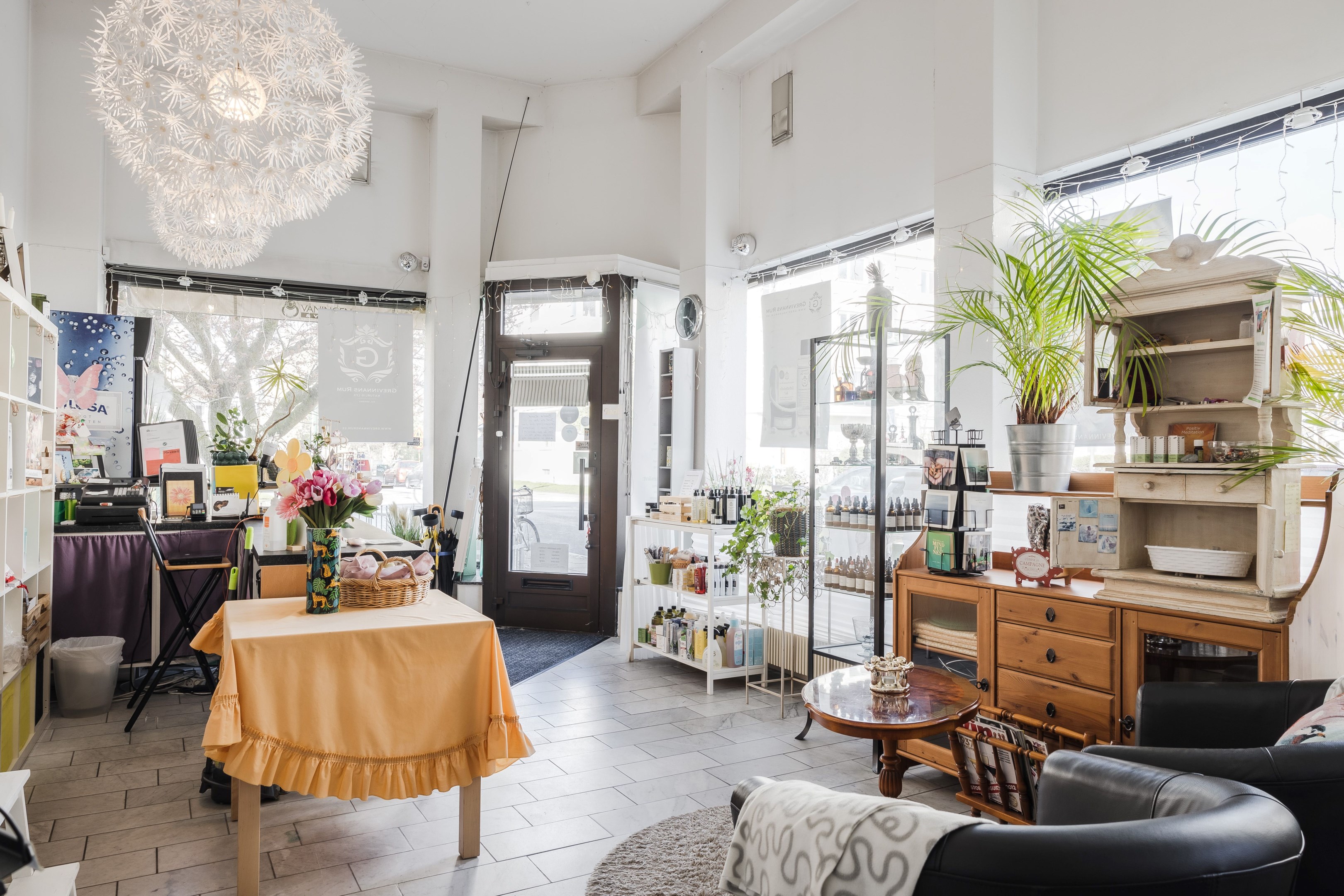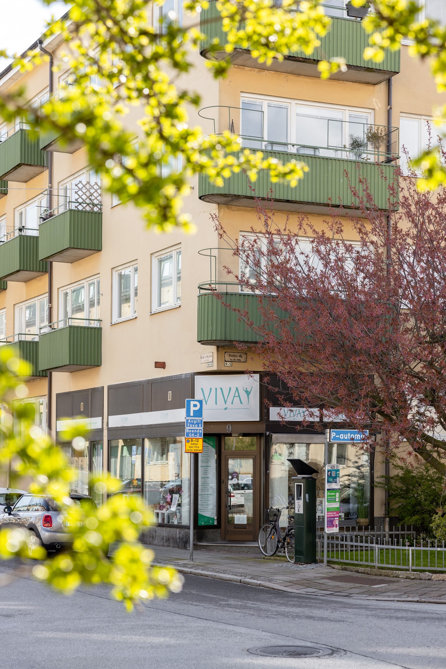 Butik med hörnläge och bra skyltmöjligheter. Utvändigt finns det plats för t ex några sittplatser till höger om entrén. F n hyrs lokalen av ett företag som driver wellnessinriktad verksamhet men bl a ett litet gym, försäljning av wellnessprodukter samt behandlingar. Lokalen kan dock passa kan passa för många olika typer av verksamheter. Utöver två rum i butiksplan så finns också ett mindre utrymme en halv trappa upp (passar ev som väntrum eller som kontorsplats) samt ett mindre pentry och ett källarplan där det har varit behandlingsrum etc. Enligt hyresavtalet är lokalen 40 kvm. (Anmärkning: Troligen är källaren ej inräknad i denna yta) Hyran för lokalen är f n 10.442 kr per månad plus fastighetsskatt 748 kr / månad. Summa hyra inkl moms och fastighetsskatt är f n 13.802