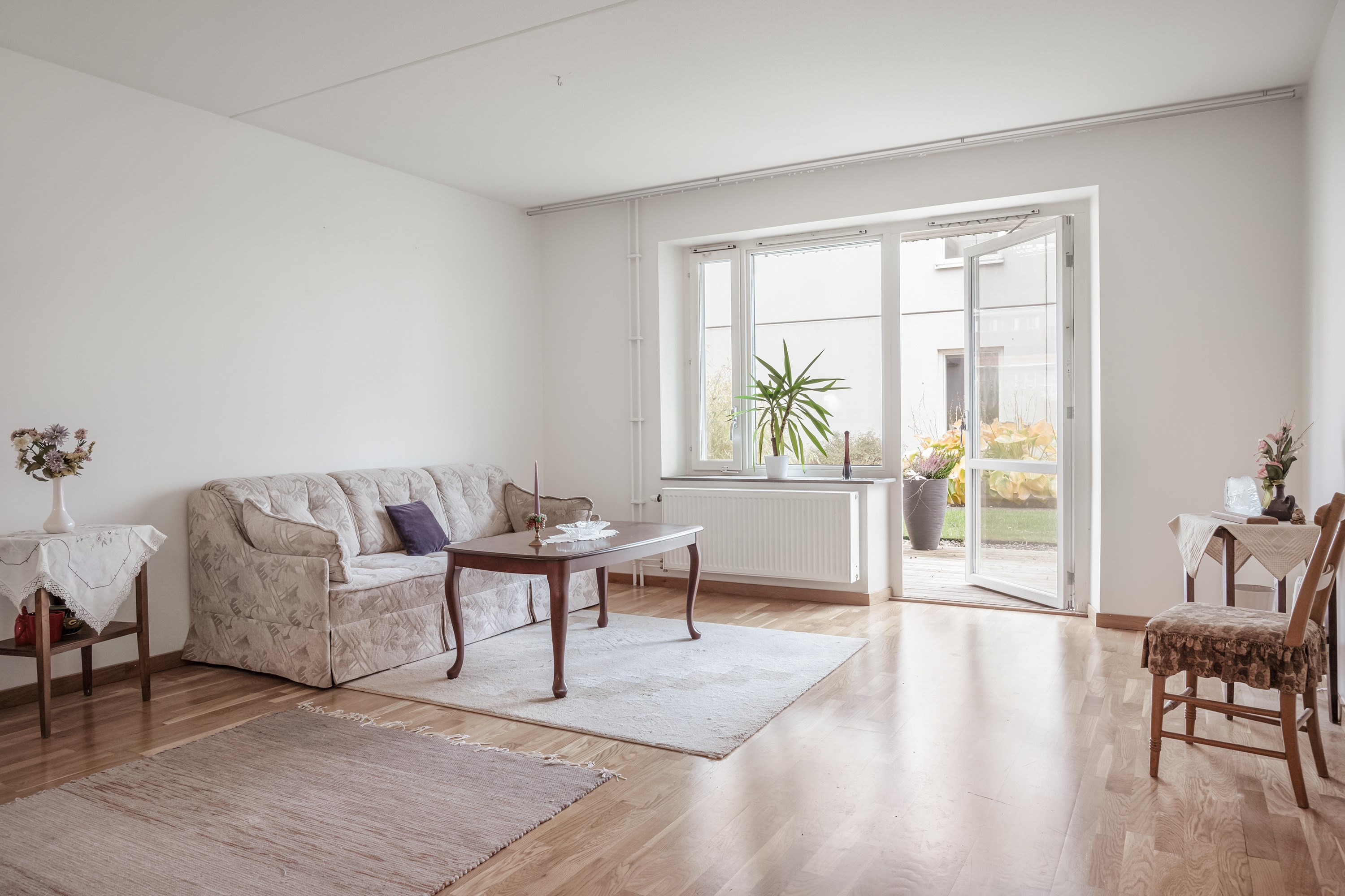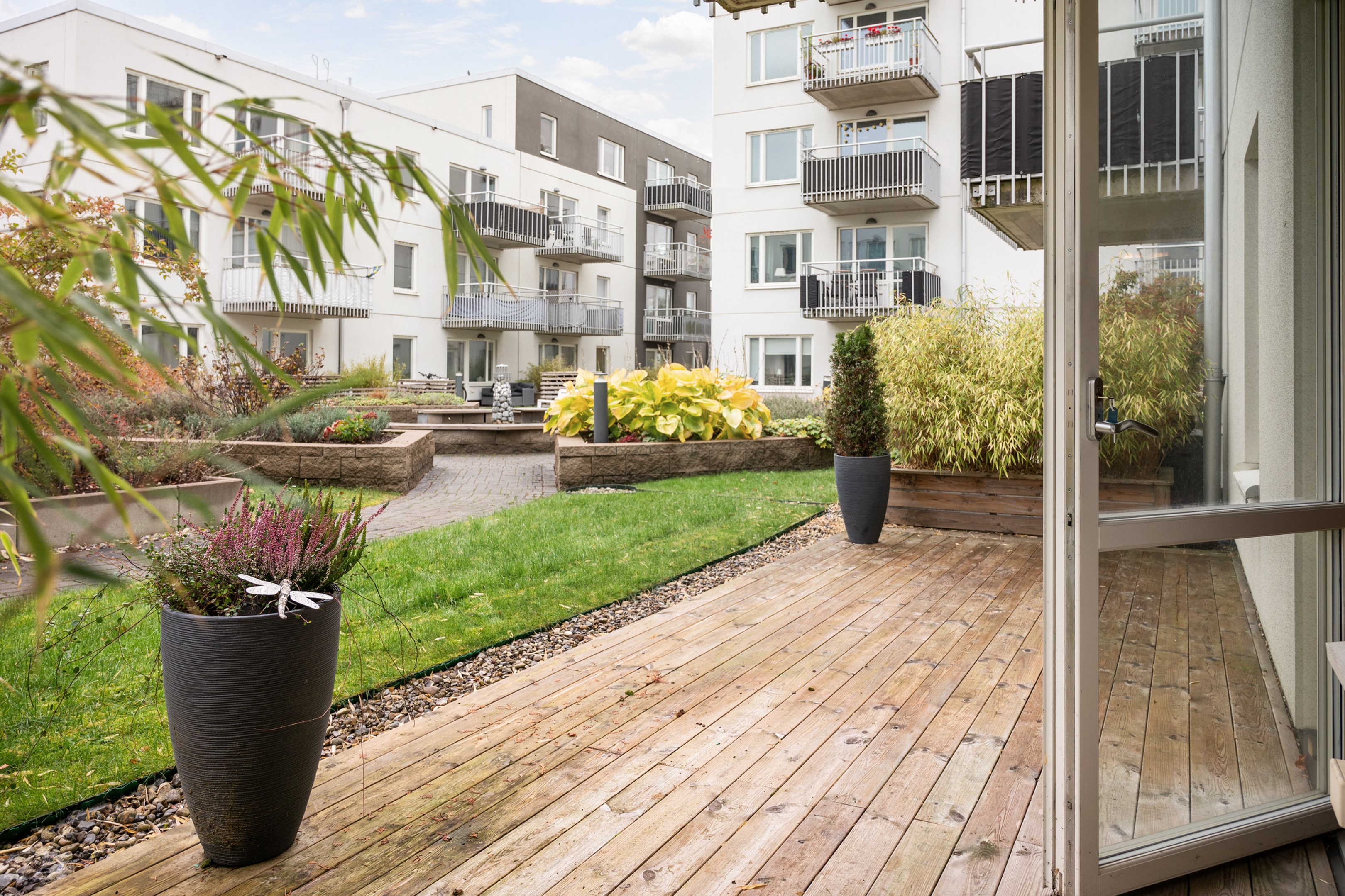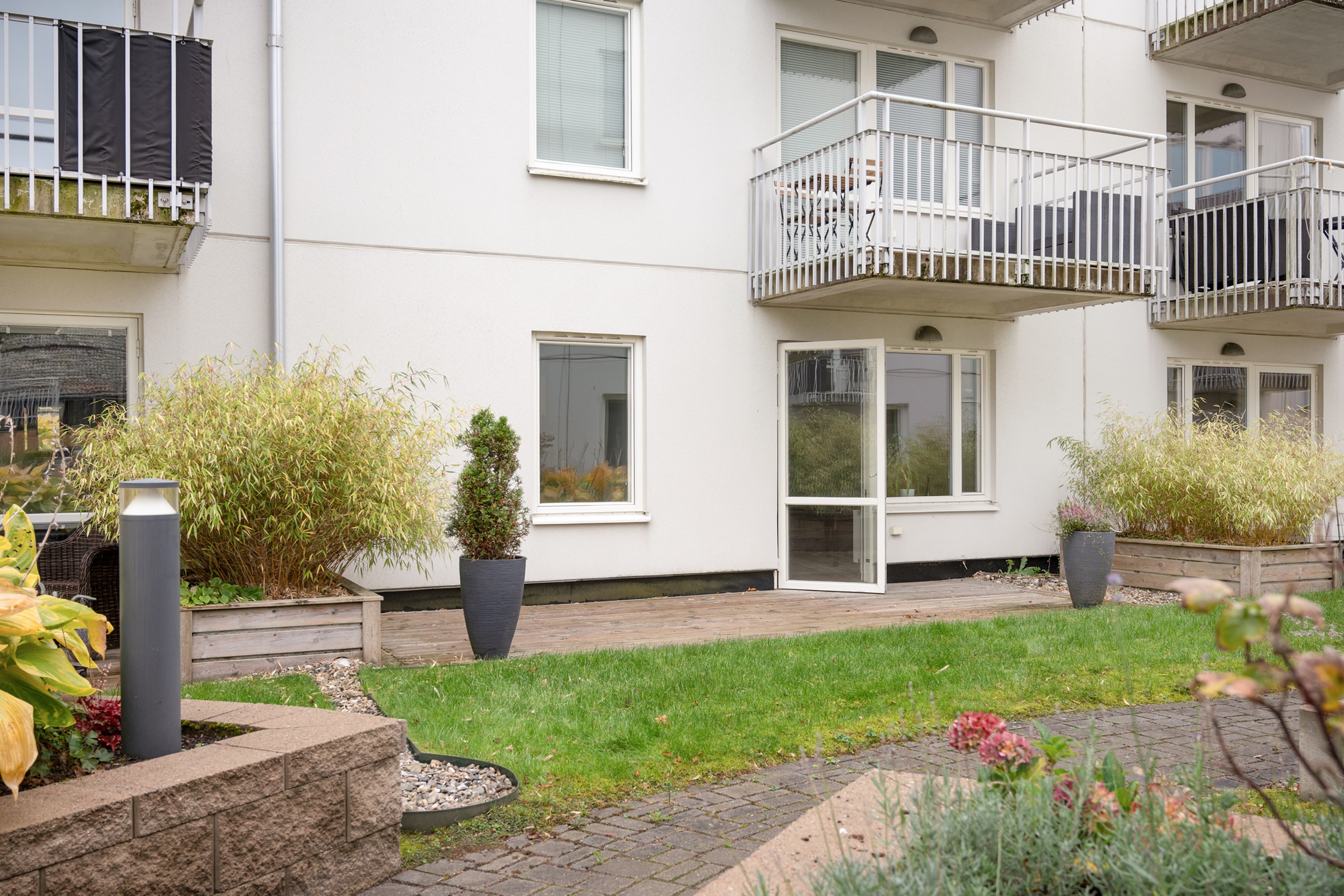 Välplanerad lägenhet med generösa förvarings utrymme Vi kliver in i en hall med klinker golv, avhängning samt en garderob. Vi möts av härligt ljus insläpp från vardagsrum som har utgång till altan/uteplats. Öppen planlösning mot kök som har vit skåps inredning samt all maskinell utrustning. Helkaklat badrum, dusch, WC, tvättfat med kommod samt golvvärme, tvättmaskin, torktumlare samt arbetsbänk. Sovrum med garderober. Separat walk -in- closet.