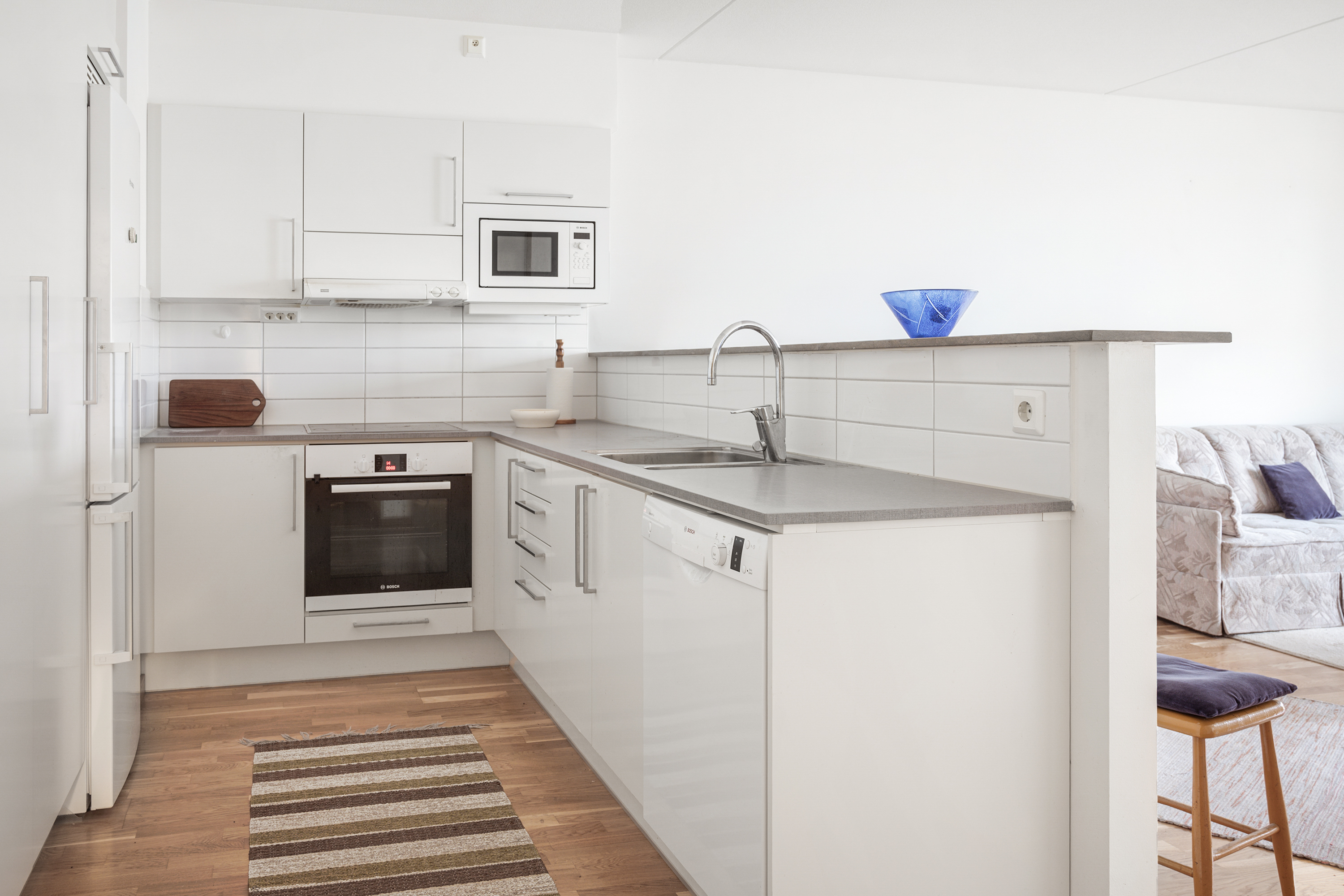 Bosch kyl, frys, spis häll., micro ugn, diskmaskin. Parkettgolv, städskåp.