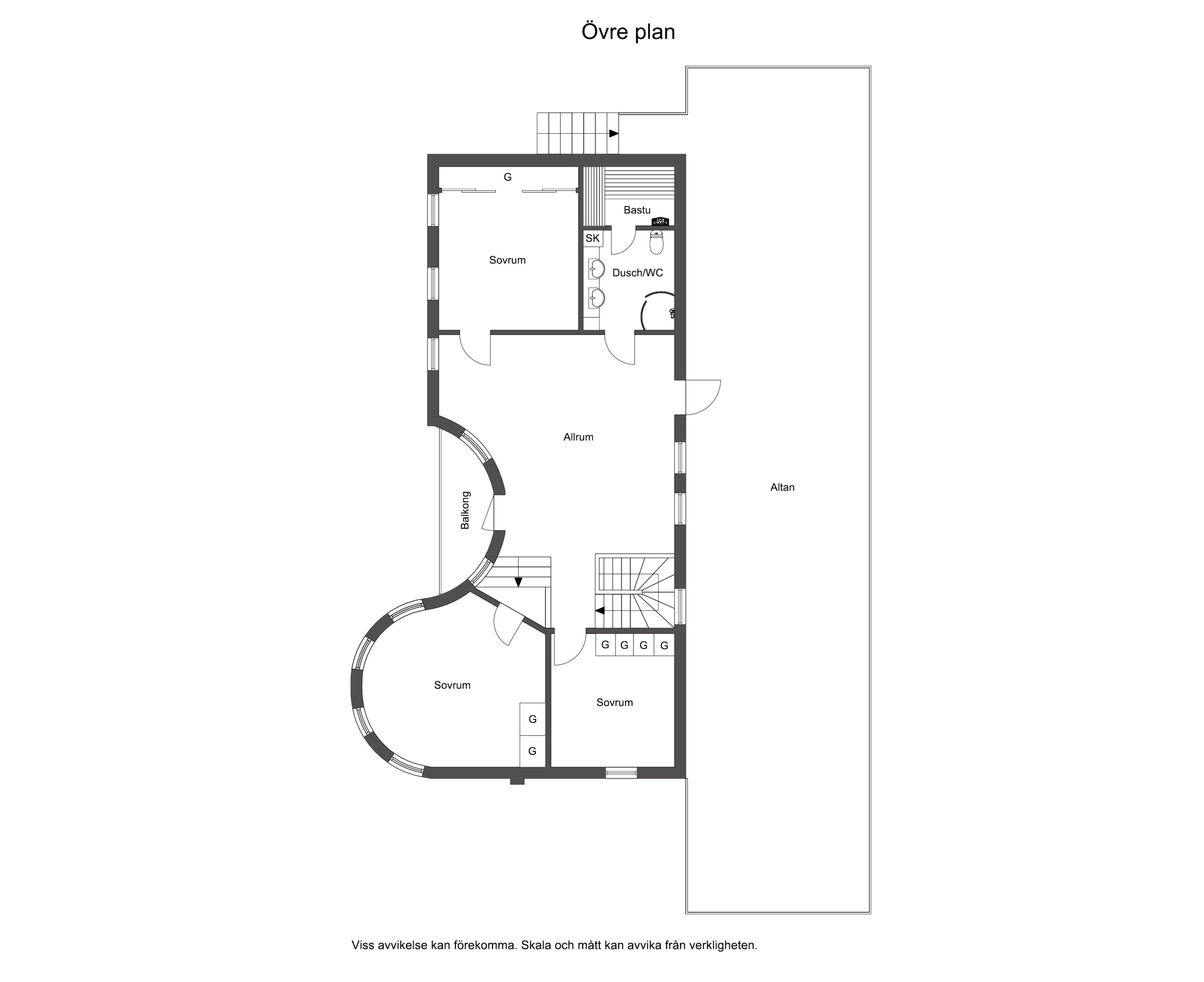 Stort allrum på övre plan med massor av olika möbleringsmöjligheter