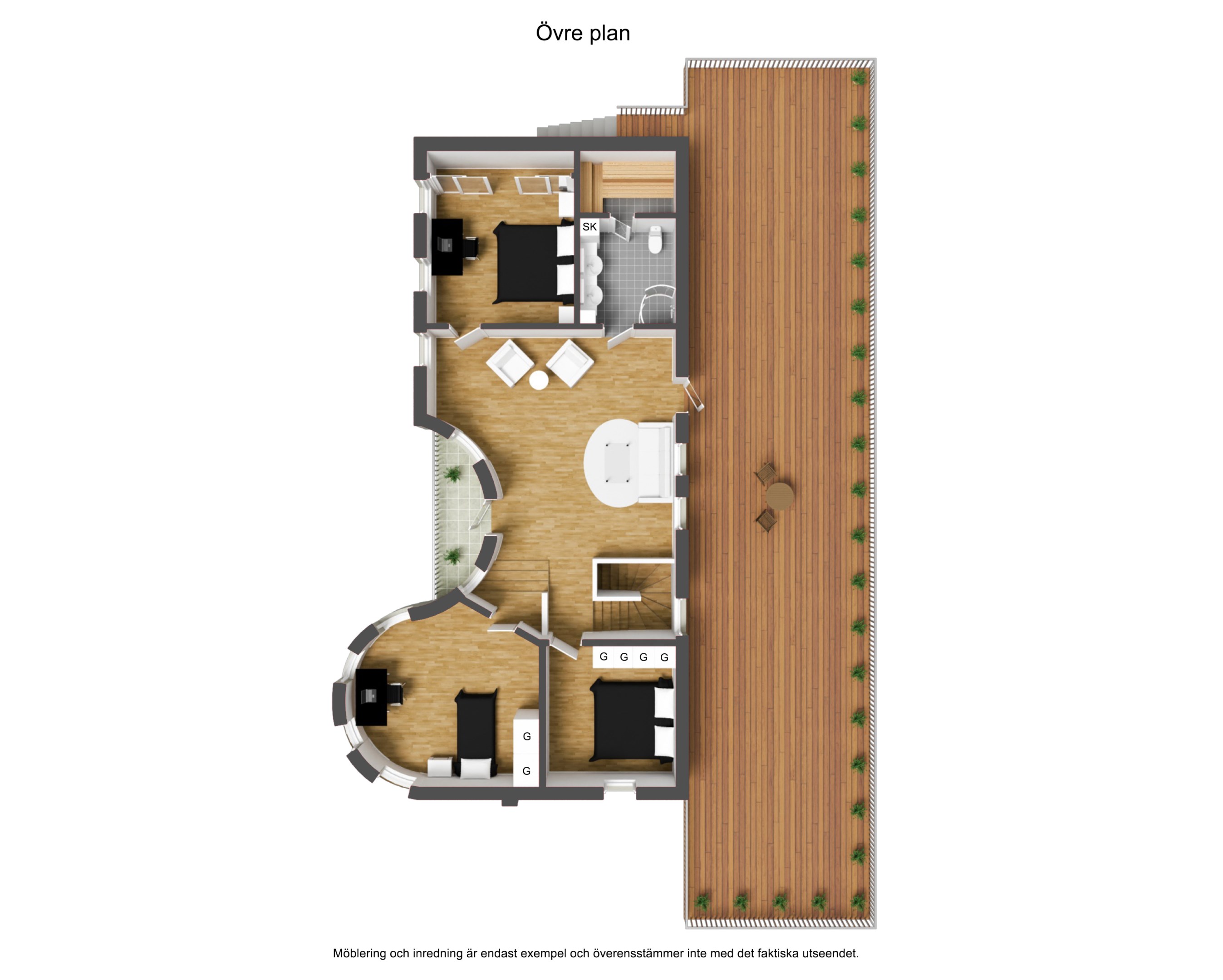 Sovrum 3 övre plan som fullkomligt badar i ljus