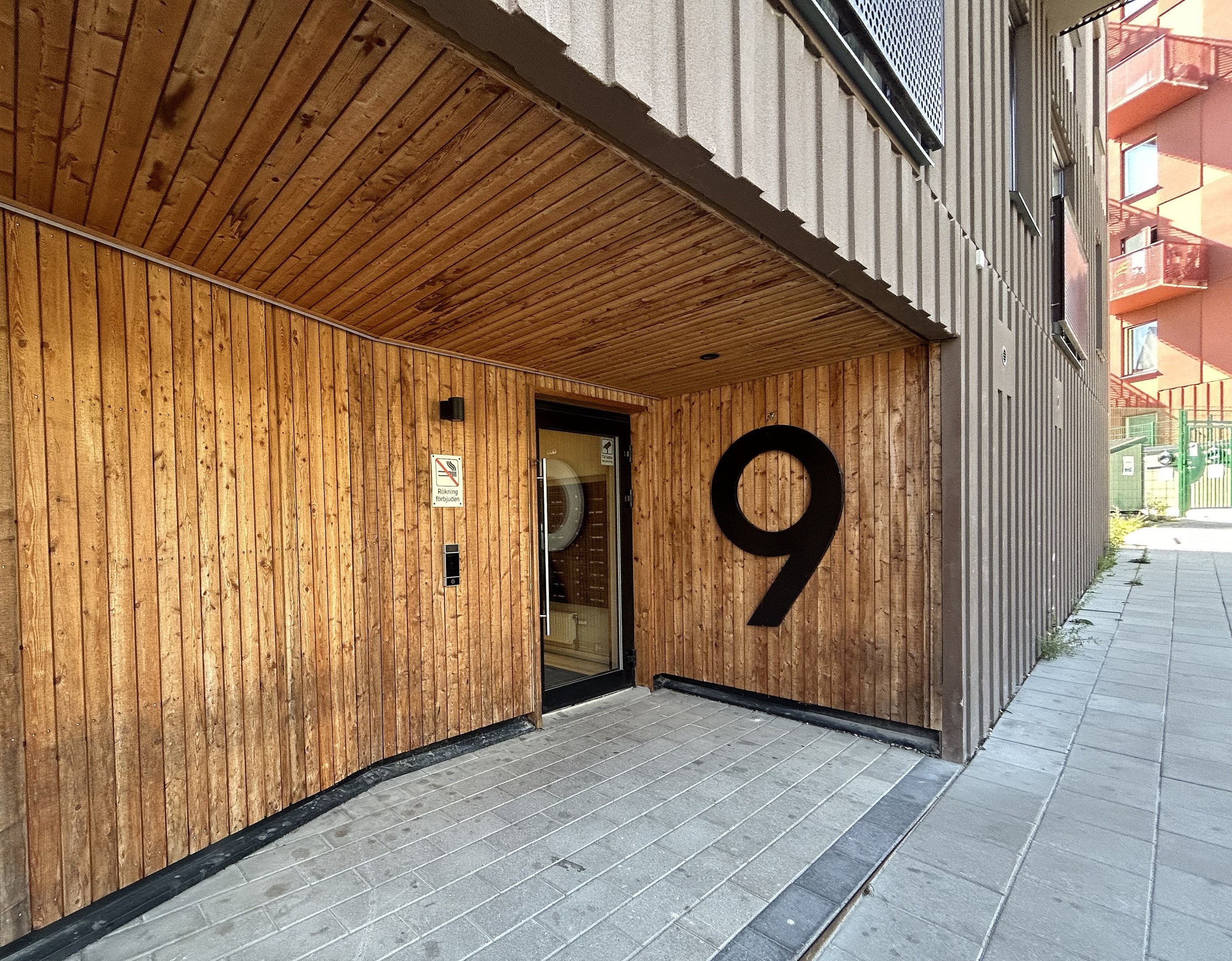 Med ett om områdets trivsammaste läge finns denna ytterst välplanerade etta som stod färdig 2018. Stor balkong med härlig eftermiddagssol och väldigt fin utsikt. Genomgående fint ekparkettgolv, målade väggar och lättmöblerat så man får plats med säng, soffa, mediamöbler samt matbord. Kort promenad till T-bana och fina naturområden. Man är snabbt ute på E4:an och runt hörnet finns ICA Maxi, Biltema och byggvaruhus. Köket är från Marbodal med praktisk förvaring, induktionshäll, spisfläkt, kyl/frys, inbyggnadsugn samt inbyggnadsmikro. Rejäl enkelho och matchande kakel som fungerar som stänkskydd. Infälld belysning i överskåpen ger bra arbetsbelysning. Allrummet rymmer lätt en stor säng, soffa, mediamöbel och då det är en öppen planlösning mot köket finns det även plats för matbord. Via balkongdörren så når man den stora balkongen om ca 7 m² med sol från kl 15. Stilren dusch/WC med helkaklade väggar och klinkergolv som har golvvärme. Duschhörna bakom två svängbara glasdörrar, tvättmaskin som har inbyggd torktumlare, vägghängd WC, badrumsskåp och väggskåp. Spotlights i tak bidrar med bra belysning. Hallen har massor av bra förvaring bakom två stora skjutdörrar och i en separat klädkammare. Sammantaget är detta en ytterst välplanerad etta för dig som söker ett prisvärt boende med ypperliga kommunikationer. Hjärtligt välkommen!