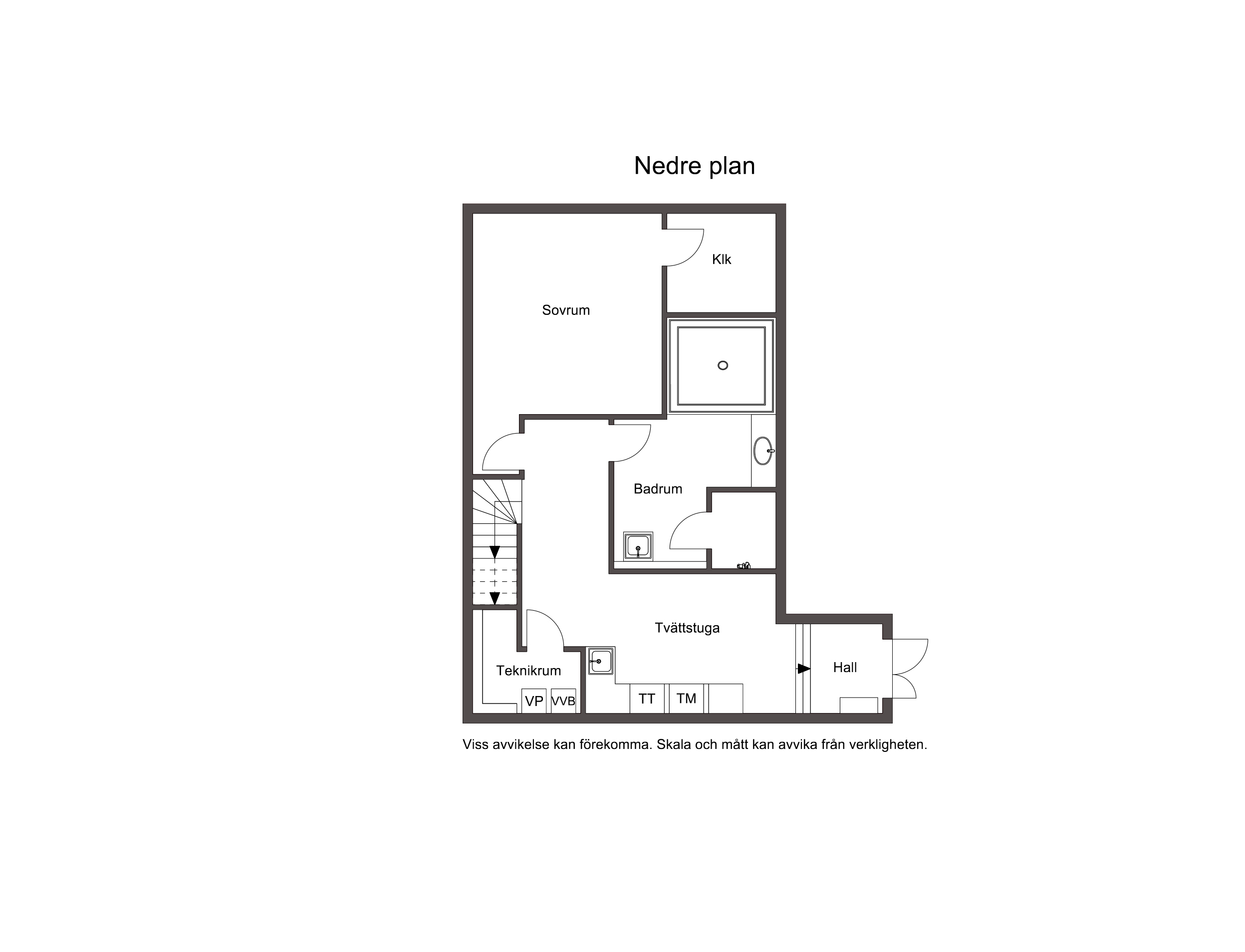 Väl tilltaget utrymme med tvättmaskin samt torktumlare i rätt arbetshöjd. Bänkyta i granit samt en tvättho med engreppsblandare. Fint klinkergolv, med vattenburen golvvärme och delvis kaklade väggar. En extra yta finns med dusch samt brunn. Perfekt att nyttja när man vill spola av hunden eller om barnen har busat runt i lera. Två trappsteg upp till ett bra utrymmer för ytterkläder då grovingången finns här.