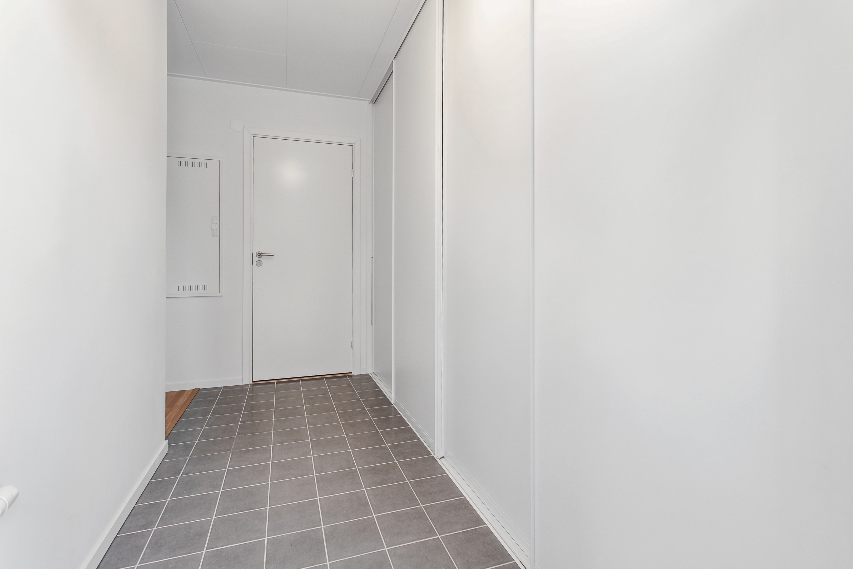 Praktisk hall med massor av bra förvaring för ytterkläder och skor bakom 4 rejäla skjutdörrar. Klinkergolv samt målade väggar.