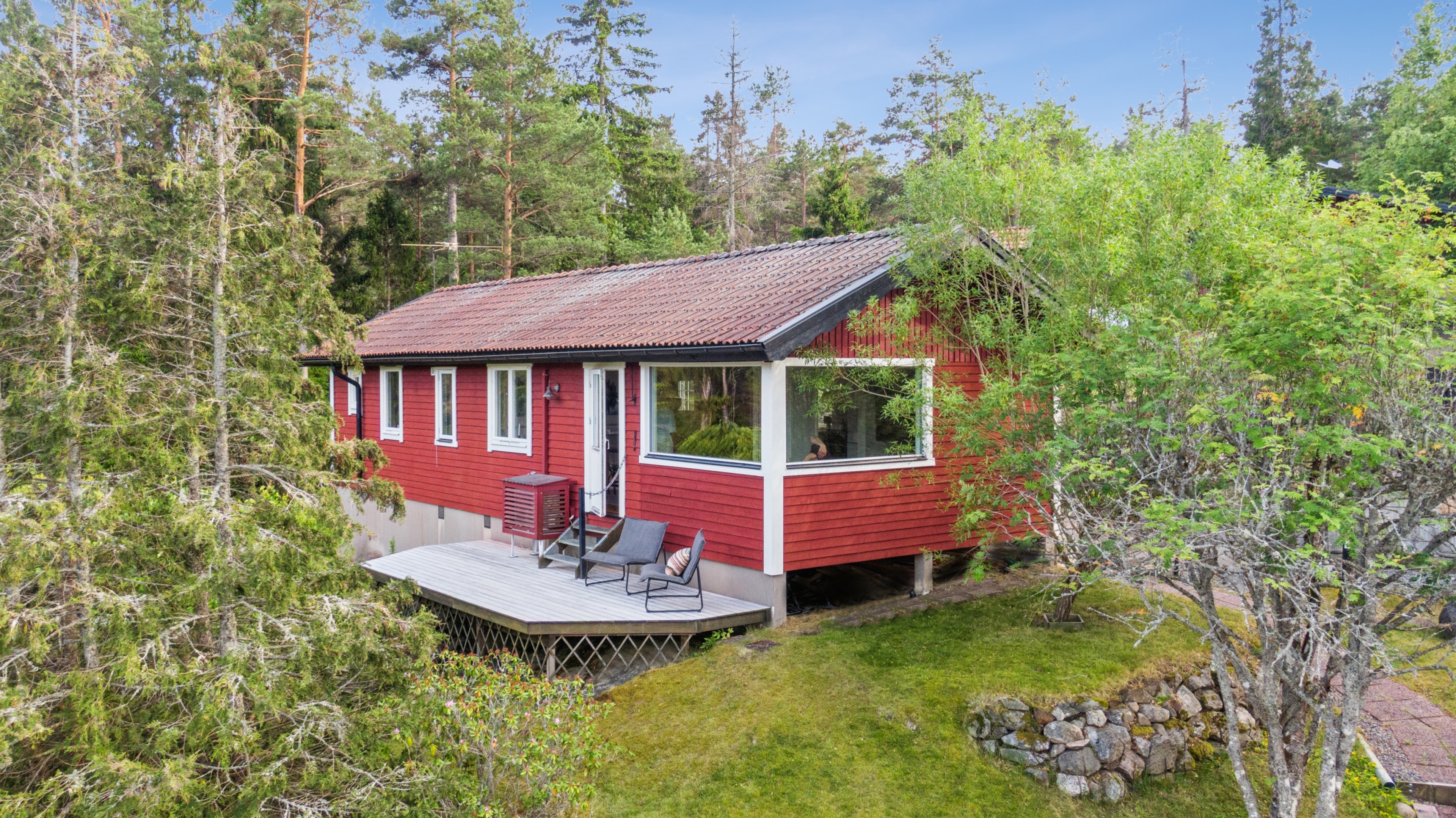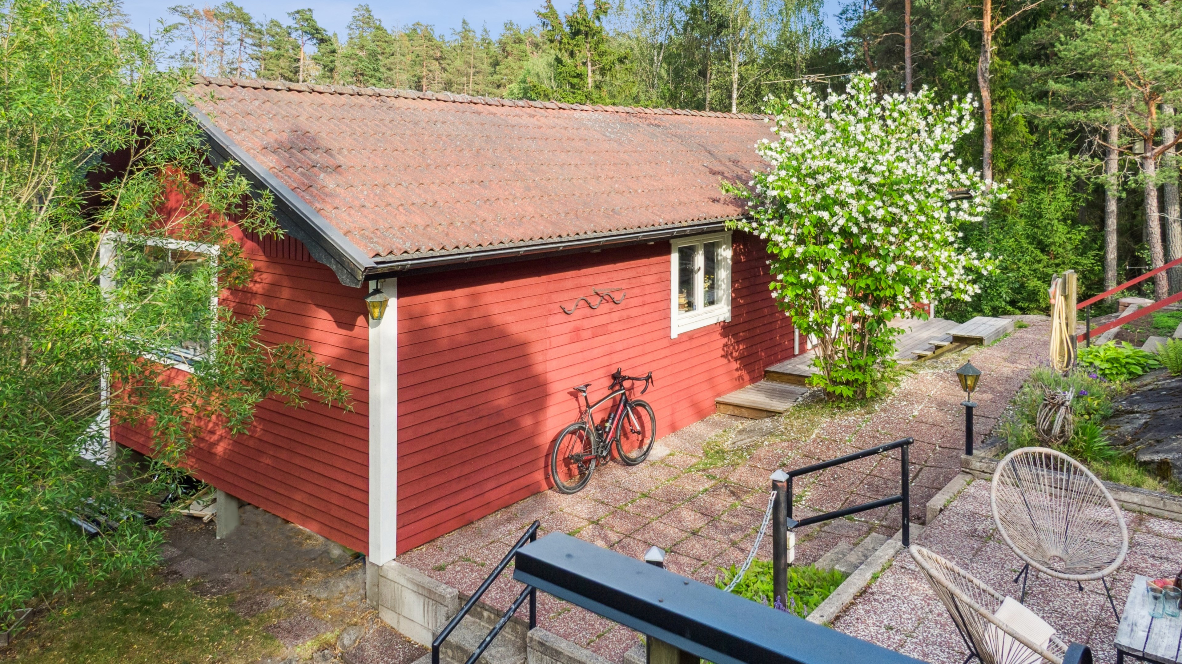 I natursköna Raksta med naturreservat som granne ligger detta fastighet med tre byggnader där huvudbyggnaden genomgick en omfattande renovering 2019. Fiber är indraget. Huvudbyggnadens materialval samspelar fint och bjuder på en social och öppen planlösning mellan kök och vardagsrum med stora fönsterpartier som bidrar med härligt ljusinsläpp. Genomgående enstavig ekparkett, målade väggar samt kaklat badrum med takdusch och tvättmaskin/torktumlare. Köket har en fin platsgjuten arbetsbänk i betong och matplatsen rymmer lätt 6 personer. Vardagsrummet har gott om plats för en rejäl hörnsoffa och de stora fönsterpartierna har utsikt över lummig natur samt utgång till uteplats. Det större sovrummet rymmer lätt en dubbelsäng och det avdra sovrummet har plats för en våningssäng. Övriga byggnader består av ett gästhus om ca 26 m². Här finns enklare pentry/kök och ett stort gästrum samt takförsedd veranda och anslutande uteplats. Friggeboden är ca 15 m² och här finns en vedeldad bastu och en snickarbod/verkstad. På fastigheten finns det massor av stenlagda ytor som passar perfekt för socialt umgänge och grillkvällar. Övriga ytor är en mix av gräsmatta, sten och grus. Allt på ett välbalanserat sätt. Kostnad för kommunal VA-anslutning samt gatubyggnadskostnader på drygt 500 000 kr är betalda. Det som tillkommer är själva grävningen från gatan upp till villan samt inkoppling. I närområdet finns tillgång till flertalet sjöar och Kalvfjärden som gör det extra intressant för båtägaren och den som uppskattar allt vad naturen har att erbjuda. Raksta båtklubb ligger i närheten och där kan man ansöka om båtplats. Hjärtligt välkommen att kontakta ansvarig mäklare för mer info.