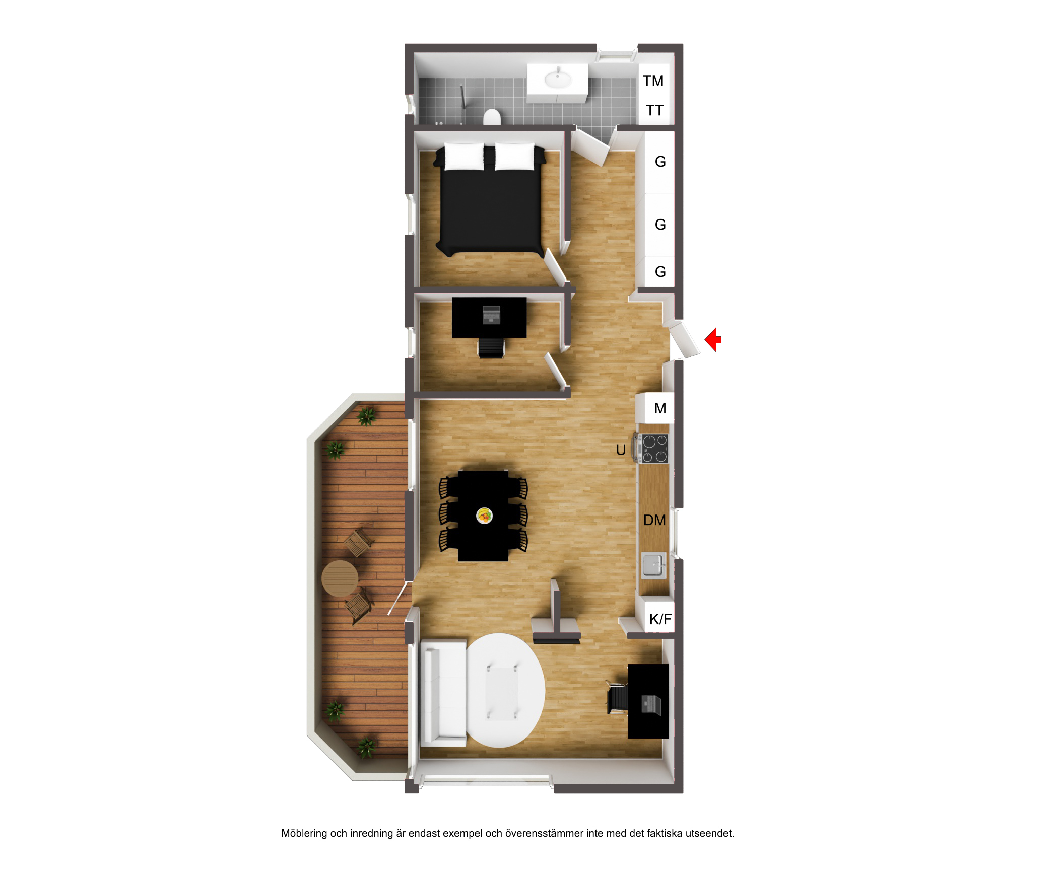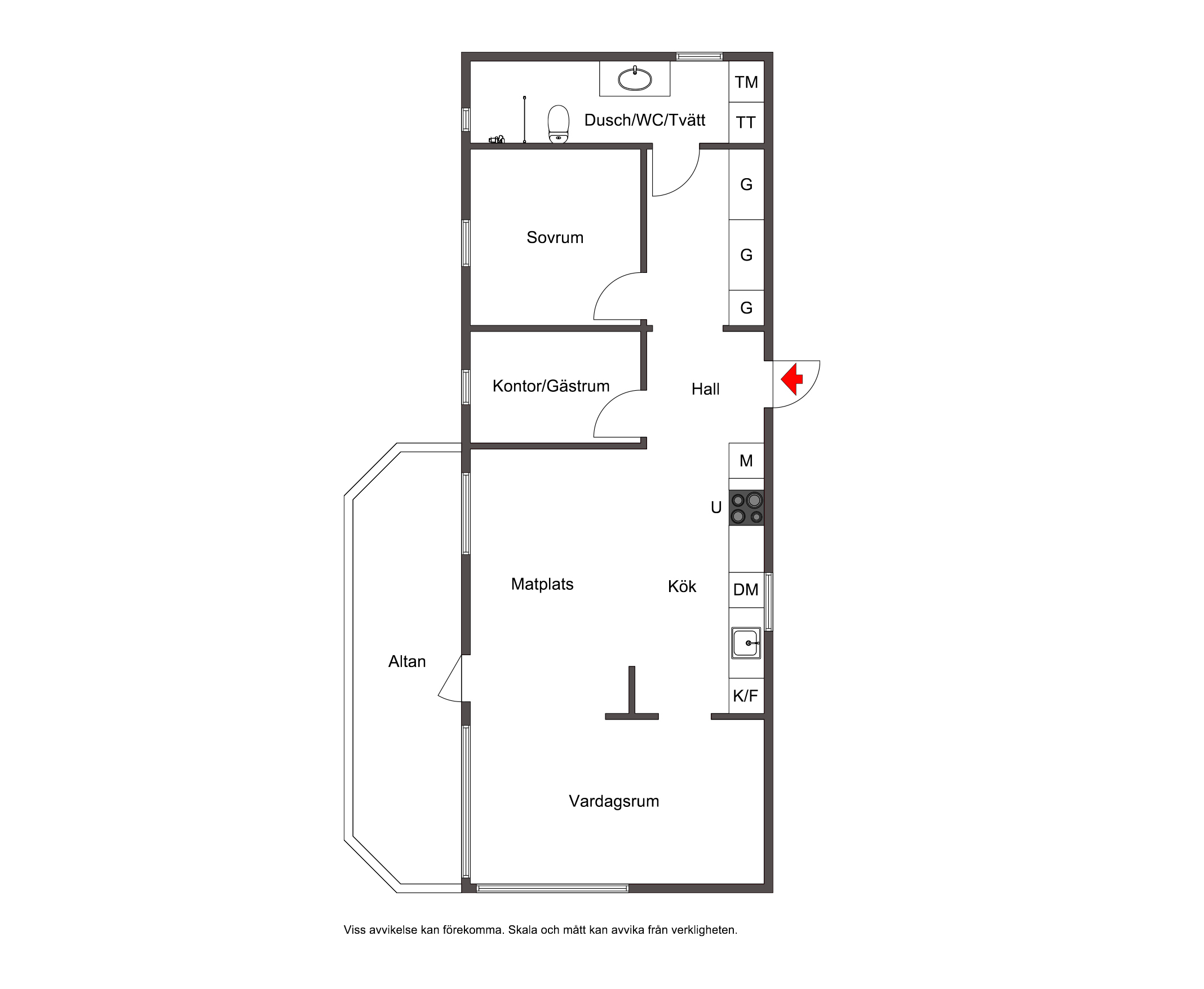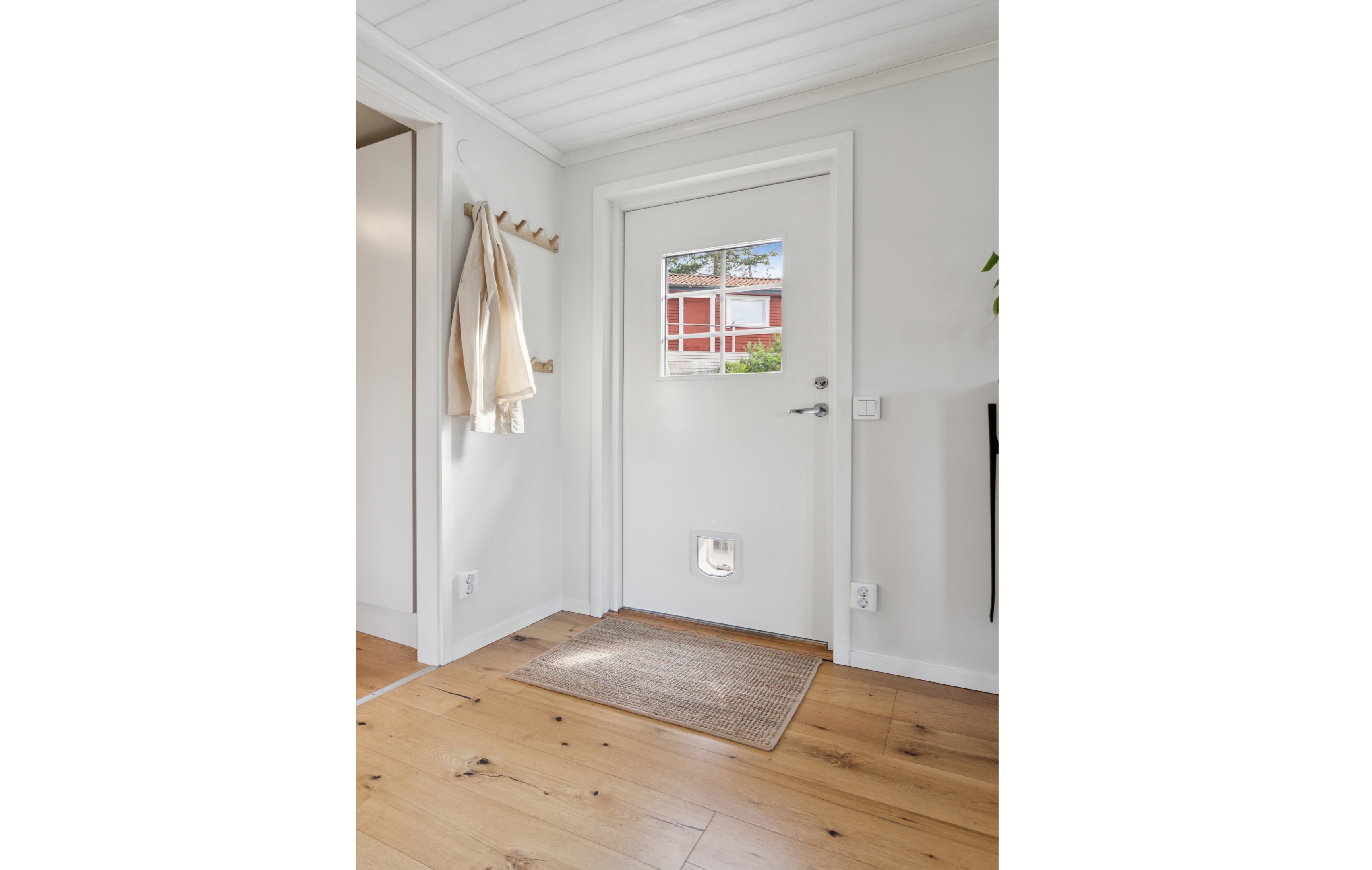 Ljus öppen entré och direkt till höger finns det massor av bra avhängningsytor i flertalet garderober. Målade väggar och Enstavigt ekparkettgolv.