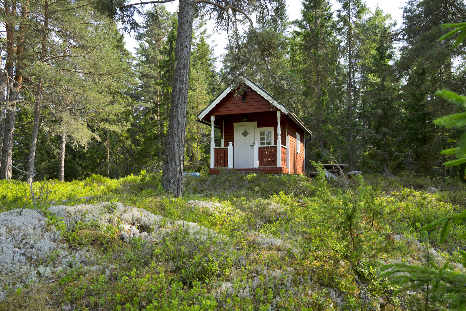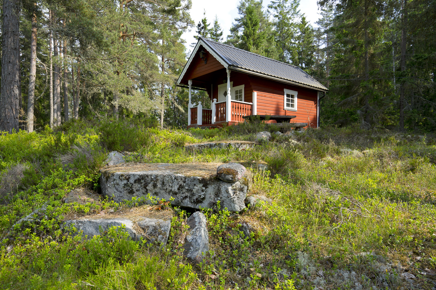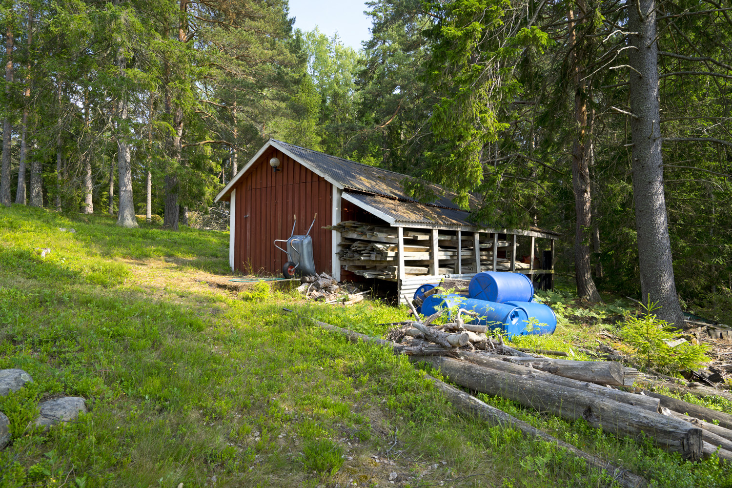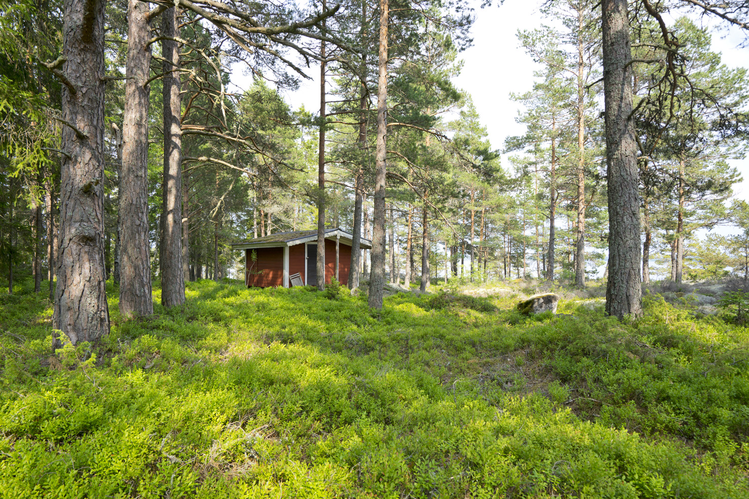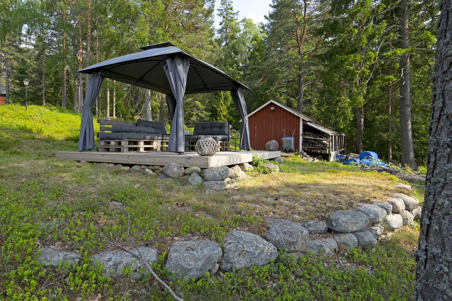 Bakom huset upp mot skogen ligger en gäststuga med våningssäng och bäddsoffa. El indraget. Fortsätter man upp i skogen finner man ytterligare en gäststuga. Förrådsbyggnad nedanför stugan nära vattnet. Uteplats på äldre husgrund.