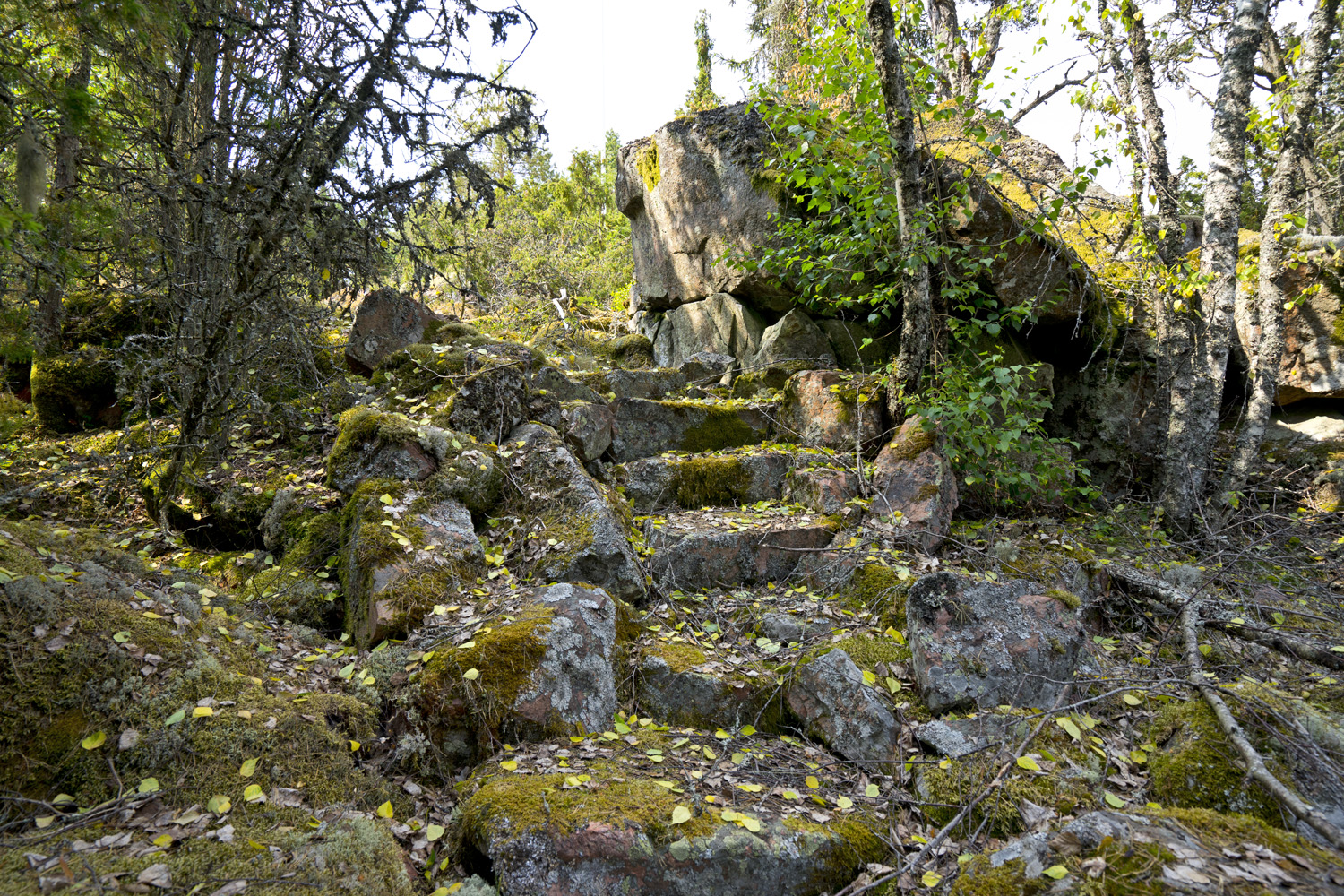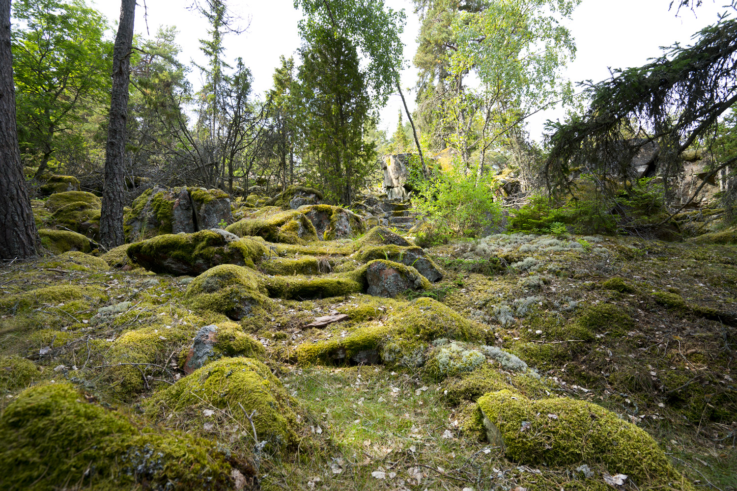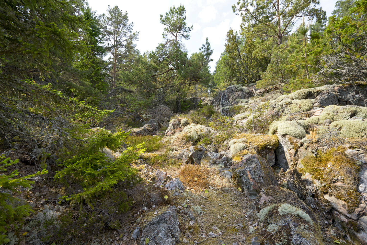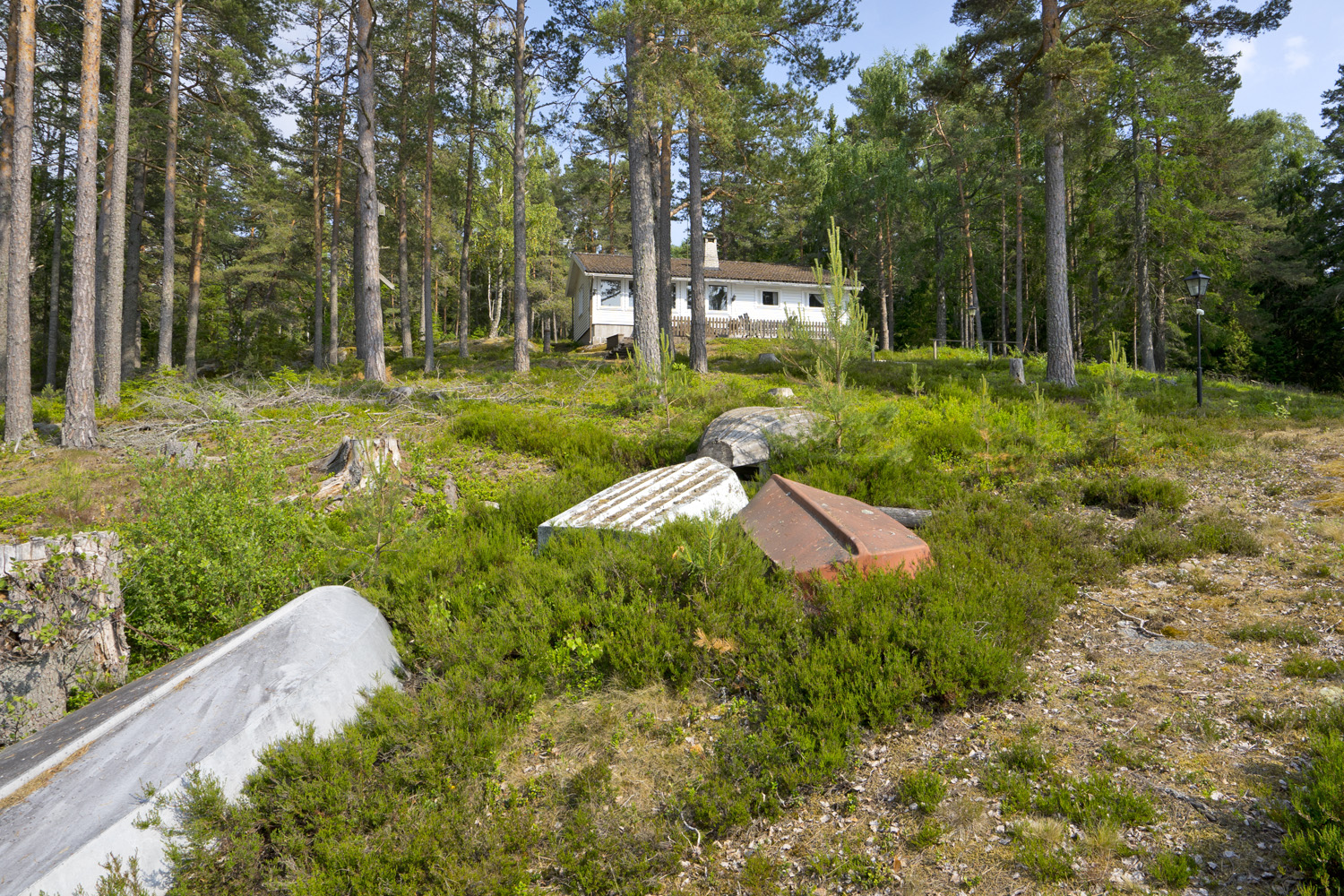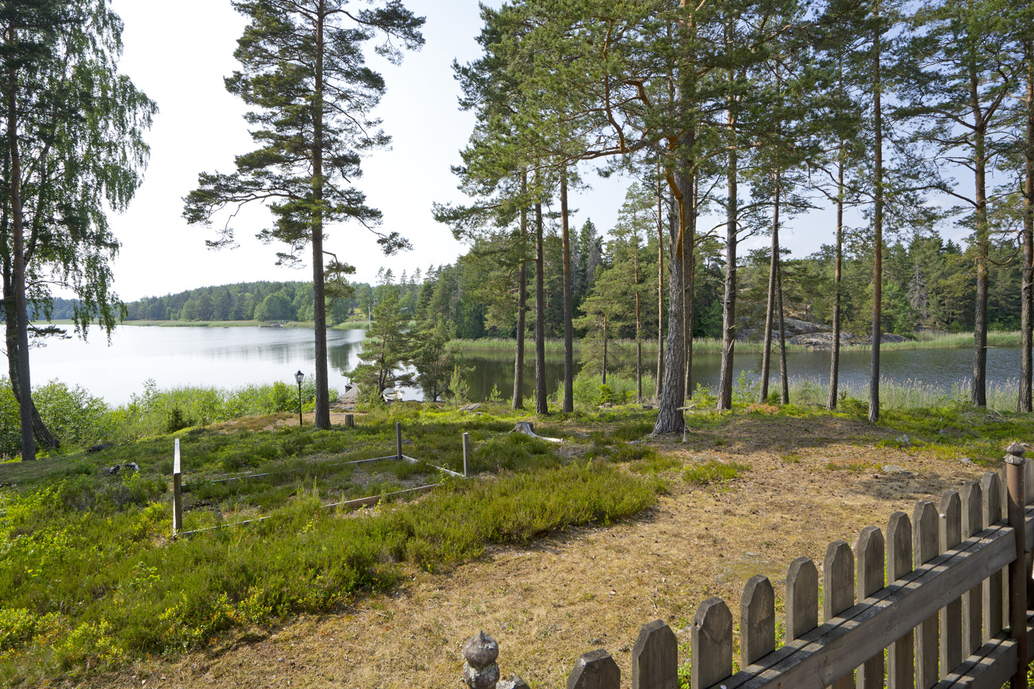 Bakom huset upp mot skogen ligger en gäststuga med våningssäng och bäddsoffa. El indraget. Fortsätter man upp i skogen finner man ytterligare en gäststuga. Förrådsbyggnad nedanför stugan nära vattnet. Uteplats på äldre husgrund.