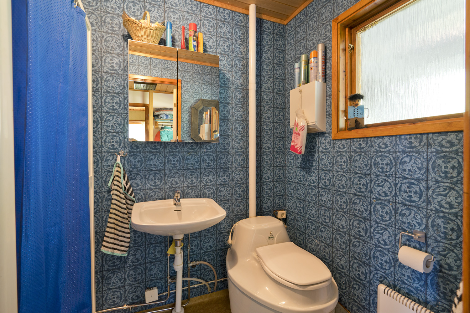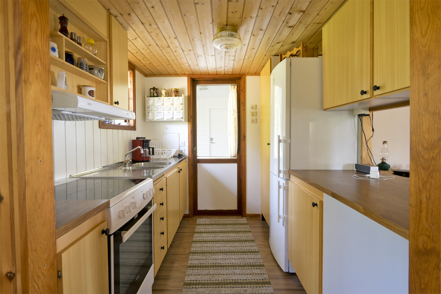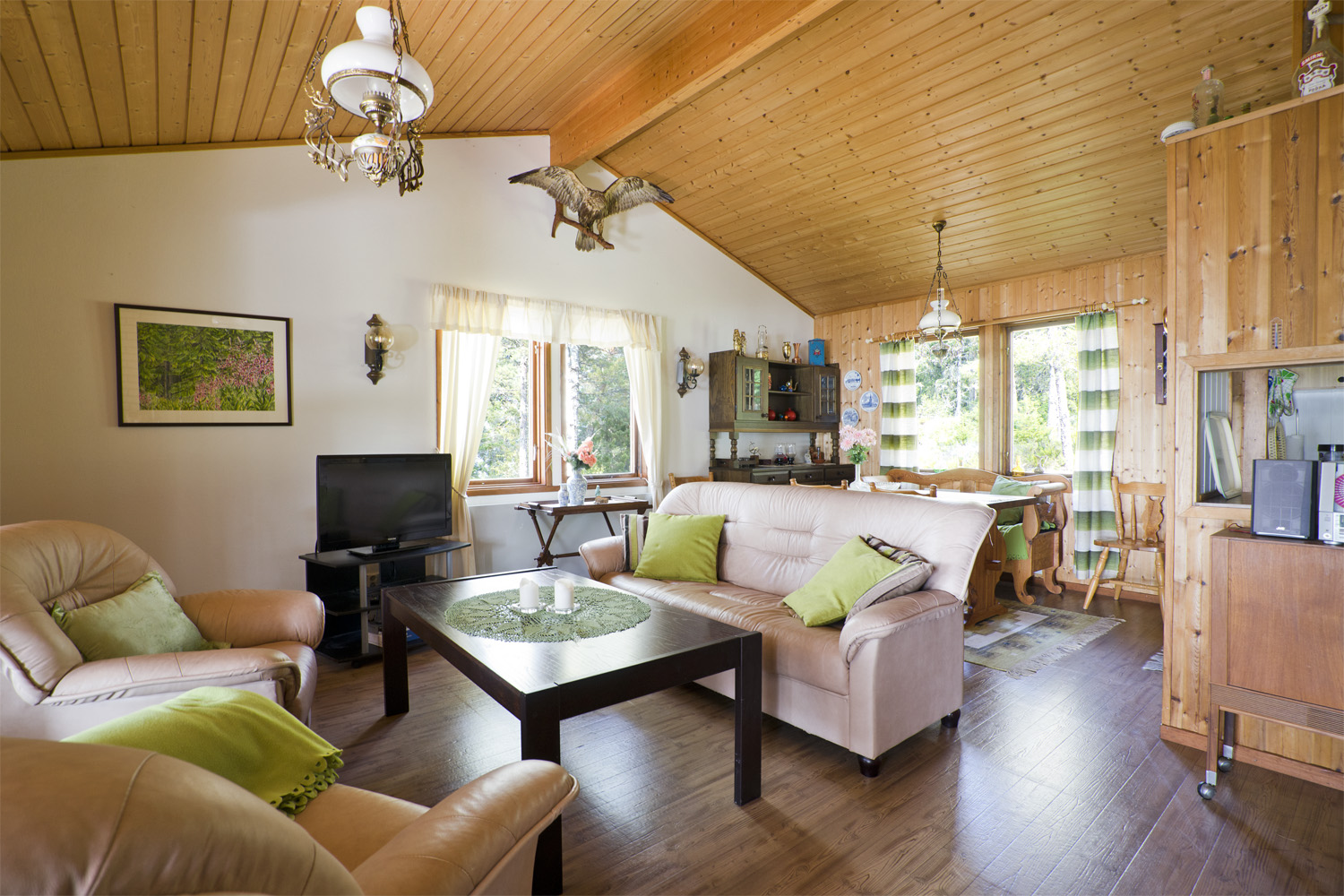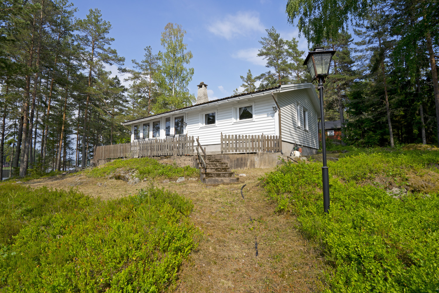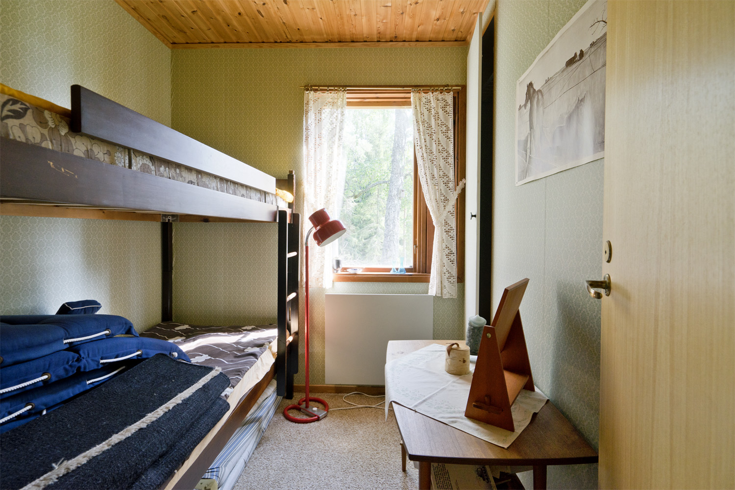 Inglasad veranda med eldstad och utgång till uteplats samt trädgård. Allrum med eldstad och fönster i tre väderstreck, öppet till nock. Gott om plats för både sitt- samt matgrupp. Arbetskök med direktutgång till bakre entrén. Nya vitvaror och spis sedan fem år. Badrum med mulltoa, handfat, duschkabin samt varmvattenberedare. Tre fristående sovrum.