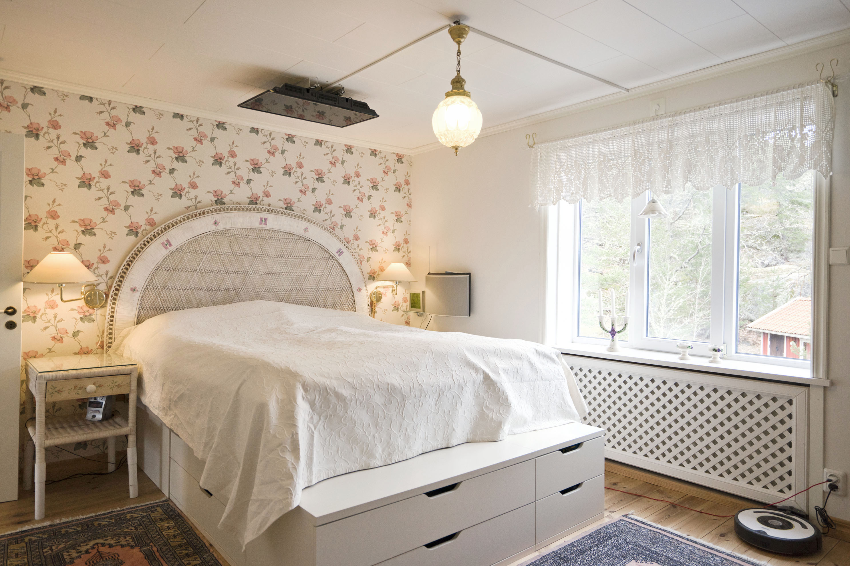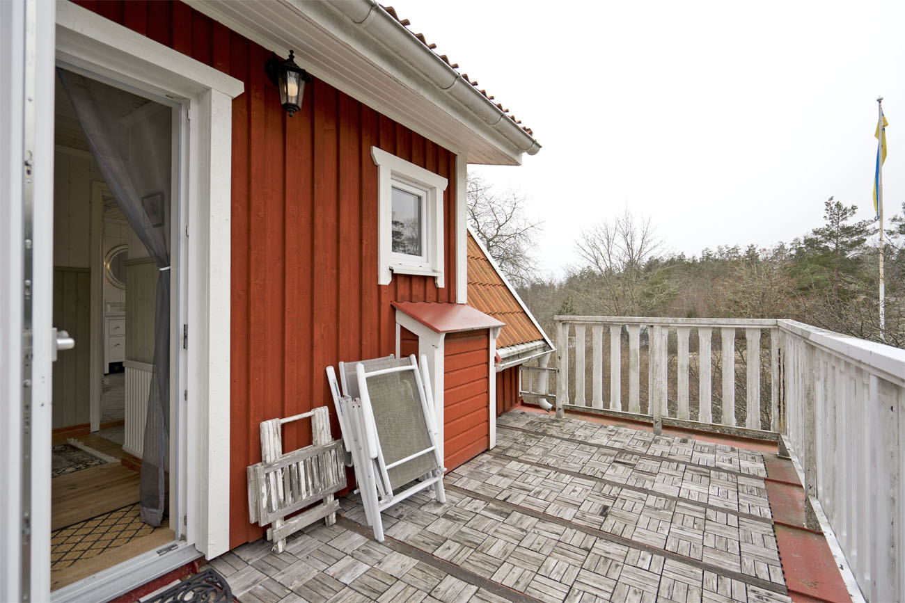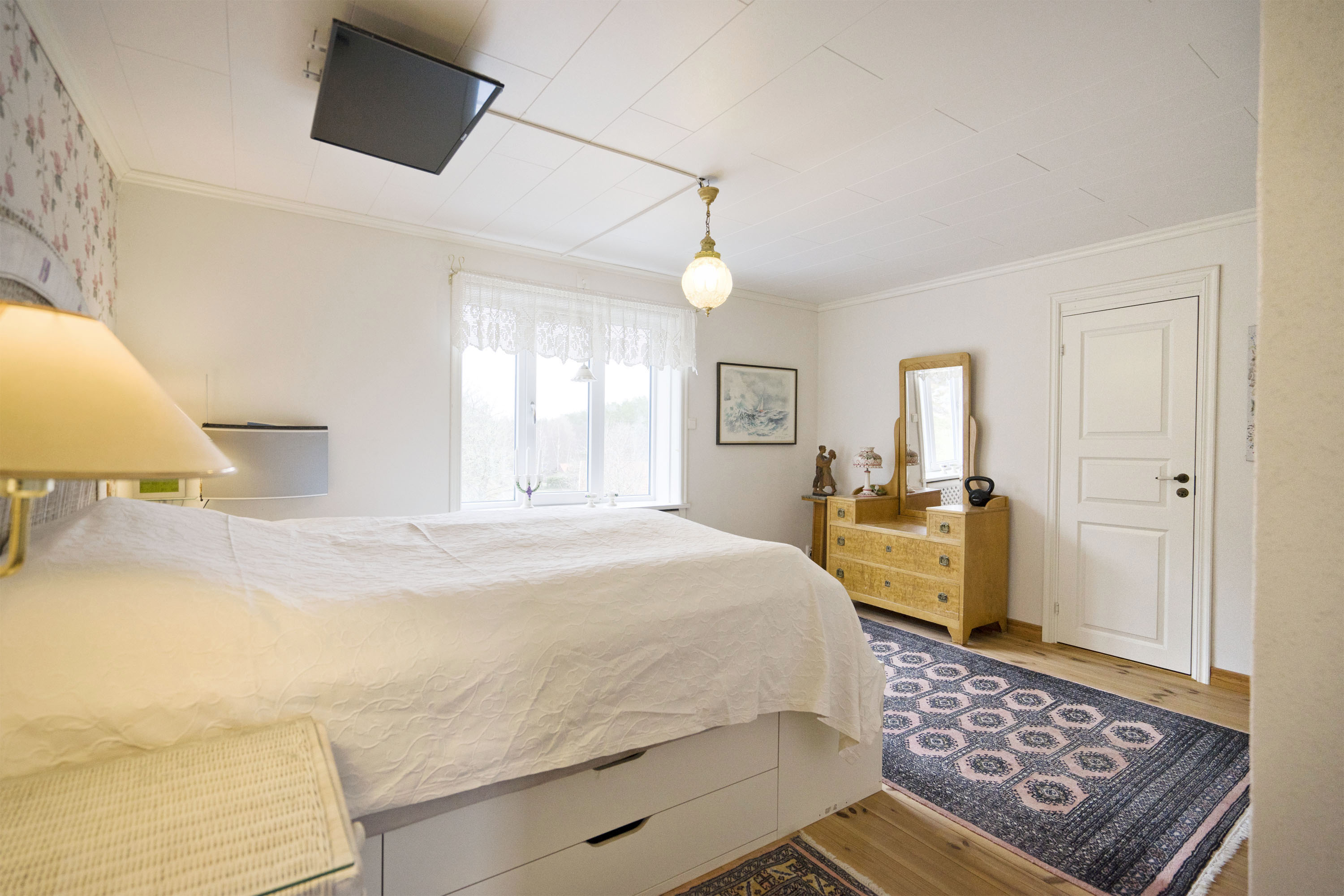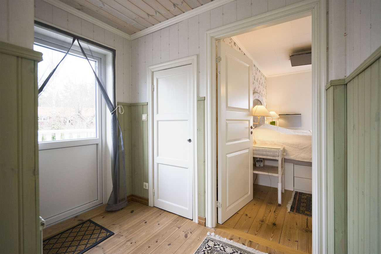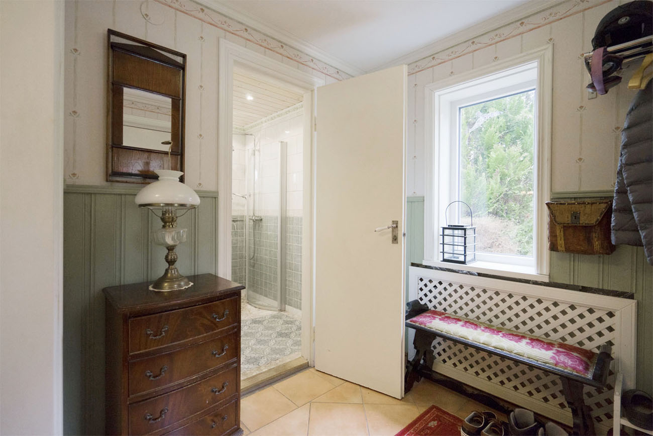 BOSTADHUSET ENTREPLANET: Rymlig entrehall med trappa upp mot övre planet. Kök från 2011 med elspis, fläkt, kyl/frys och diskmaskin samt micro. Fungerande vedspis. Kährs ekparkett 2017, Murad öppen spis med insats som är öppen på 2 sidor så man ser elden både från köket samt vardagsrummet. Stort vardagsrum med angränsande matsal, Kährs ekparkett 2017, utgång till altan under tak. Vitlaserat paneltak. 2 sovrum - samtliga sovrum renoverade, laminatgolv. 1 arbetsrum/sovrum med utsikt över havs-viken, plastmatta. Badrum, kaklat, med wc och tvättställ samt dusch. ÖVRE PLANET: Hall med ekgolv som leder mot; 1 större sovrum med ekgolv. 3 kattvindar samt walk-in-closet. Toalett samt duschrum, kaklade - 2013. Trapphall. Utgång till altan. Källare: Pannrum och pelletslager. Tvättstuga med tvättmaskin, klinkersgolv samt helkaklat (-12). Förråd. 1 större lekrum/allrum. - - - - - - Huvudbyggnad ombyggt 1974 samt renoverat 2007. Tilläggs-isolerat 2012. Av nuvarande ägare tillbyggt 2014. Ny fasad 2014. Nya 2-glas isolerglasfönster 2011 respektive 2018.
