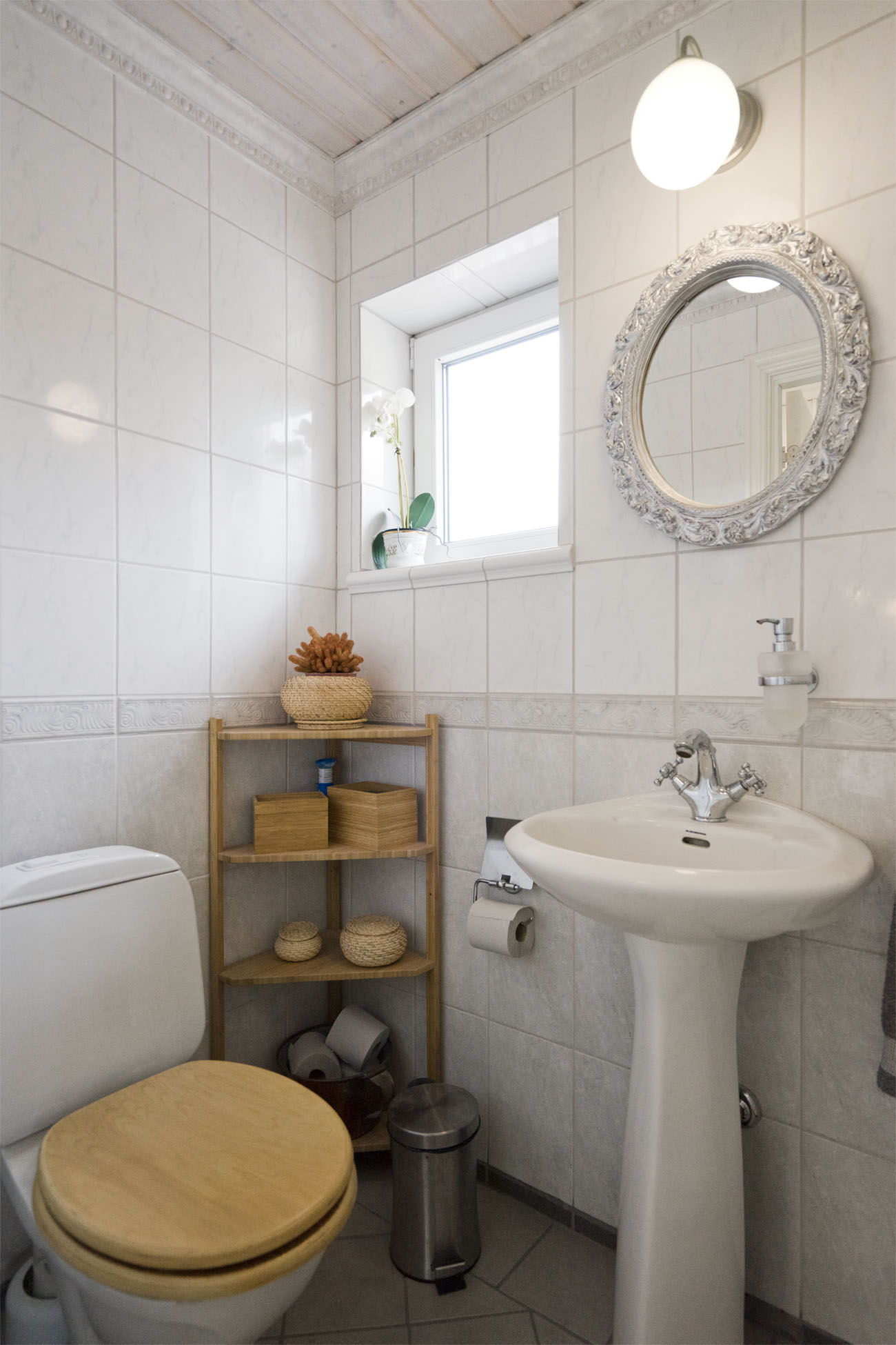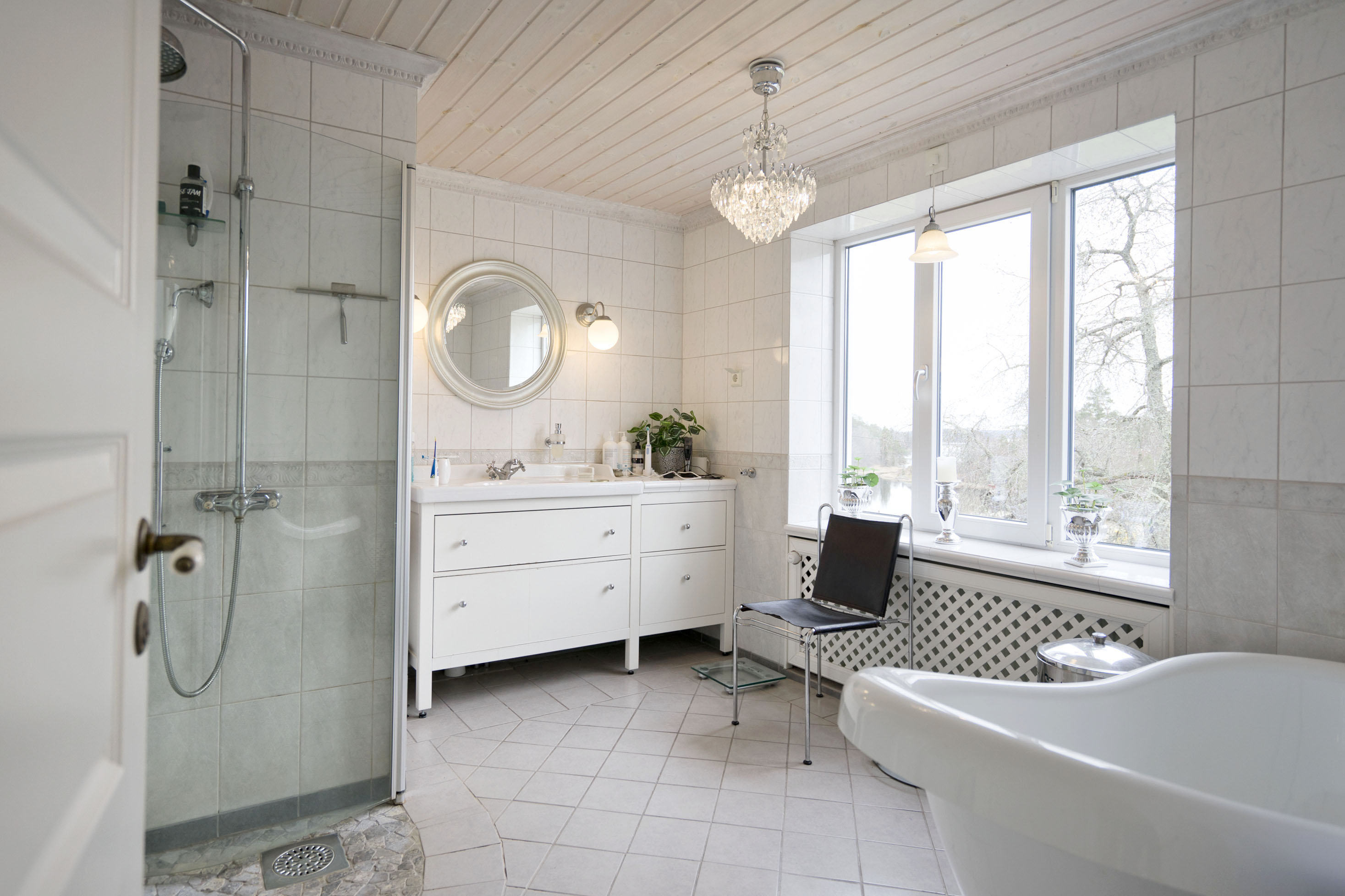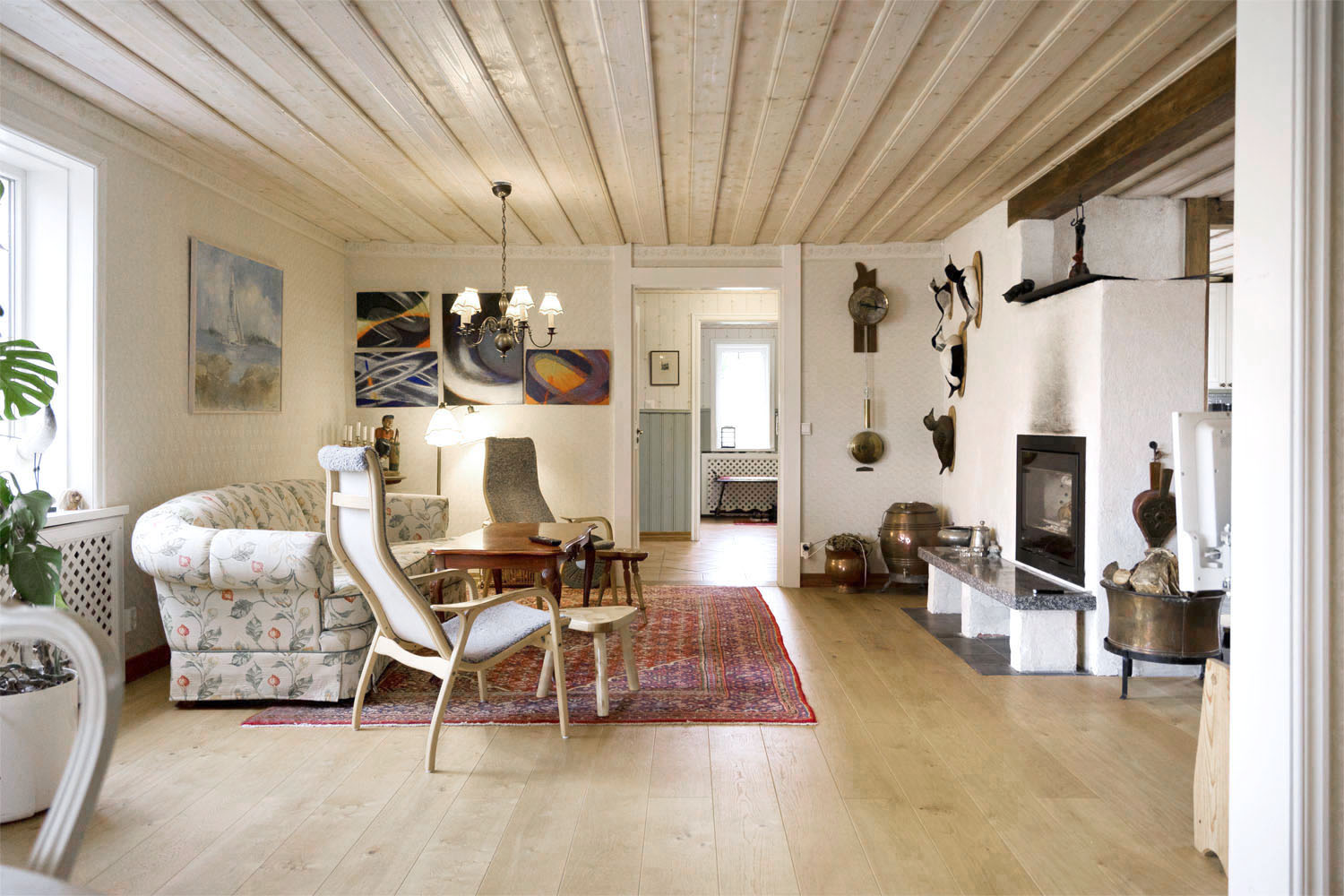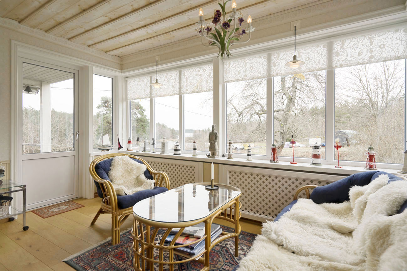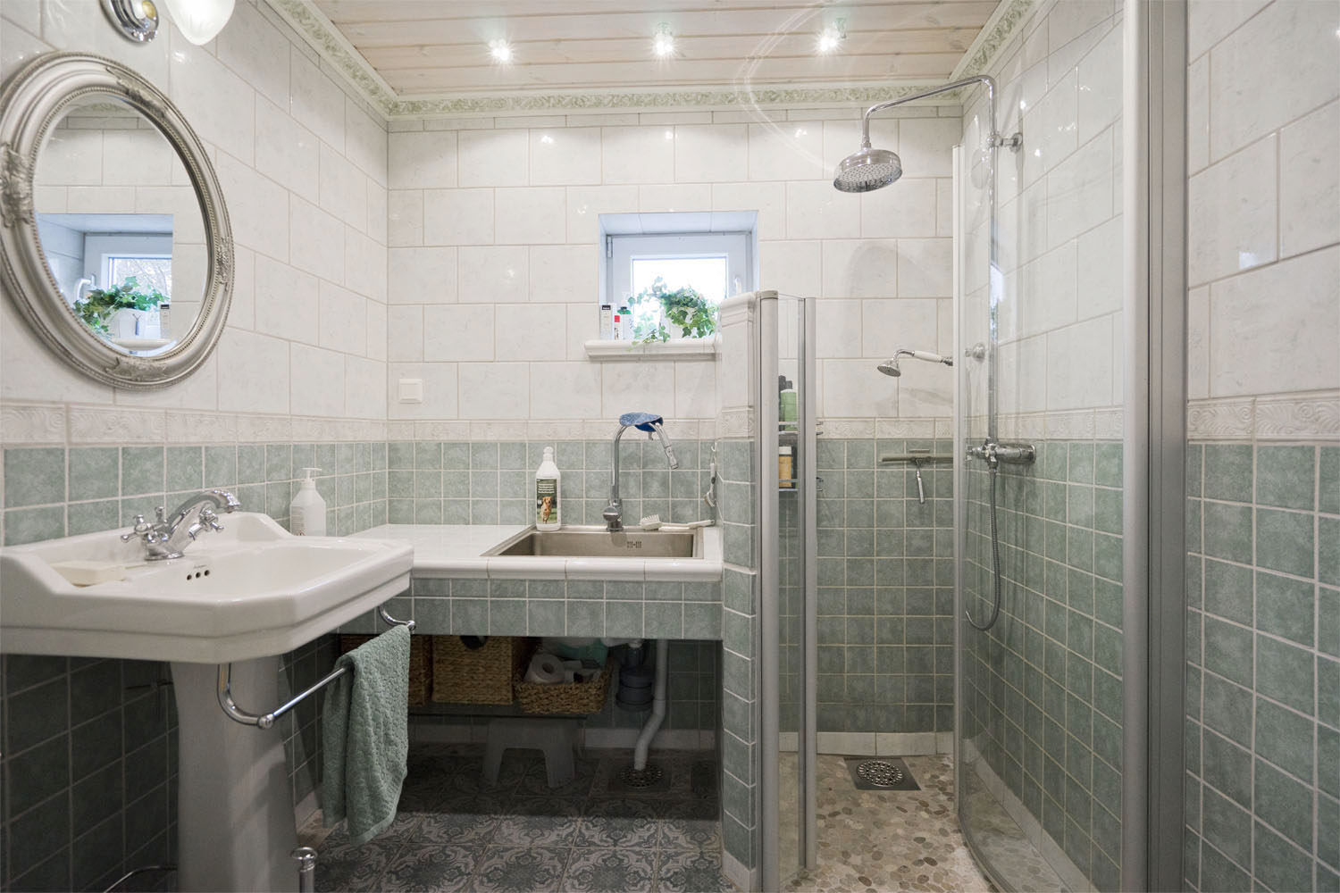 BOSTADHUSET ENTREPLANET: Rymlig entrehall med trappa upp mot övre planet. Kök från 2011 med elspis, fläkt, kyl/frys och diskmaskin samt micro. Fungerande vedspis. Kährs ekparkett 2017, Murad öppen spis med insats som är öppen på 2 sidor så man ser elden både från köket samt vardagsrummet. Stort vardagsrum med angränsande matsal, Kährs ekparkett 2017, utgång till altan under tak. Vitlaserat paneltak. 2 sovrum - samtliga sovrum renoverade, laminatgolv. 1 arbetsrum/sovrum med utsikt över havs-viken, plastmatta. Badrum, kaklat, med wc och tvättställ samt dusch. ÖVRE PLANET: Hall med ekgolv som leder mot; 1 större sovrum med ekgolv. 3 kattvindar samt walk-in-closet. Toalett samt duschrum, kaklade - 2013. Trapphall. Utgång till altan. Källare: Pannrum och pelletslager. Tvättstuga med tvättmaskin, klinkersgolv samt helkaklat (-12). Förråd. 1 större lekrum/allrum. - - - - - - Huvudbyggnad ombyggt 1974 samt renoverat 2007. Tilläggs-isolerat 2012. Av nuvarande ägare tillbyggt 2014. Ny fasad 2014. Nya 2-glas isolerglasfönster 2011 respektive 2018.