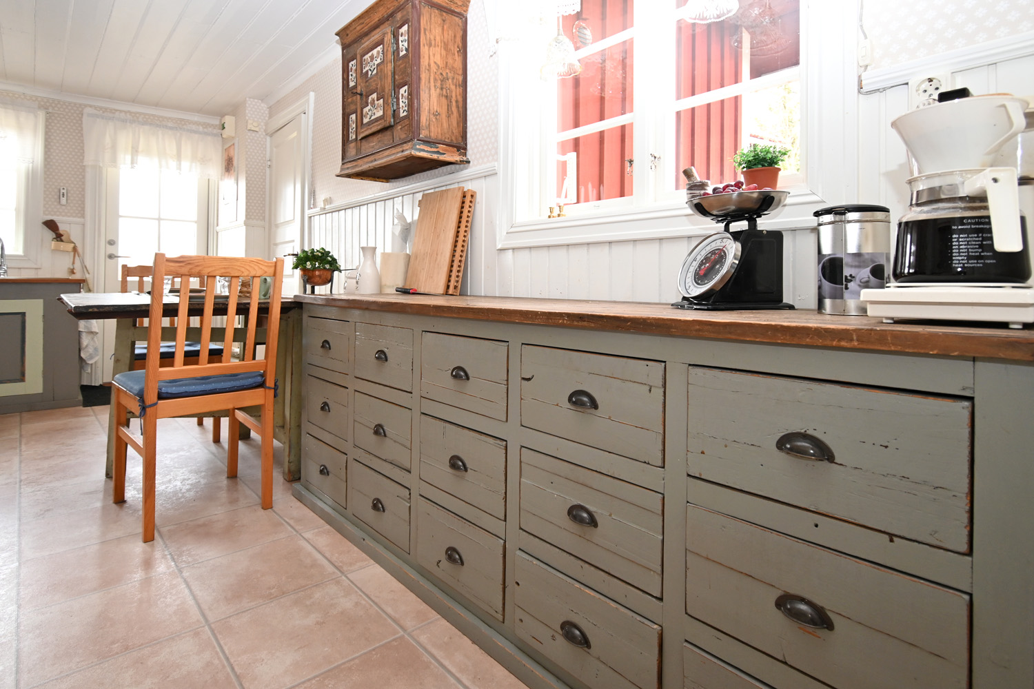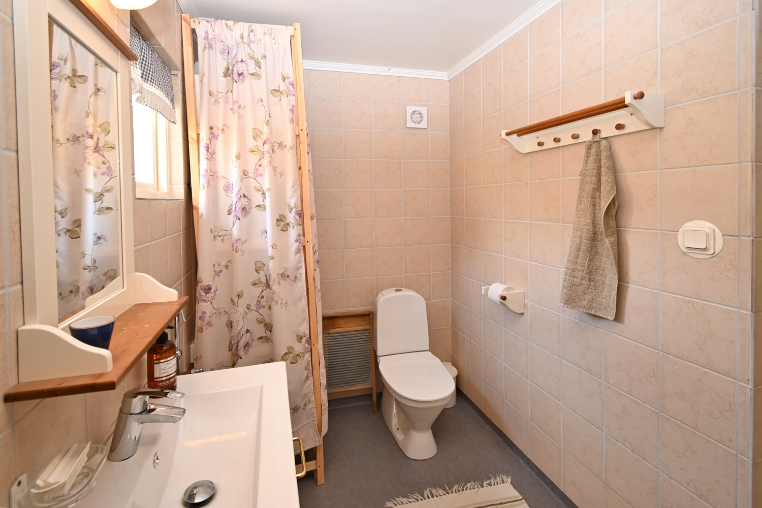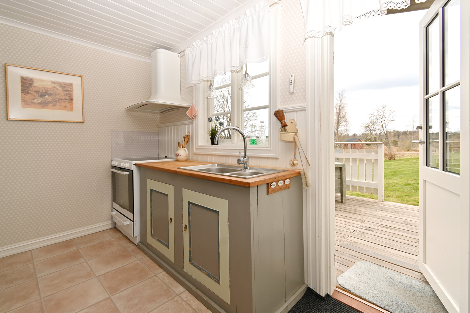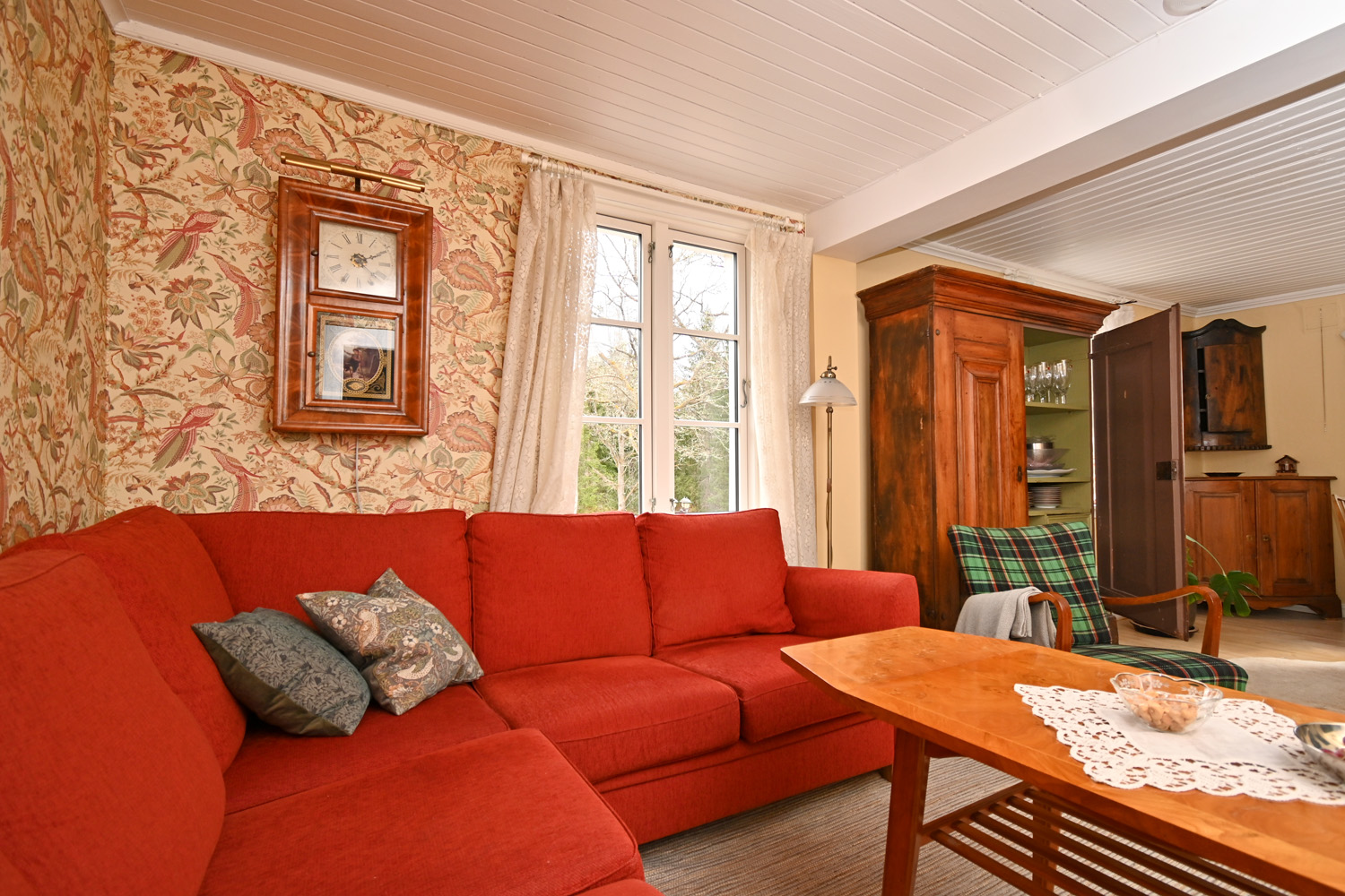 HUVUDBYGGNAD (4 rum varav 2 sovrum, boarea 110 kvm, biarea 7 kvm ): Plan 1: Ljust trevligt lantligt kök, här finns en äldre genuin vedspis med bakugn. Spis, fläkt, kyl/frys. På väggar är det bröstpanel + målat samt klinkersliknande plattor på golv. Via köket når du allrum och hall, samtliga med vackra trägolv och vedkaminer. Badrum med wc , tvättställ, tvättmaskin, diskmaskin, handduksvärmare, varmvattenberedera och pump. Plan 2: Allrum med sovalkover, golvet är ett ljust målat plankgolv och väggarna är tapetserade. Sovrum med ett härligt mörkt plankgolv, bröstpanel & tapet på väggar och fönster mot trädgården. Sovrum med ljust målat plankgolv och tapetserade väggar, platsbyggd förvaring och fönster mot trädgården. -Stor altan med elstyrd markis. -Fjärrstyrd på-avstängning av värmeelementen i huvudbyggnaden via Telia. - Inventarier inkl. traktor, båt samt fyrhjuling ingår i priset.