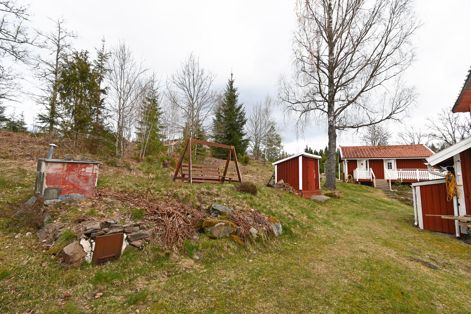 Kuperad välskött natur- och trädgårdstomt med gräsmatta och egen infart. Inslag av berg ovan bostad. Odlingsbar ängsmark. Här finns idag två sorters vindruvor, ett päronträd, äppelträd, plommonträd, vilda jordgubbar samt olika örter som oregano, timjan, lavendel, gräslök, kål och salvia.