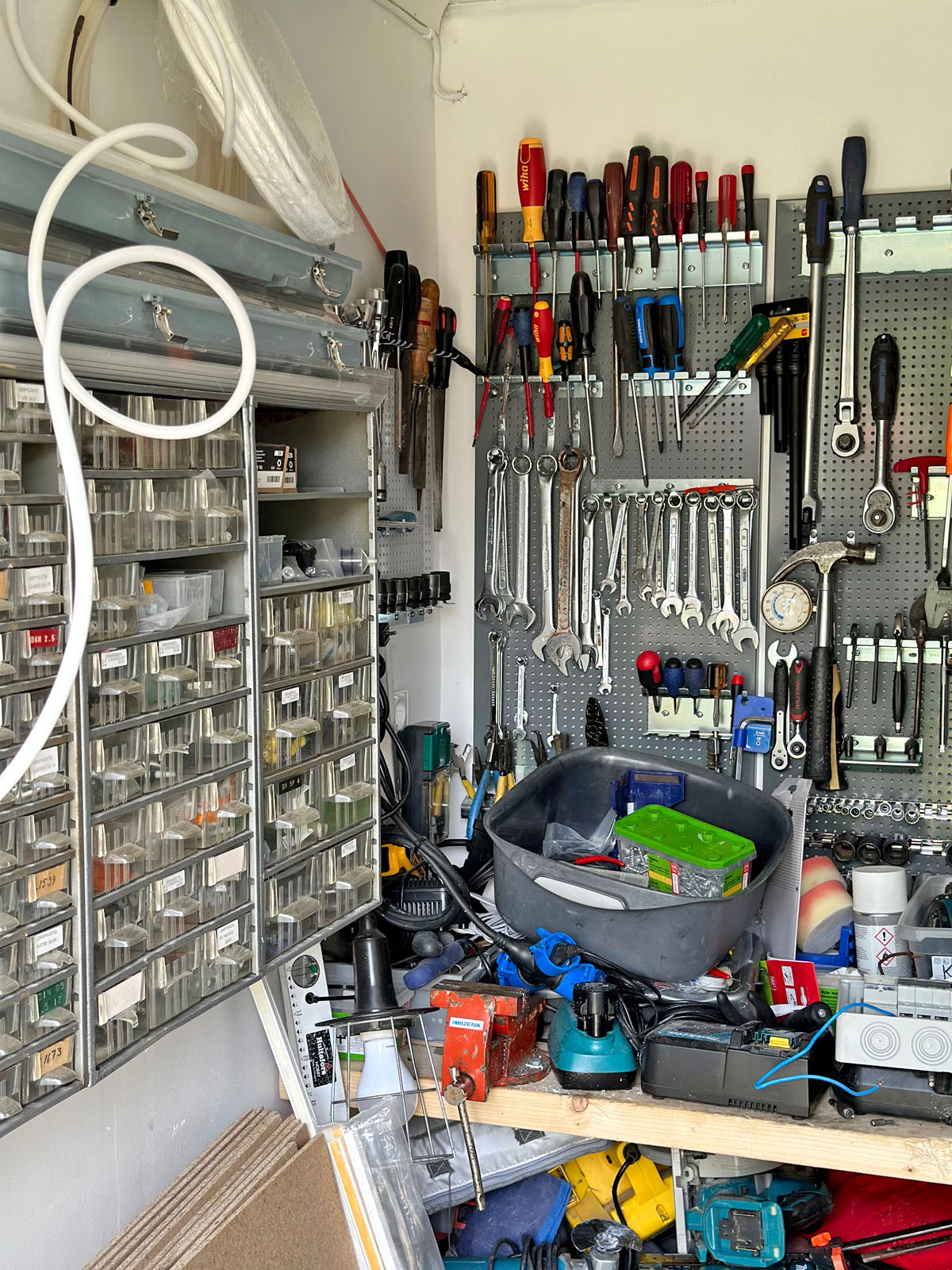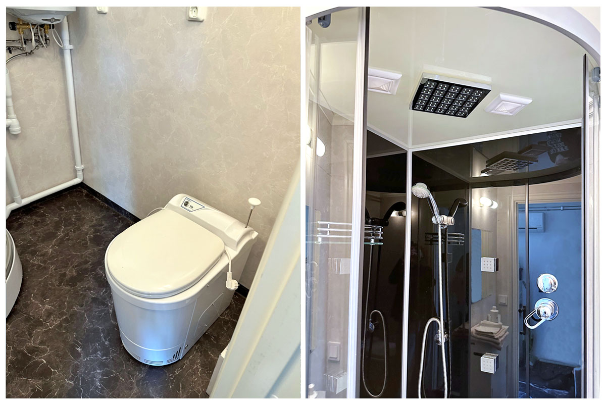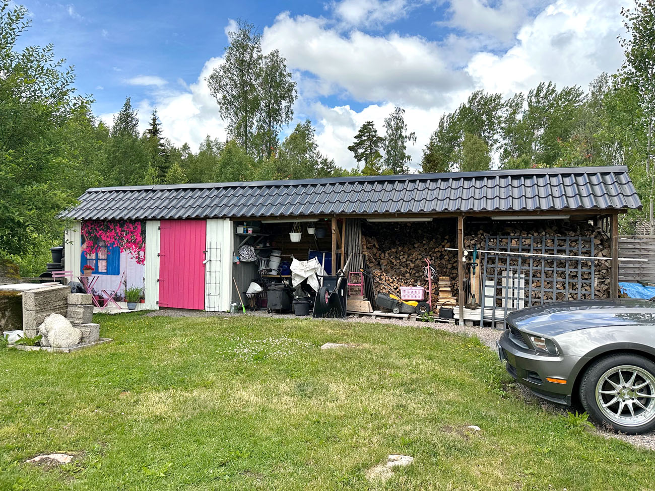 GÄSTSTUGA 25kvm med allrum/pentry/hall, kyl/frys/micro, sovrum samt toalettutrymme med förbränningstoalett, dusch och varmvattenberedare. Förberett för tvättmaskin. Separat VERKSTAD 2,5 kvm. Uttag 3-fas/16A. KALLFÖRRÅD ca 7kvm samt VEDFÖRRÅD ca 15kvm med 10-15 m3 kluven, torkad ved.