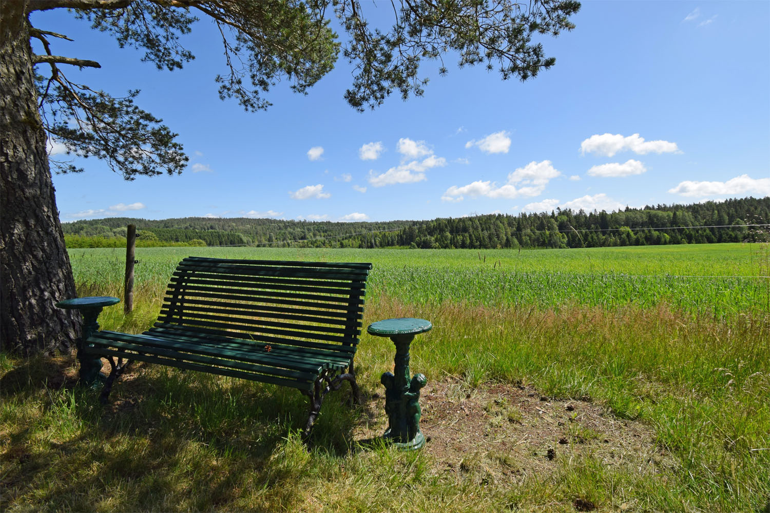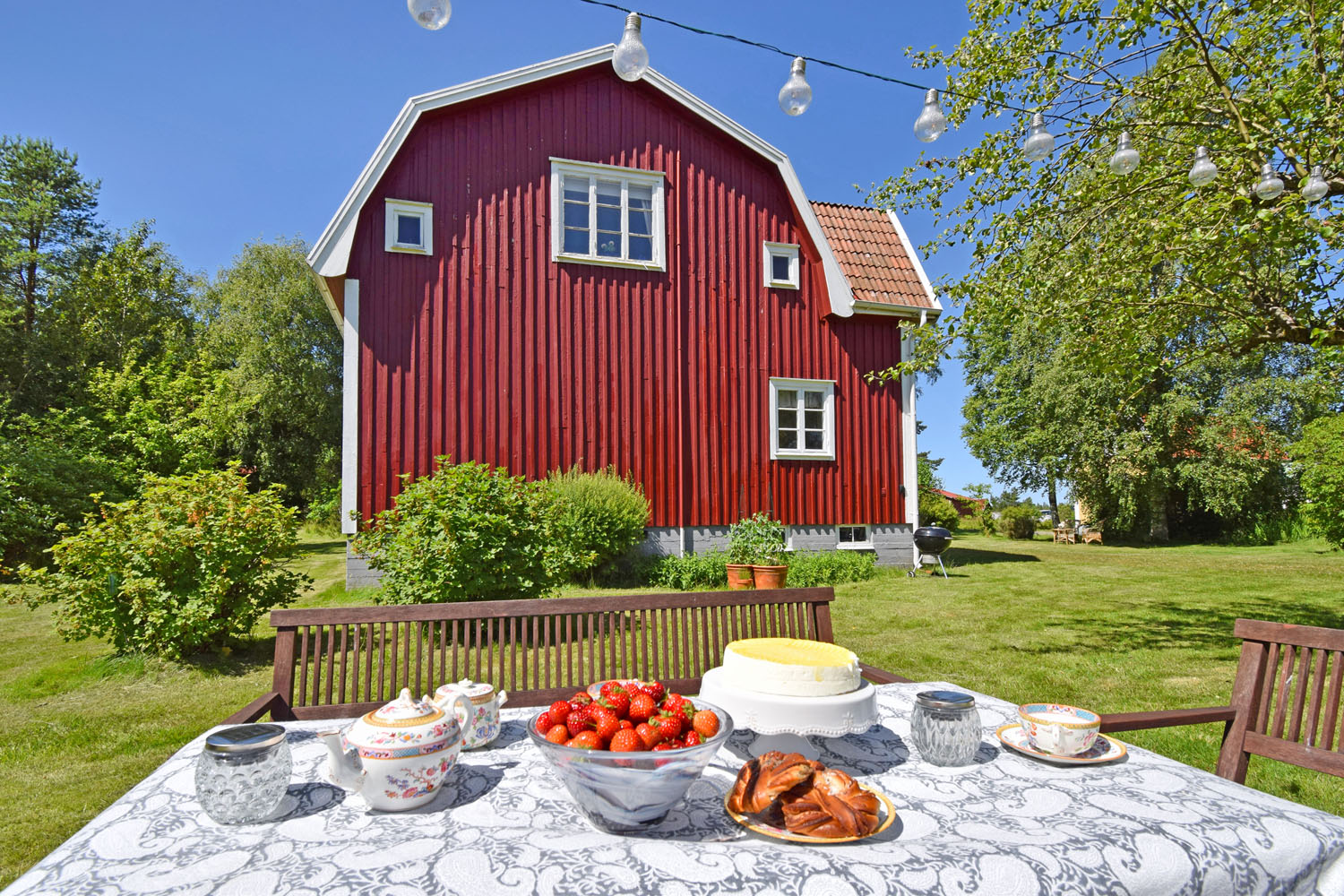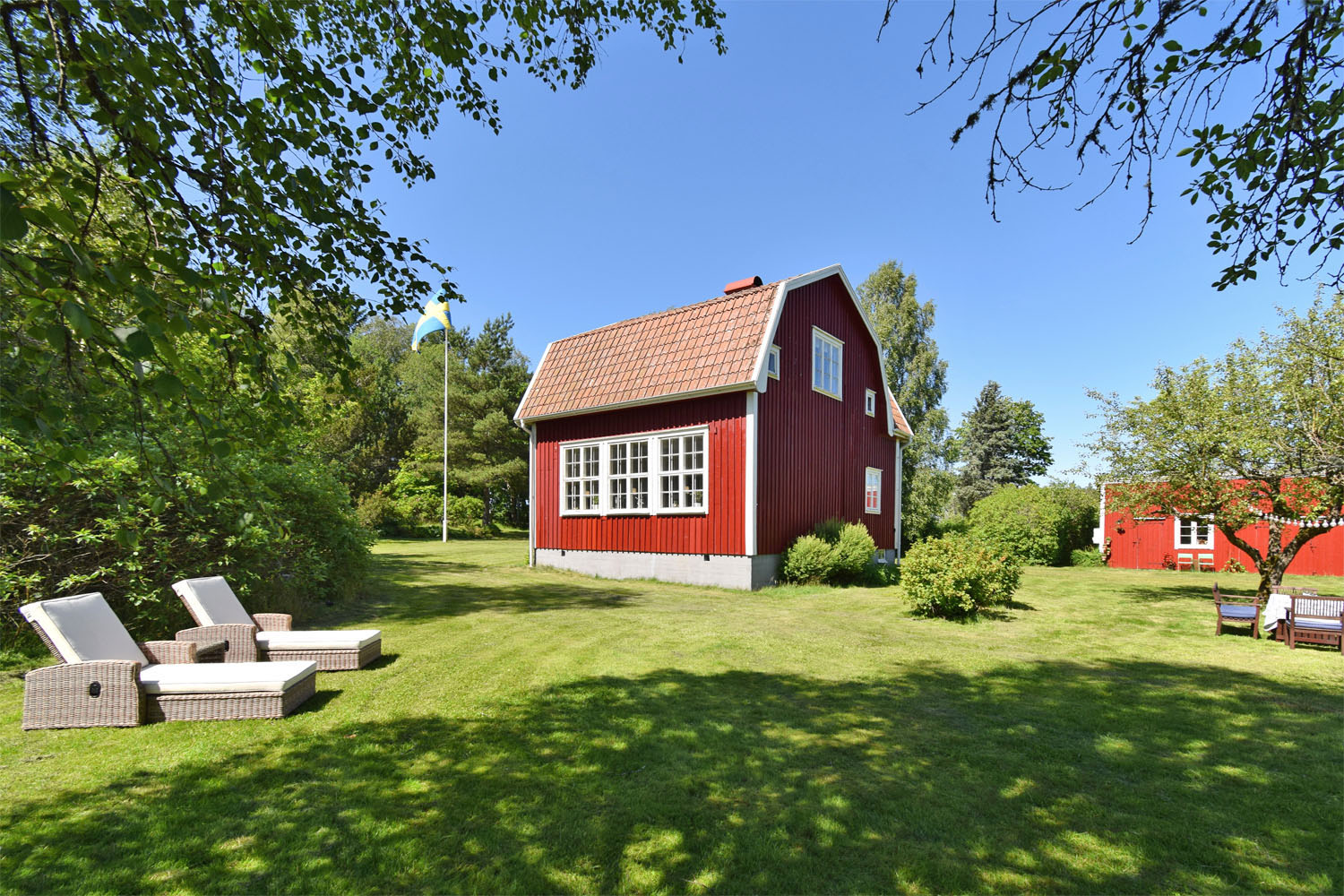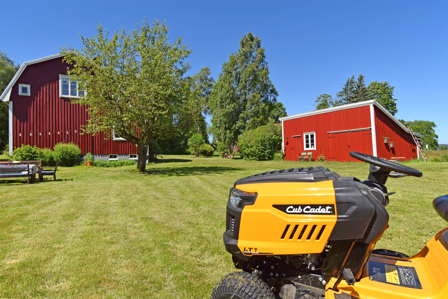 Trädgårdstomt med gräsmatta, träd, buskar, växter, rabatter och odlingar. I anslutning till tomten ligger betes och åkermarker. Tomten erbjuder möjligheter för den som önskar ytterligare planteringar och odlingar av olika slag. Växthus, altandäck, friggebod eller bastu och pool. På tomten finns flaggstång. Bevarade stenportar och gråsten vid ingång till fastigheten.