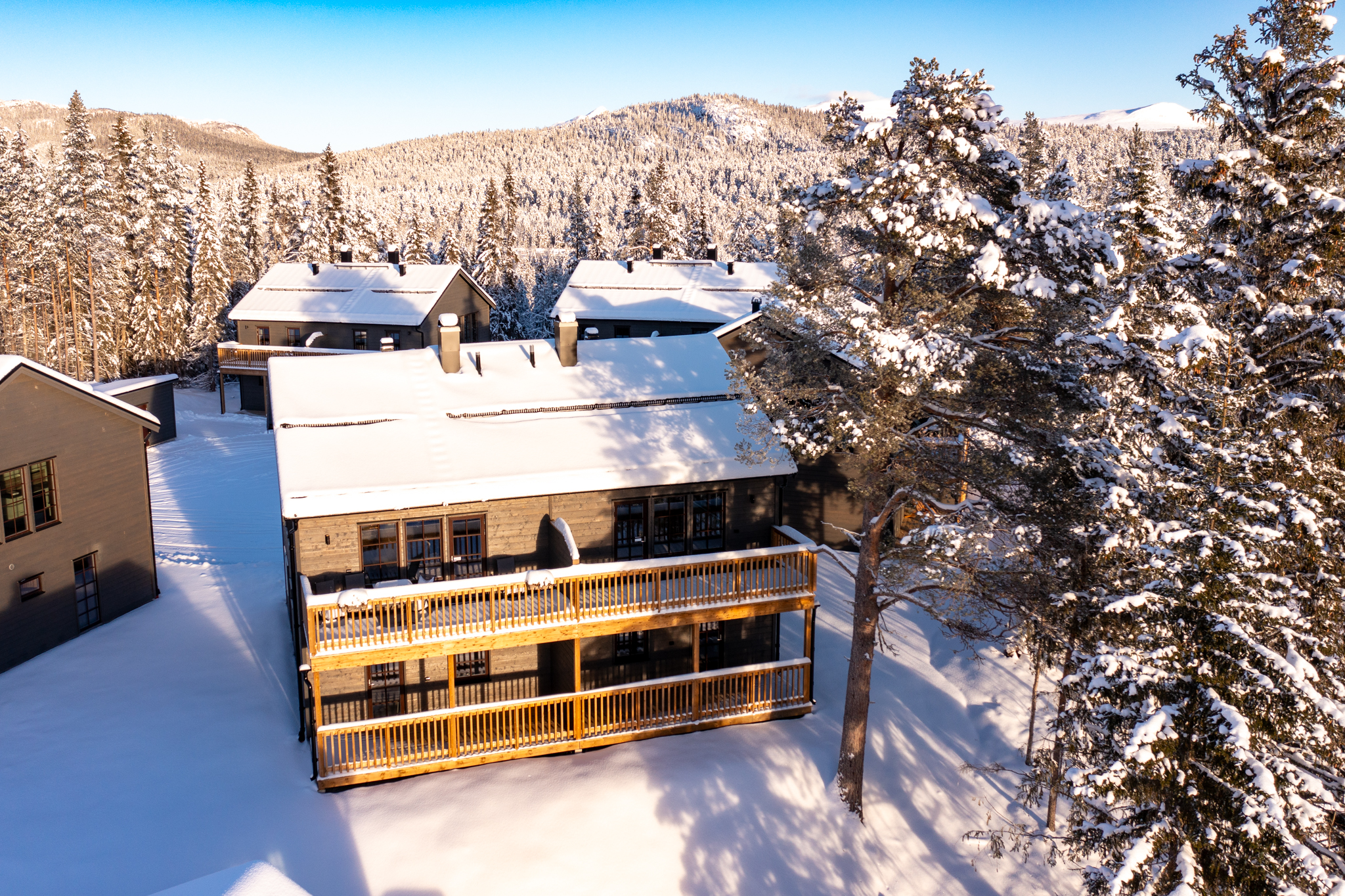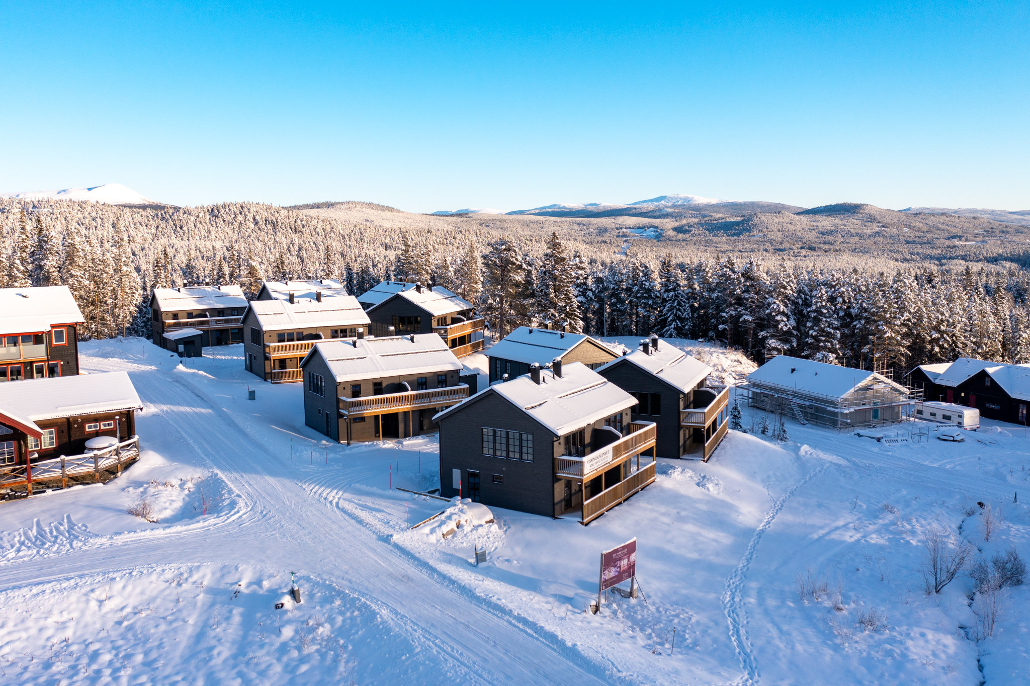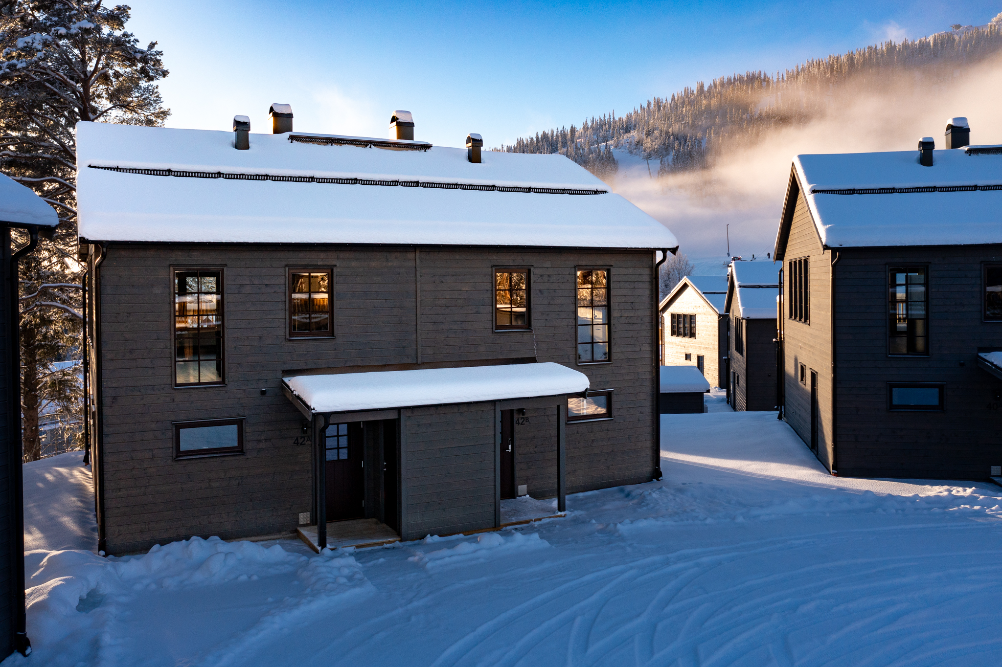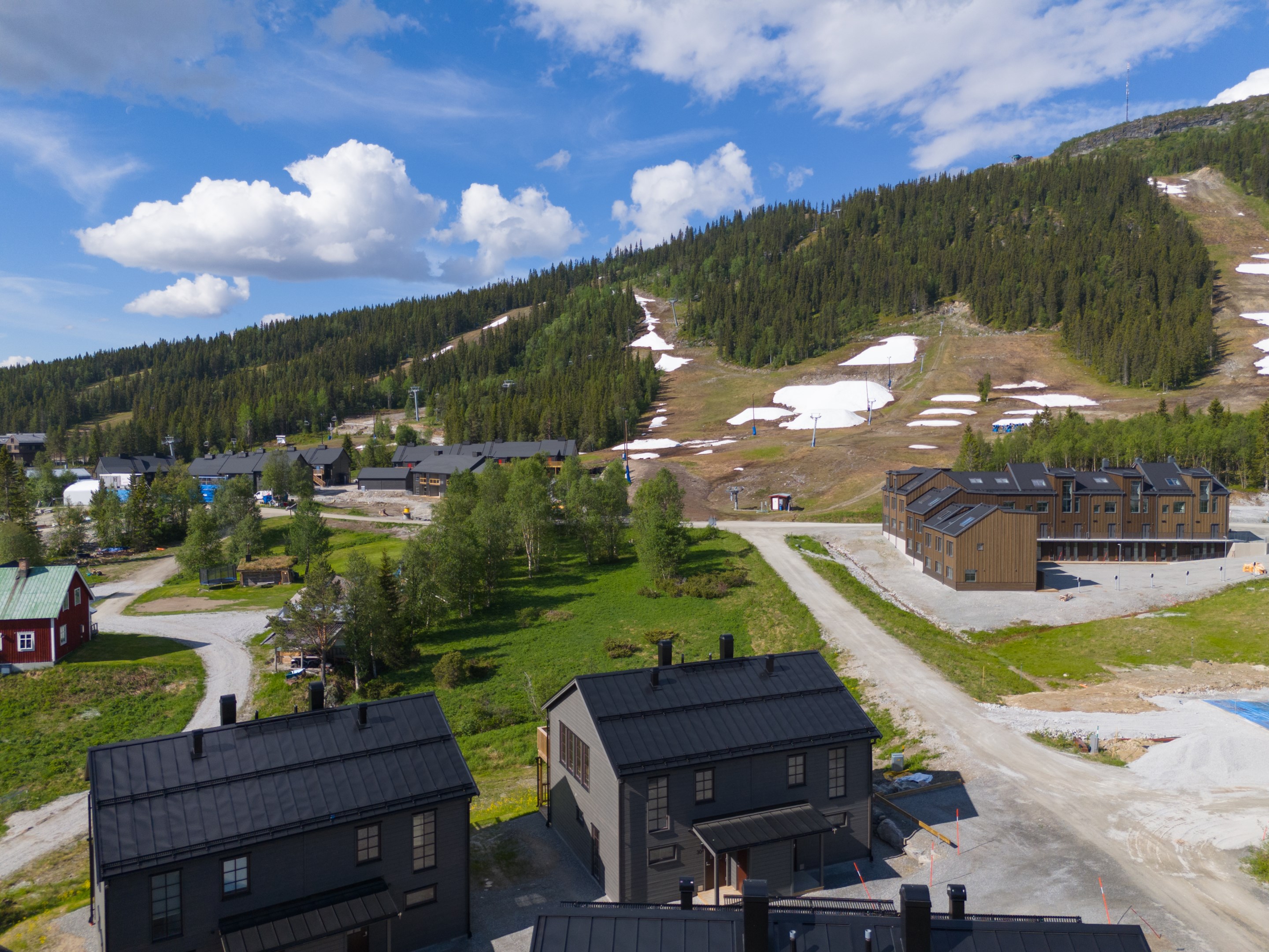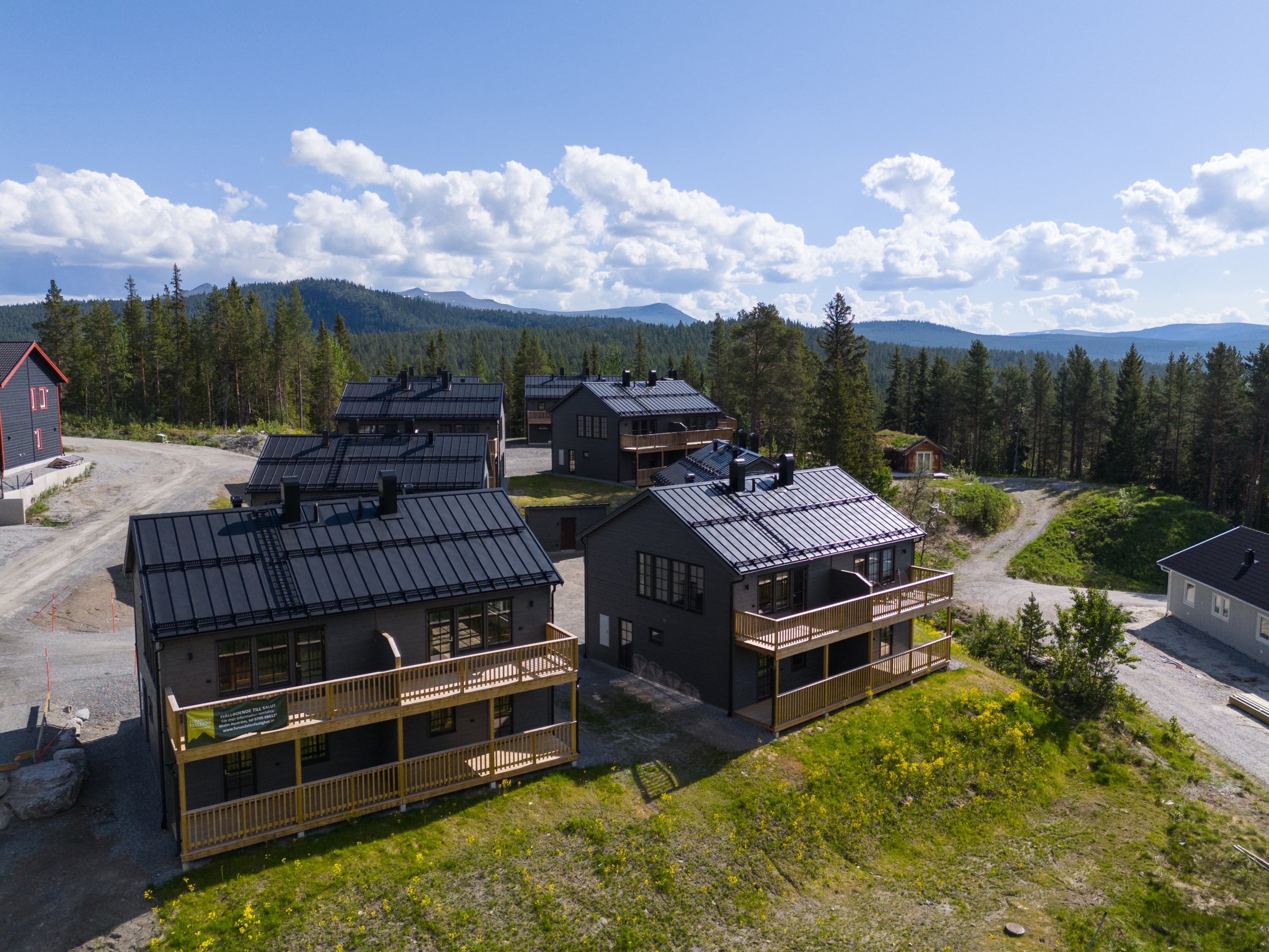 Några av fördelarna med dessa nybyggda och inflyttningsklara bostäder: # Enhetspris 3 195 000 kr, så först till kvarn! # Bostadsrättsföreningens ränta är garanterad i 24 månader # Låg belåning 7529:- kronor / m2 # Goda uthyrningsmöjligheter genom Bostadsrättsföreningens hemsida parkstigensfjallby.se # Kåvans bästa läge Ja vi vågar säga att detta nog är Kåvans bästa läge, lagom avskilt men ändå gångavstånd till allt. Nybyggda och inflyttningsklara parhus vid foten av Funäsdalsberget, mitt i Kåvans växande skidcenter - en perfekt utgångspunkt för skidälskaren med både gångavstånd till liftar och skidbackar samt direkt närhet till Nordic skis välpreparerade spårsystem. Samtidigt är läget lite avskilt med rofylld skog bakom knuten och Ljusnan i närheten vars forsande vatten hörs från balkongen. Sommartid är det bara att snöra på kängorna eller ta cykeln och direkt ge sig ut på fjälläventyr. Ett bekvämt läge för både avkoppling och fartfyllda friluftsaktiviteter året om! Brf Parkstigen består av 18 parhuslägenheter i två våningar fördelade på två etapper. Husen har betsad träpanel och spröjsade fönster och dörrar i mörkrött som fint smälter in i omgivande fjällmiljö. Alla bostäder är på 84 välplanerade kvm med fyra rum och kök. Husen har praktiska entréer med ett utvändigt skidförråd. Invändigt möts man av en rymlig hall med bra plats att ta på och av sig friluftskläder och torkskåp där man snabbt kan torka upp dem till nästa utflykt. Här finns även ett förråd under trappen. Entréplanet har två sovrum, ett med dubbelsäng och ett med våningssäng samt ett stilrent badrum med tvättmaskin och bastu. Här finns även en glasdörr till altan/tomt för den som vill ta sig ett uppfriskande dopp i nysnön efter bastun eller kanske installera en badtunna utanför? Övervåningen har ett stort och inbjudande allrum med fina fönsterpartier och braskamin som värmer skönt. Här finns gott om plats för både soffa och matbord. Köket från Vedum är stilrent och går i samma behagliga färgsättning som övrig inredning. För typhus A är balkongdörren i allrummet och för typhus B (som bilderna visar) är balkongdörren i köket. Husen är vända så att balkongerna är riktade mot Funäsdalsberget och skidbackarna. På övervåningen finns det tredje sovrummet samt ytterligare ett badrum. I föreningen finns två förrådsbyggnader tänkt som vallabod och möjlighet att meka med cykeln. Varje bostadshus har dessutom en vattenutkastare om man vill spola av cykeln. Ett perfekt fjällboende för dig som vill bo nytt och bekvämt men samtidigt ha tillgång till genuin fjällmiljö och bra skidåkning. Tack vare det fina läget finns även goda uthyrningsmöjligheter. Hälften av lägenheterna är redan sålda så passa på att välja just ditt drömläge innan det är för sent! Se bostadsväljaren för att välja läge.