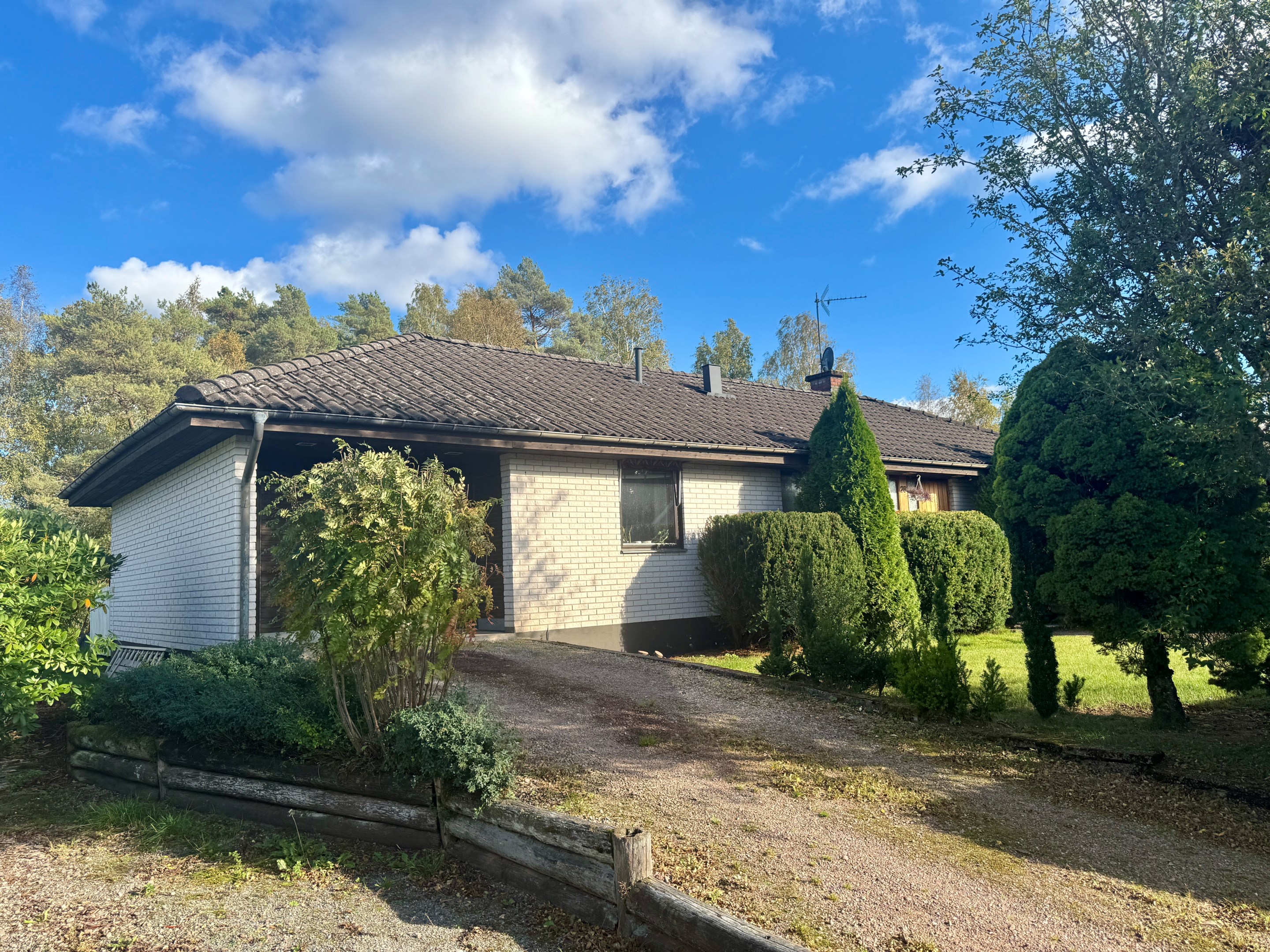 Välkommen till denna gedigna 1-plansvilla med källare – en fantastisk möjlighet att skapa ditt drömhem! Tegelvilla belägen på en stor hörntomt, nära skolan, fri från insyn och med naturen som granne. Låg energiförbrukning med jordvärme. 4rok i entréplan samt inredd källarvåning. I entréplan finner du ett rymligt vardagsrum, ett funktionellt kök med utgång till altanen, tre sovrum, ett badrum samt en gästtoalett. I källarplan väntar en mysig gillestuga med öppen spis– den perfekta platsen för avkoppling eller sociala stunder. Här finns också hobbyrum, tvättstuga med torkrum, wc/dusch, bastu och gott om utrymme för förvaring. En av fastighetens höjdpunkter är den härliga trädgården som ger en vacker grön inramning. Tomten omgärdas av en rejäl häck som skapar ett privat och insynsskyddat läge. Den stora tomten sträcker sig ända fram till en skogsdunge på baksidan, vilket ger en härlig känsla av naturen inpå knuten. Missa inte chansen att sätta din prägel på denna pärla! VISAS ÄVEN LÖPANDE - HÖR GÄRNA AV DIG SÅ BOKAR VI EN TID SOM PASSAR! Kravet på egen kontantinsats har sänkts! Nu kan det räcka att du har mellan 5–10 % av köpeskillingen i eget kapital för att kunna köpa bostad. Vill du veta vad som gäller och vilka möjligheter du har? Kontakta oss så berättar vi mer.