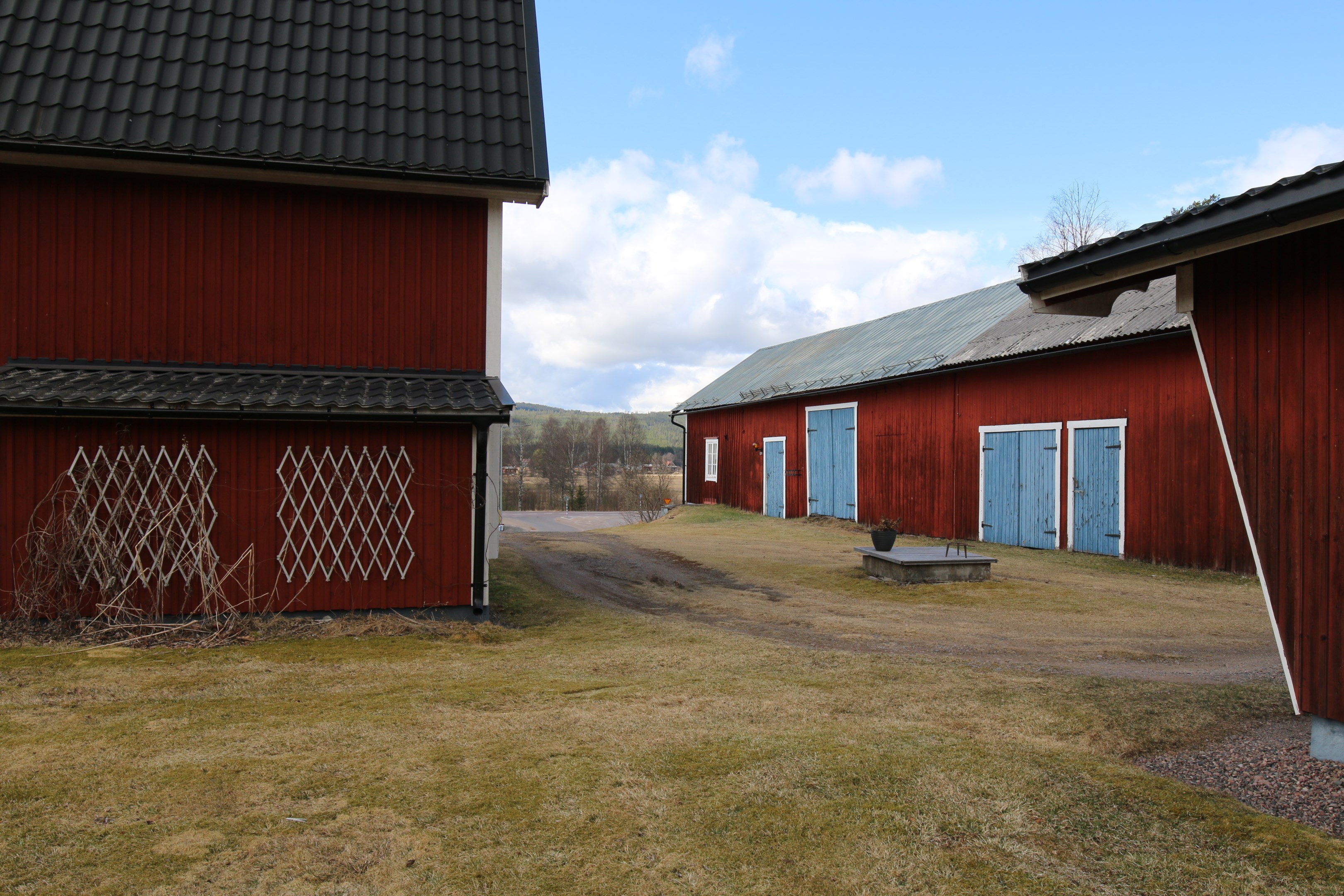 EKONOMIBYGGNAD Uthus i trä och timmer med plåt-och eternittak. Byggyta om ca 150 kvm. Inrymmer: 1/ Vedbod. 2/förråd. 3/ Garage/skoterbod med gjutet golv, loft, 2-sittigt utedass. 4/ Loge, f.d. hölada. 5/ förråd. 6/ förråd (f.d. fjös). 7/matkällare. 8/förråd (f.d. dyngstad).