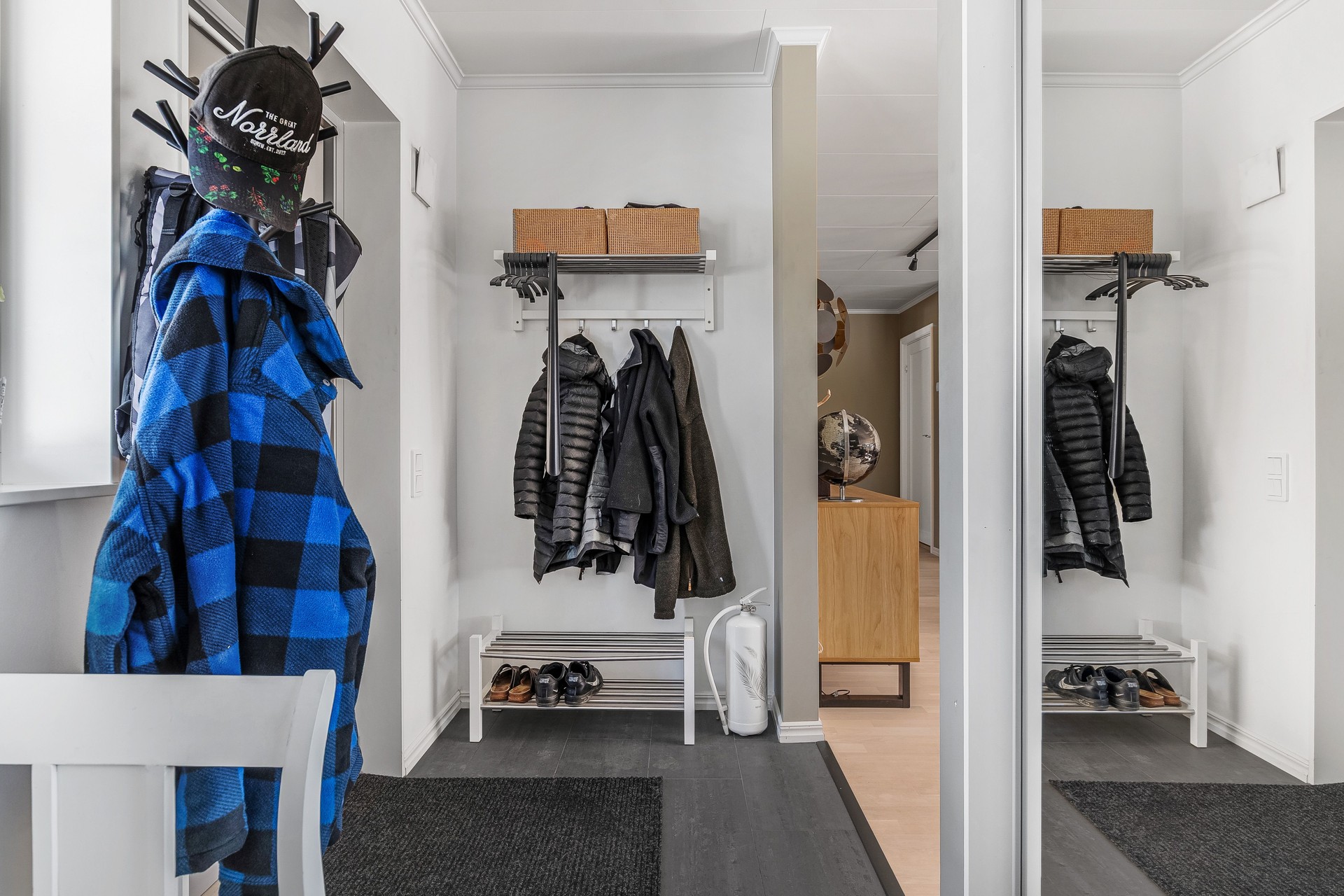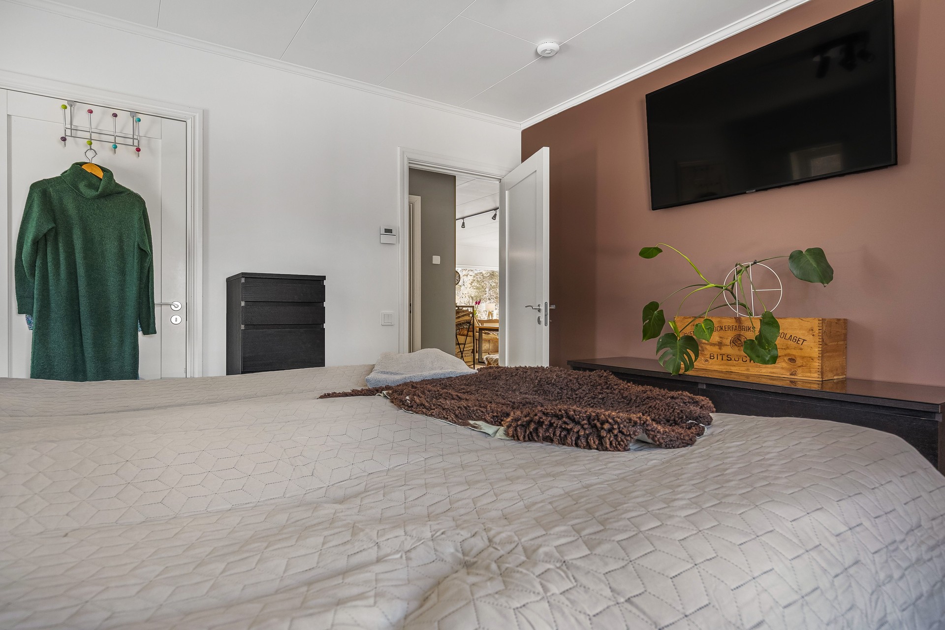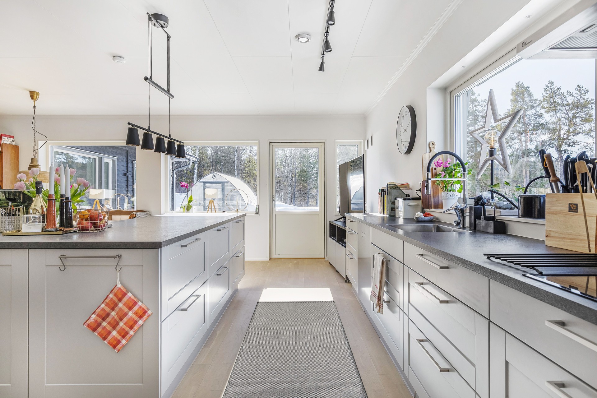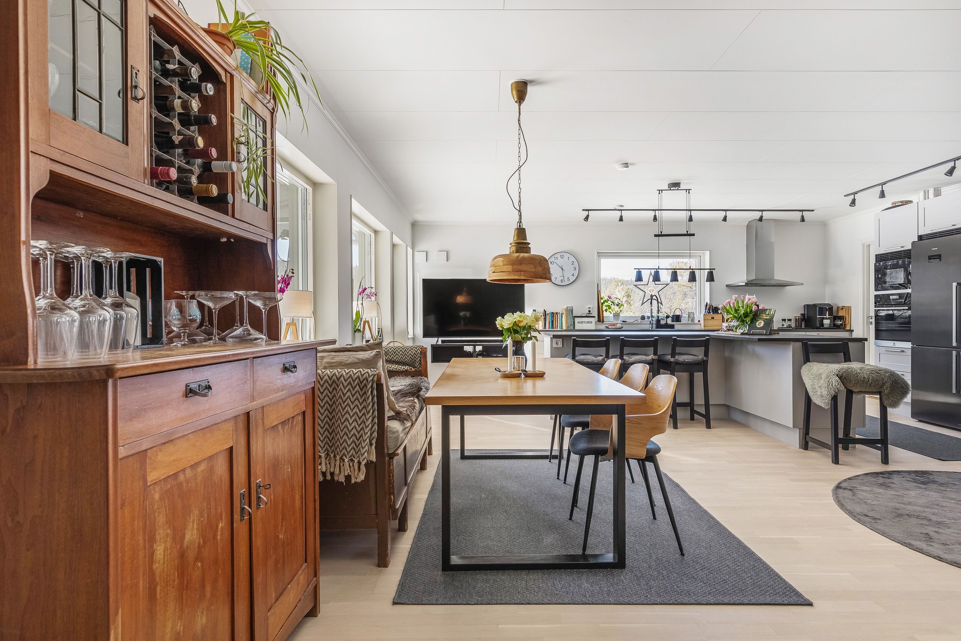 Ett drömboende strax utanför Bruksvallarna! Här på Stråndvägen 10, finns den här fina fastigheten som nu skall säljas. En underbar 1-plans villa som tillsammans med ett av västra Härjedalens lyxigaste garage skapar ett attraktivt boende med härlig gårdskaraktär i vacker omgivning. Gården som är belägen på den fina sandås som bildar en udde en bit uppströms Ljusnan från Flon, har härlig fjällutsikt mot Skarvarna och Kariknallen. Här bor du ljust, rofyllt och samtidigt med så många möjligheter som skapas genom de unika byggnaderna på just denna tomt. Bostadshuset är ett Myresjöhus på 157 kvm. boarea som har allt man kan önska av ett "nytt", fräscht hus från 2019. Huset är välhållet, har stora sällskapsytor och fyra sovrum (varav ett används som kontor idag). Här känns allt välplanerat och inget har lämnats åt slumpen. Huvudentrén är praktisk med sitt kapprum till höger och bra förvaring bakom skjutbara spegeldörrar. Kök och vardagsrum har täljstensklädd braskamin, en fin färgsättning med dova färger på väggar och golv och väl tilltaget kök i öppen planlösning med grå inredning, köksö, dubbla kyl/frys och skafferi. Bredvid vardagsrummet finns ett allrum med ingång till tre sovrum, kontor och helkaklat badrum. Närmare groventrén kombinerad med tvättstuga, finns ett större badrum med dubbla handfat, takdusch och bastu. I anslutning till det större badrummet finns sovrum 4, "master bedroom" med klädkammare bredvid. Ett växthus i anslutning till altanen är drömmen för många. Precis som det fantastiska garaget är för andra. Vem vill inte pröva sina gröna fingrar, odla egna grönsaker och sen bara kunna öppna altandörren och gå ut i växthuset för att hämta in det som behövs för stunden till matlagningen. Garaget med en byggnadsarea om 192 kvm är något utöver det vanliga. Varmgarage-delen på hela 87 kvm. har vattenburen golvvärme, två vikportar och dessutom ett badrum med dusch, wc, handfat och tvättmaskin för tvätt av t. ex. arbetskläder. Vägg i vägg finns det oisolerade dubbelgaraget för två bilar, motordrivna portar och bra förrådsutrymmen. Garaget och huvudbyggnad stod klart 2019. År 2020 kompletterades garaget med en carport som passar bra för t ex. husvagn, husbil eller kanske gårdens traktor.