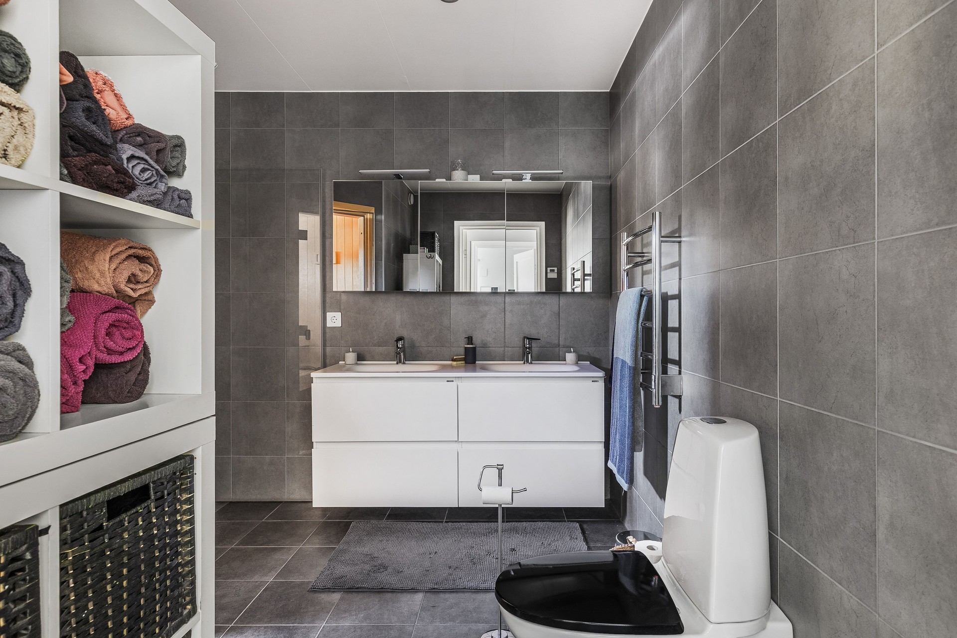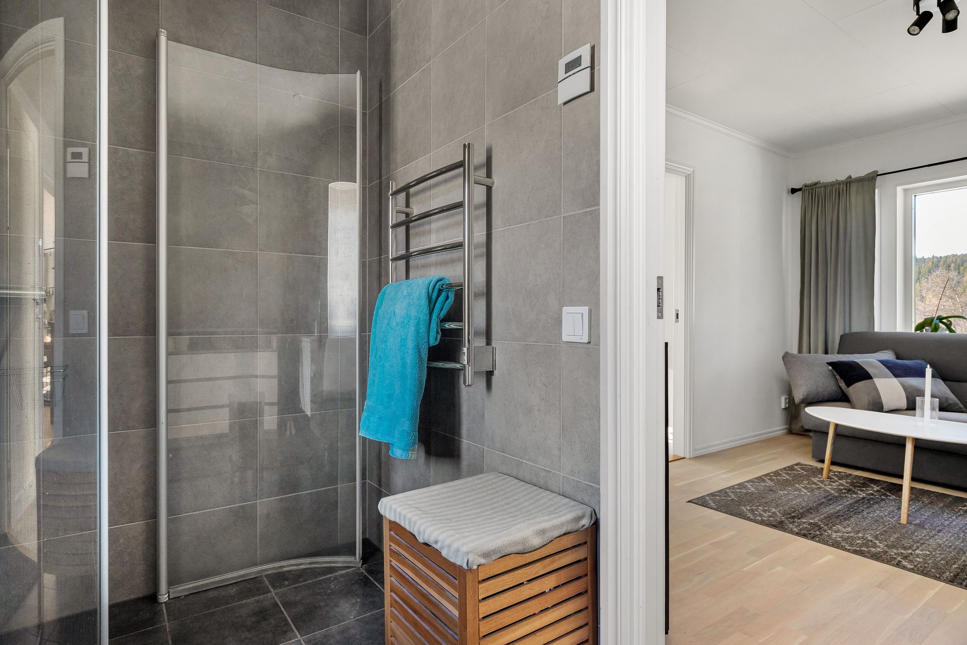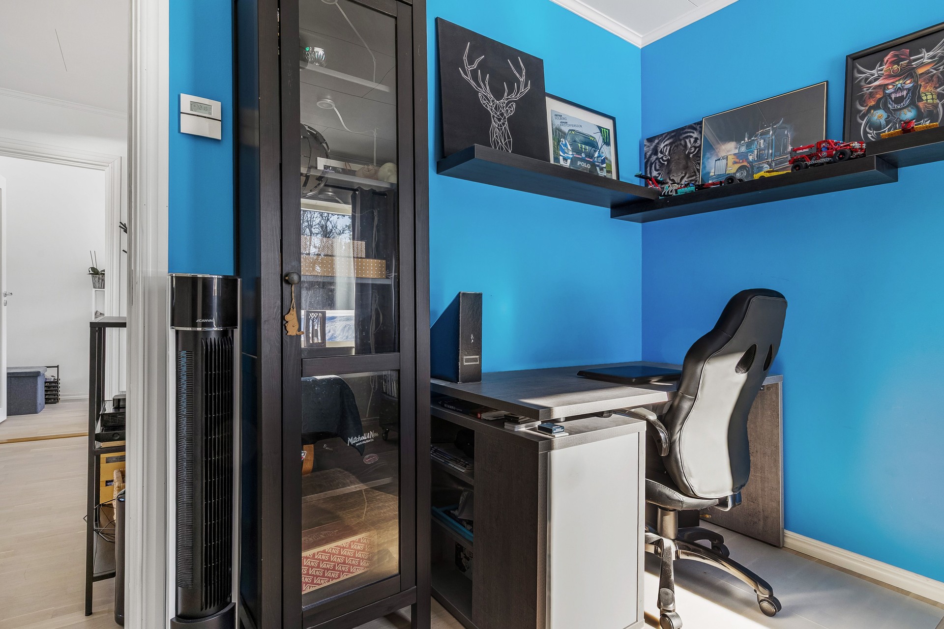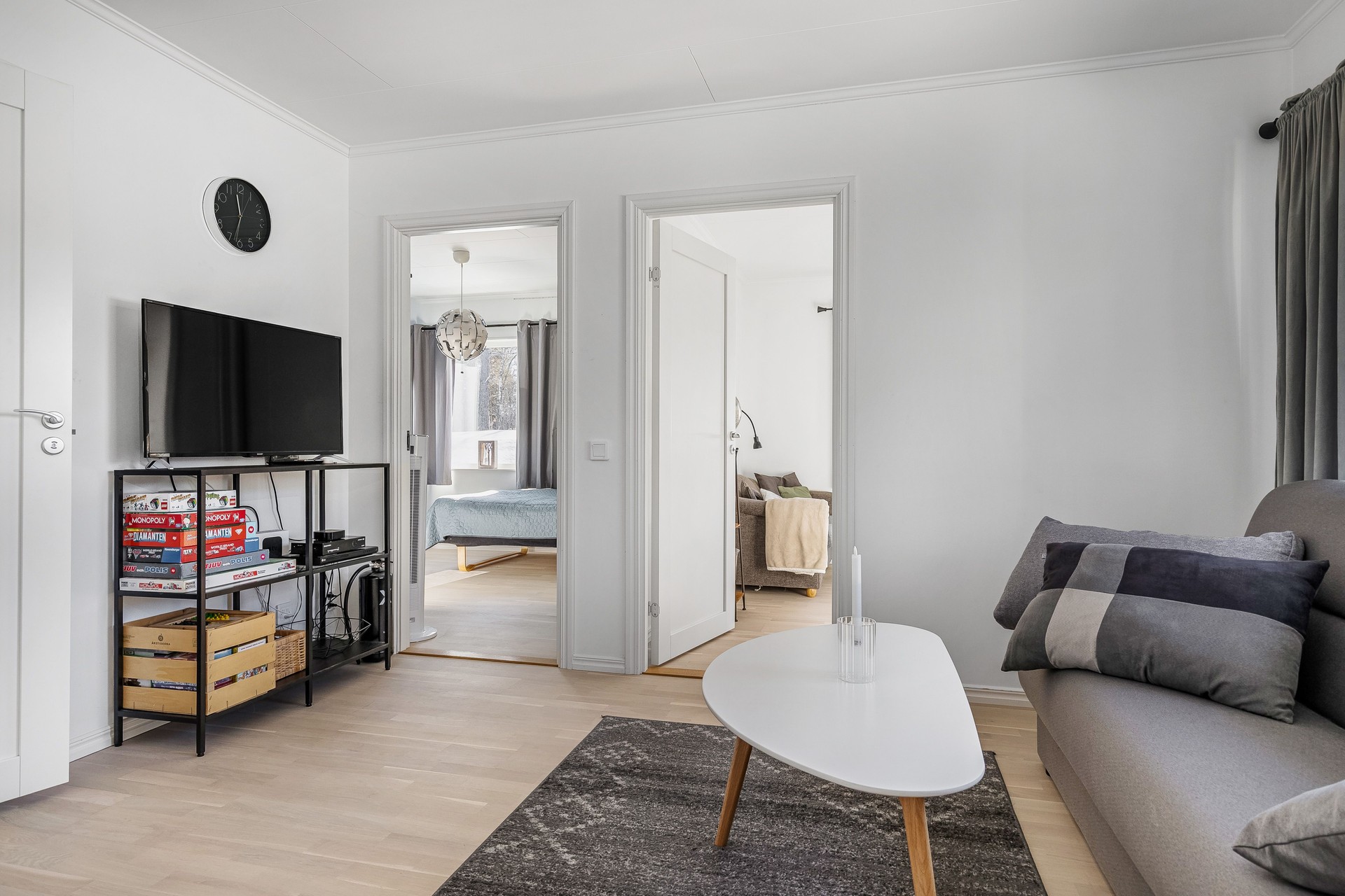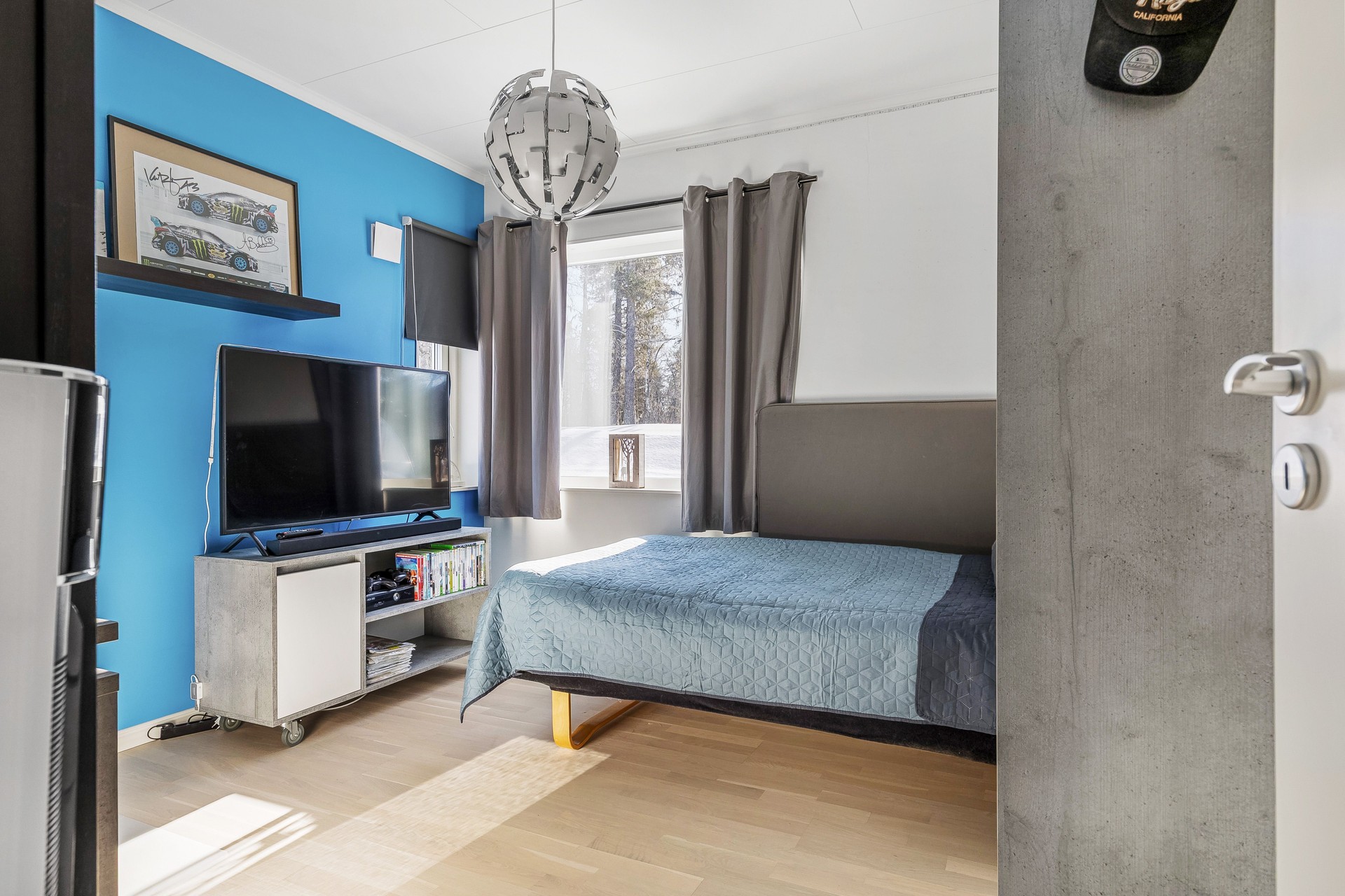 Fint utformad villa från Myresjöhus av modell Annedal som från grundritning ritats om och ändrats för att bli så bra som det är. Huset upplevs ljust, med stora ytor och bra planerat med två entréer, två fullstora badrum och dimensionerat kök i förhållande till husets storlek. Huvudentrén leder in till en hall med garderobsvägg bakom skjutbara glasdörrar till höger. Klinkergolv, målade skivor på väggar och i tak. Rakt fram från hallen finns kök och vardagsrum med större köksö i anslutning till köket. Rummet är stort och har en täljstensklädd braskamin till vänster i rummet. I köket finns ett stort skafferi med bra hyllförvaring. Köksutrustningen består av rostfria vitvaror så som dubbla kyl/frys (2023), diskmaskin (2022), fläktkåpa med fläkt (2019), glashäll med induktion (2024), inbyggnadsugn (2024) och mikrovågsugn (2024). Rostfri ho nedfälld i laminatskiva. Laminatgolv, målade skivor på väggar och i tak. I vinkel av huset finns ett ytterligare, lite mindre allrum som ansluter till badrum 2, sovrum 2, 3 och 4 (idag kontor). Samtliga rum har ytskikt med laminatgolv, målade skivor på väggar och i tak. Badrummet i anslutning till allrummet har klinker på golv, kakel på väggar och målade skivor i tak. Badrumsinredningen består av wc, handfat med kommod samt dusch med glasdörrar och elektrisk handdukstork samt fönster för vädring. Till vänster, vägg i vägg med huvudentrén, finns tvättstuga med groventré. Rummet inrymmer tvättmaskin, torktumlare, centraldammsugare och Nibe 750 frånluftsvärmepump. Rostfri ho nedfälld i laminatskiva. Ett städskåp samt överskåp. Lucka till vind i taket. Till vänster om tvättstugan med tvättmaskin och torktumlare (båda fr 2024) finns sovrum 1 med fönster i två väderstreck och ingång till separat klädkammare. Laminatgolv, målade skivor på väggar och i tak. Mitt emot sovrummet finns ett större badrum med bastu. Klinker på golv, kakel på väggar och målade skivor i tak. Wc, dubbla handfat med kommoder och dusch samt elektrisk handdukstork på vägg. Bastun har klinkergolv samt träpanel på väggar och i tak. Elektriskt bastuaggregat och fönster.