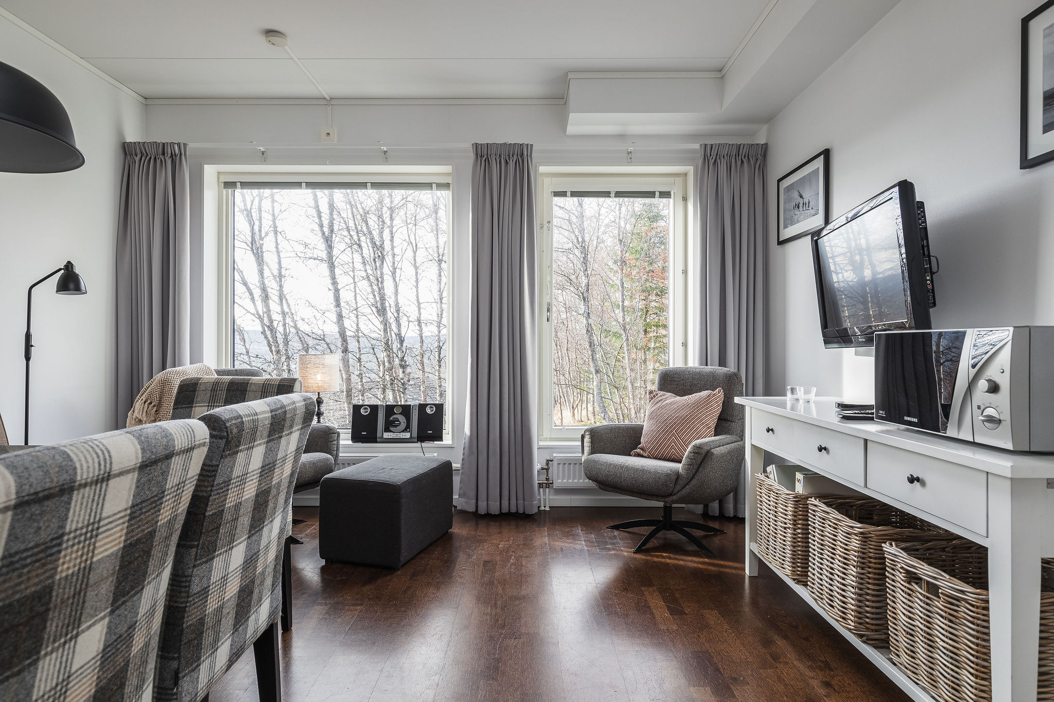 Väldisponerad bostadsrätt med 5 r.o.k. intill Röstbergsliften i Funäsdalen by! Här, på Funäs Ski Lodge, vid Funäsdalsberget finns möjligheten att vara först ut i backen, varje dag. Det här är ski-in/ski-out på riktigt och liftbyglarna från Röstbergsliften alldeles intill husen tar dig upp till toppen på Funäsdalsberget på några minuter. Här kan du enkelt och bekvämt kliva på skidorna strax utanför ytterdörren utan att behöva starta bilen för att ta dig till backen. Läget är perfekt med närheten till berget. Både för den alpina skidåkningen och för närheten till den levande bykärnan med både caféer och restauranger, butiker, apotek, systembolag och välsorterade mataffärer på bara 7 minuters promenadväg. Bostadsrätten A14 om 119 kvm i två etage, ligger i hus A. Den är stor och rymlig med totalt 10 bäddar fördelat på fyra olika sovrum. Entrén, en trappa upp från markplan, inleder boendet med en större hall och trapphus som övergår i ett välutrustat kök med plats för många kring matbordet. Invid fönstren mot dalen finns även en mindre allrumsdel med TV och fåtöljer. Utsikten genom de generösa fönsterpartierna ger en fin vy över dalgången med Funäsdalen by och sjön strax nedanför. På entréplan finns också ett av lägenhetens två badrum. Lägenheten rymmer många och en trappa upp, möts vi av ett stort allrum med braskamin, fransk balkong, fyra sovrum och ett större badrum med generös bastu, tvättmaskin och dusch. Planlösningen och ytorna är genomtänkta och rummen är väl tilltagna i storlek. Den här lägenheten ger möjlighet för större sällskap att semestra tillsammans, fungera som generationsboende eller för två familjer och ändå får packningen plats, utan problem. Förutom närhet till alpin skidåkning, finns längdspåret också alldeles utanför dörren. Här passerar Funäsfjällens spårsystem med 30 mil variationsrik längdskidåkning. Ett spårsystem som sammanlänkas mellan dalgångarna och kvalitén på spåren håller hög klass. I Funäsfjällen är livet njutbart året runt. När liftarna stängt och sommarsäsongen drar i gång, erbjuder närområdet fina cykelleder, vandring, jakt och fiske i den friska luft och härliga natur som faktiskt finns här. Bostadsrätten säljs fullt möblerad och köksutrustad. Genom Funäs Booking finns bra uthyrningsmöjligheter via www.funas.se och fler säljkanaler samt väl inarbetade samarbeten, exempelvis Destination Funäsfjällen och Stugvärden som också bistår med löpande drift och vaktmästeri. Observera att bilderna avser boende i kategori 120 i Brf Funäs Ski Lodge. Vissa tagna i A14. Skillnader i planlösning, ex. spegelvända kök och vissa möbler kan skilja jämfört med bilderna.