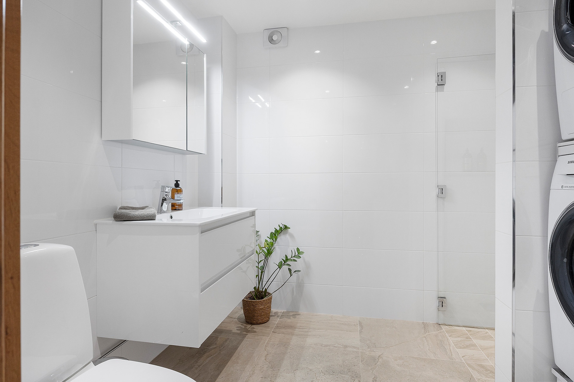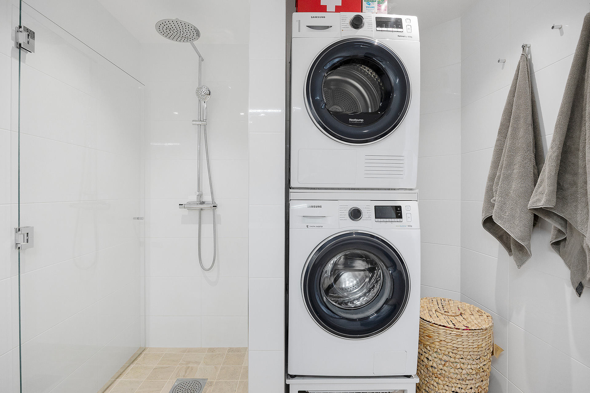 Stort duschrum med tvättstapel