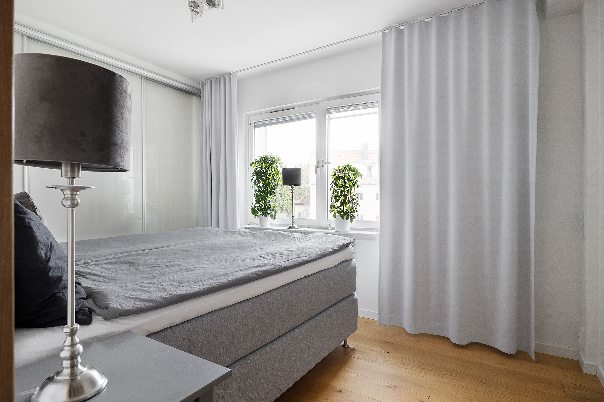 Sovrum med skjutbar garderobsvägg