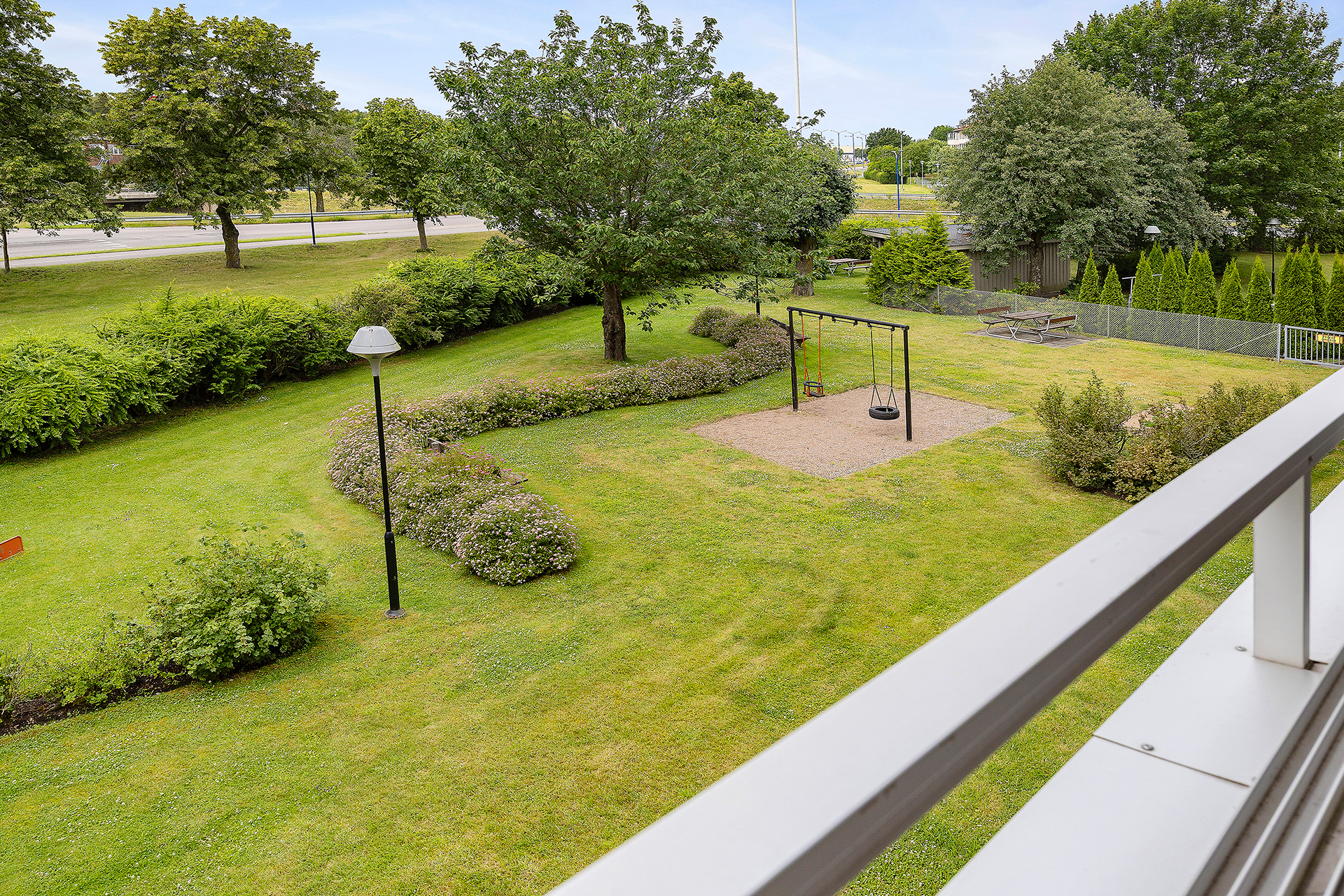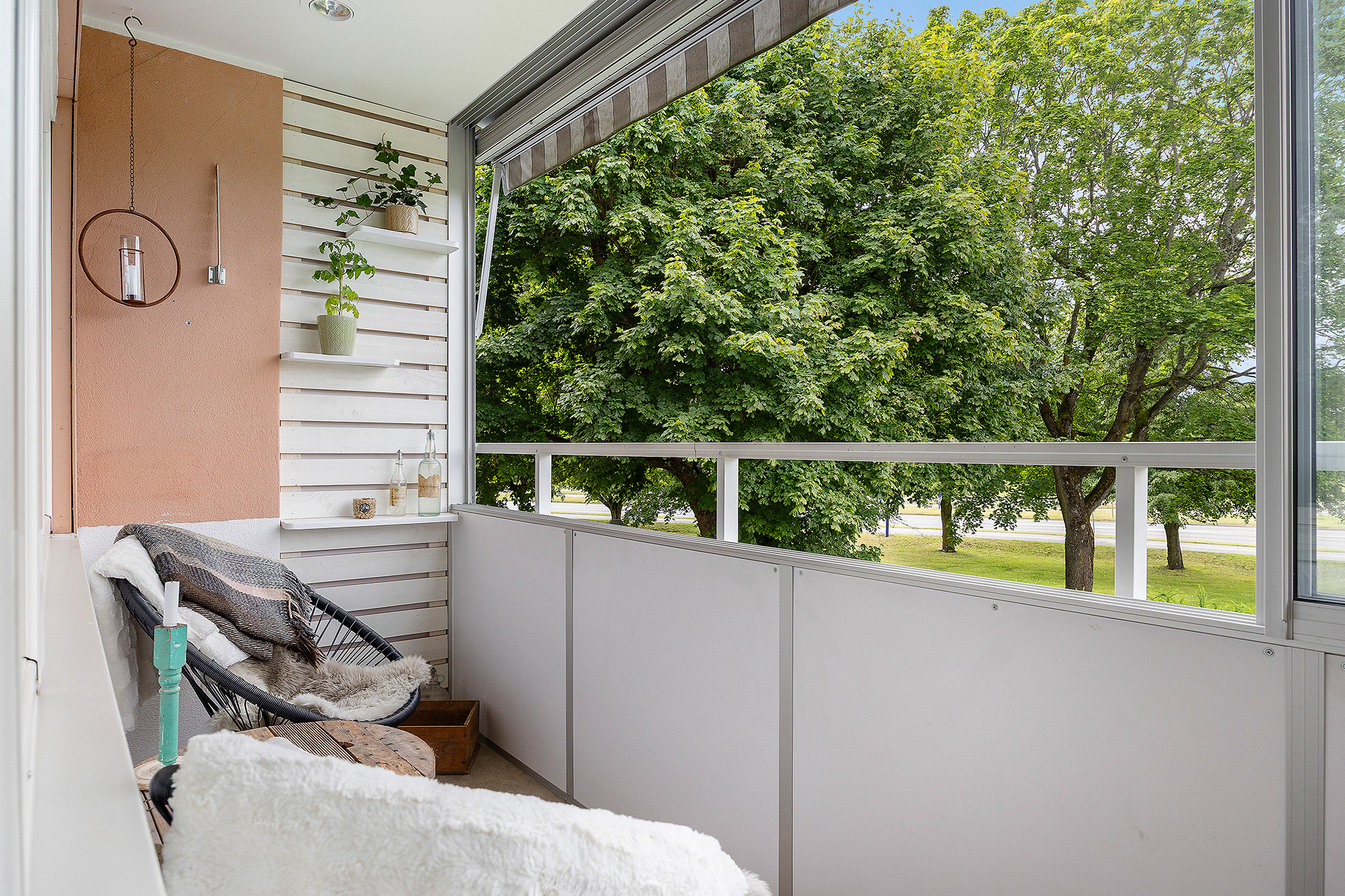 Balkong, uteplats och bilplats