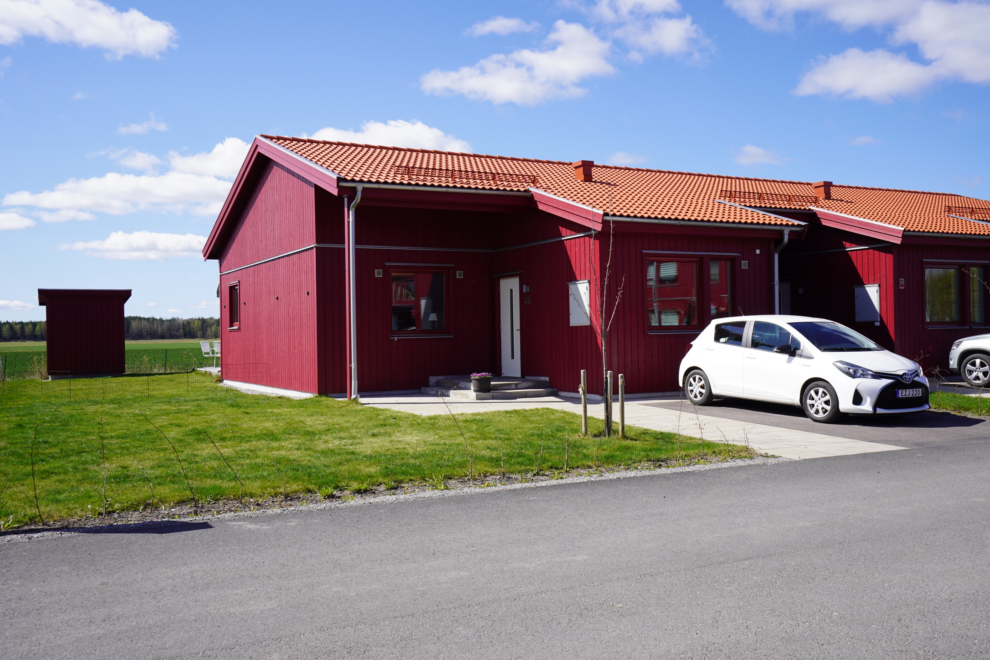 Välkommen till ditt nya, bekymmersfria hem i natursköna Dingtuna Kyrkby – en plats där lugnet sveper in med morgondimman över åkrarna och fåglarnas första kvitter blir dagens melodi. Här får du allt det bästa av det lantliga livet, utan trappor, vildvuxna trädgårdar eller renoveringsbekymmer – bara ett perfekt, nyproducerat enplansradhus från 2022 att flytta rakt in i. Gavelläget med lite mer yta och enskildhet gör det än mer attraktivt! Tre rum och kök i öppen planlösning ger ett luftigt och socialt hem – perfekt för både vardag och umgänge. Det stilrena köket flyter sömlöst samman med vardagsrummet, där stora fönster släpper in ljuset och förstärker känslan av rymd. På baksidan hittar du en altan i soligt sydvästläge med vidsträckt utsikt över öppna åkrar – en plats att njuta av morgonkaffet, en god bok eller kvällens grillmiddag med vänner. En markis ger skön skugga under soliga dagar. På framsidan har du en egen uppfart med plats för bilen och ytterligare en uteplats, perfekt när solen står högt på himlen. Gräsmattan är precis lagom stor – lätt att sköta men ändå tillräcklig för lek, odling eller avkoppling. Här kan barn, barnbarn eller hund springa fritt medan du själv lutar dig tillbaka och njuter av det goda livet. Med skola och förskola på promenadavstånd, och endast 10 minuter till Erikslund handelsområde eller Västerås city, blir vardagspusslet enkelt. Oavsett om du tar bilen, bussen eller tåget så tar du dig snabbt dit du vill. Detta är det perfekta boendet för dig som vill leva bekvämt, modernt och nära naturen och lugnet – utan att kompromissa med tillgänglighet eller livskvalitet. Välkommen hem till Dingtuna Kyrkby – där det enkla livet är som allra bäst. Anmäl Ditt intresse redan idag inför den kommande försäljningen för att inte gå miste om detta unika hem!