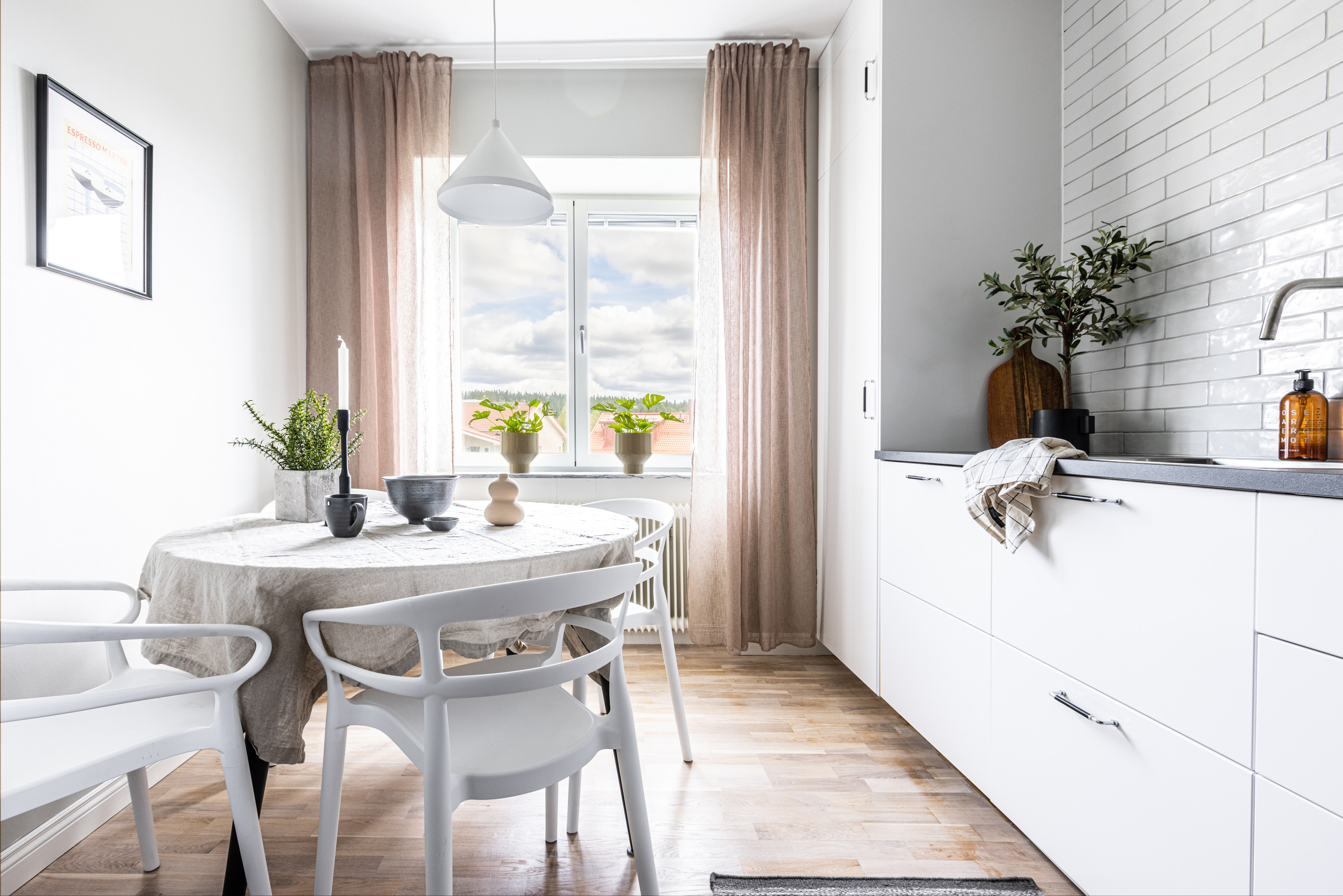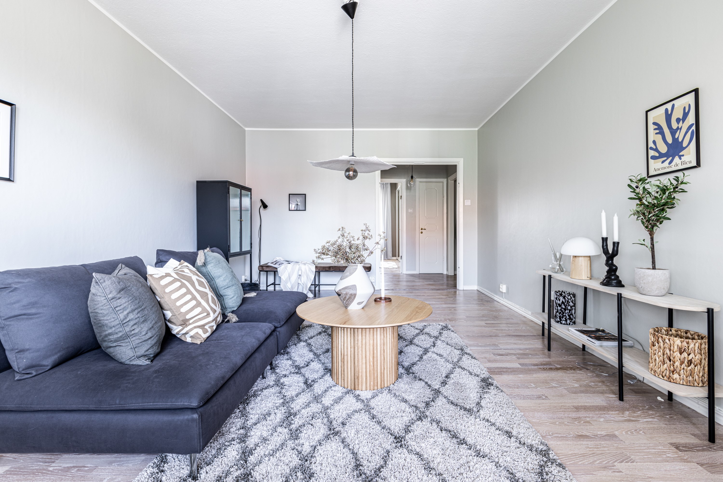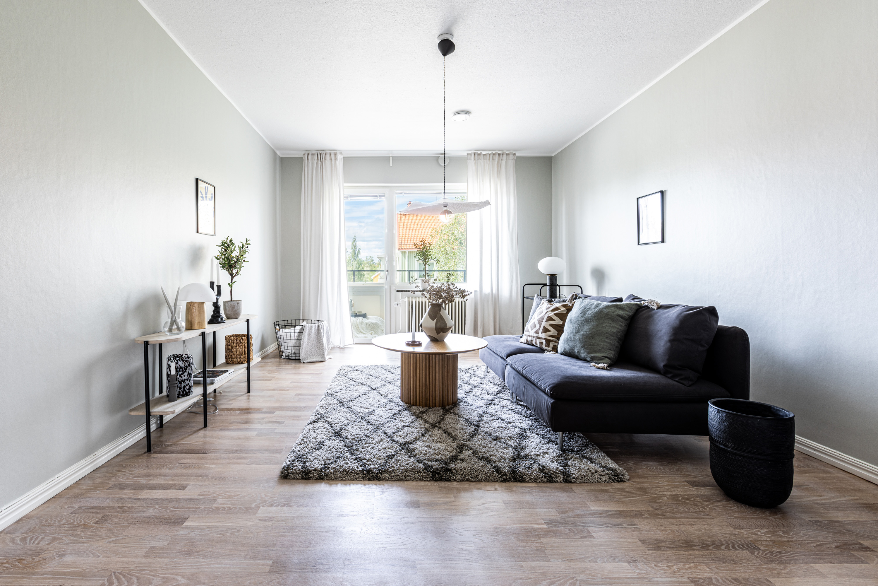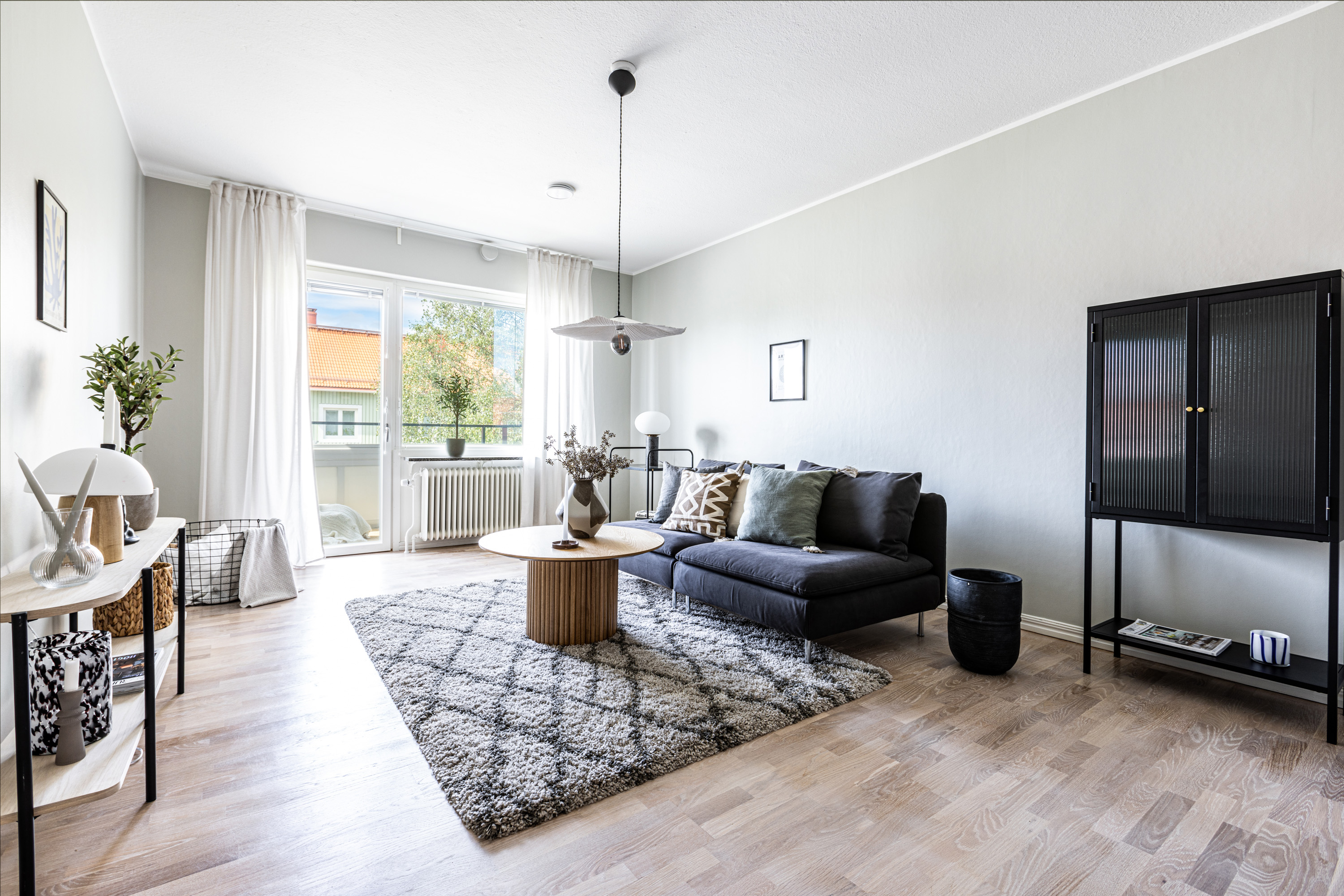 Välkommen! Vi börjar med att gå en rundtur i 2-rummaren och det första rummet som vi möts av är hallen. Under era fötter ligger ett nyslipat parkettgolv i ek som löper vidare genom lägenhetens alla rum. Plats för avhängning till vänster om entrén och förvaring lite längre fram till höger i praktisk klädkammare. Första svängen till höger leder oss in i det nyrenoverade köket, signerat IKEA. Gott om förvaring i lådor och skafferi samt goda arbetsytor ovan bänkskiva i laminat. Maskinparken består av kyl och frys, integrerad diskmaskin, ugn, induktionshäll och fläkt. Plats för matbord! Lite längre fram till höger disponeras det rofyllda sovrummet, beläget in mot den lugna innergården. Här rymmer du utan problem dubbelsäng med nattduksbord på vardera sida. Förvaring via inbygga garderober och plats finns även för byrå om så önskas. Rakt fram från hallen sett ligger badrummet. Badrummet är nyrenoverat och här har man valt att kosta på med kakel och klinker på väggar och golv. Badrummet är försett med wc, handfat med kommod, handdukstork och dusch. Sist men inte minst har vi vardagsrummet som ligger placerat en bit in till vänster. De väl tilltagna ytorna gör det fullt möjligt att möblera med soffgrupp och matsalsmöbel utan att rummet känns övermöblerat. Härifrån tar ni er ut på den inglasade balkongen som ligger till fördel för eftermiddags- och kvällssol. Dörren som länkar samman lägenheterna med varandra är låst men man har valt att inte bygga igen den för den händelse att nästa ägare vill använda lägenheten som en sammanhållen 3-rummare. 1:an nås i dagsläget via separat dörr i trapphuset. Denna lägenhet är yteffektiv och har kombinerad hall/kök, rymligt badrum med dusch och ett stort allrum med garderobsvägg samt plats för säng, matbord och skrivbord om så önskas. I hall och allrum pryds golvytorna av ett parkettgolv i ek. OBS! Föreningen kommer att renovera balkongerna.