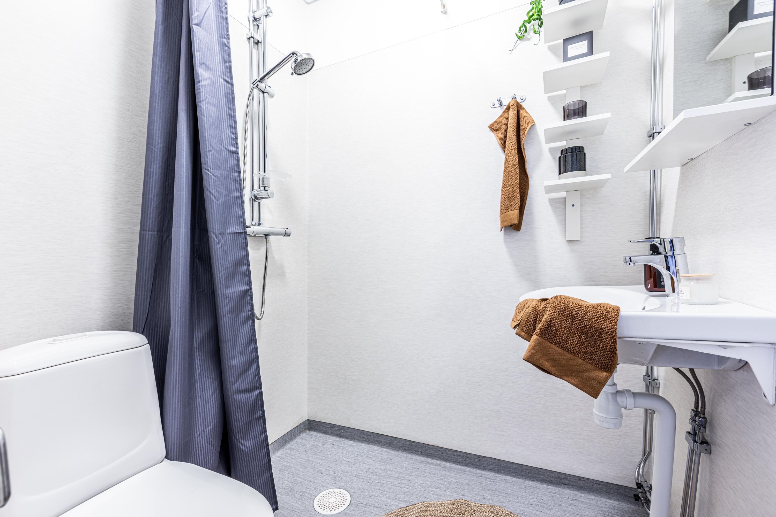 Vill du bo både bra och billigt? Då ska du bo här! Lägenheten var i grundutförandet en rymlig 3:a med kök, badrum och en gästtoalett men har sedan disponerats om. Resultatet? Två separata lägenheter med varsin ingång, matlagningsmöjligheter och kompletta badrum vilket gör det möjligt att bosätta sig i den ena lägenheten och hyra ut den andra. OBS! För den som önskar går det givetvis att återställa lägenheten så att den utgör en 3:a med dubbla badrum. Interiört kommer du att uppskatta den stilsäkra renoveringen som man har låtit utföra. Golven löper enhetligt från hallen och in genom lägenhetens alla rum och väggarna är smakfullt färgsatta. Badrummet är helkaklat, köket fullt utrustat och balkongen inglasad, vad mer kan man begära? För dig som söker lugna kvarter men vill bo med närhet till city, universitet och sjukhus samtidigt som grönskande parker, skog och motionsspår bara ligger ett stenkast bort – här har vi ditt framtida hem! » Lägenheterna måttar ca 58 kvm respektive 20 kvm. » 1:an är utrustad med dusch samt ett minikök som inrymmer kyl med frysfack, induktionshäll och fläkt.