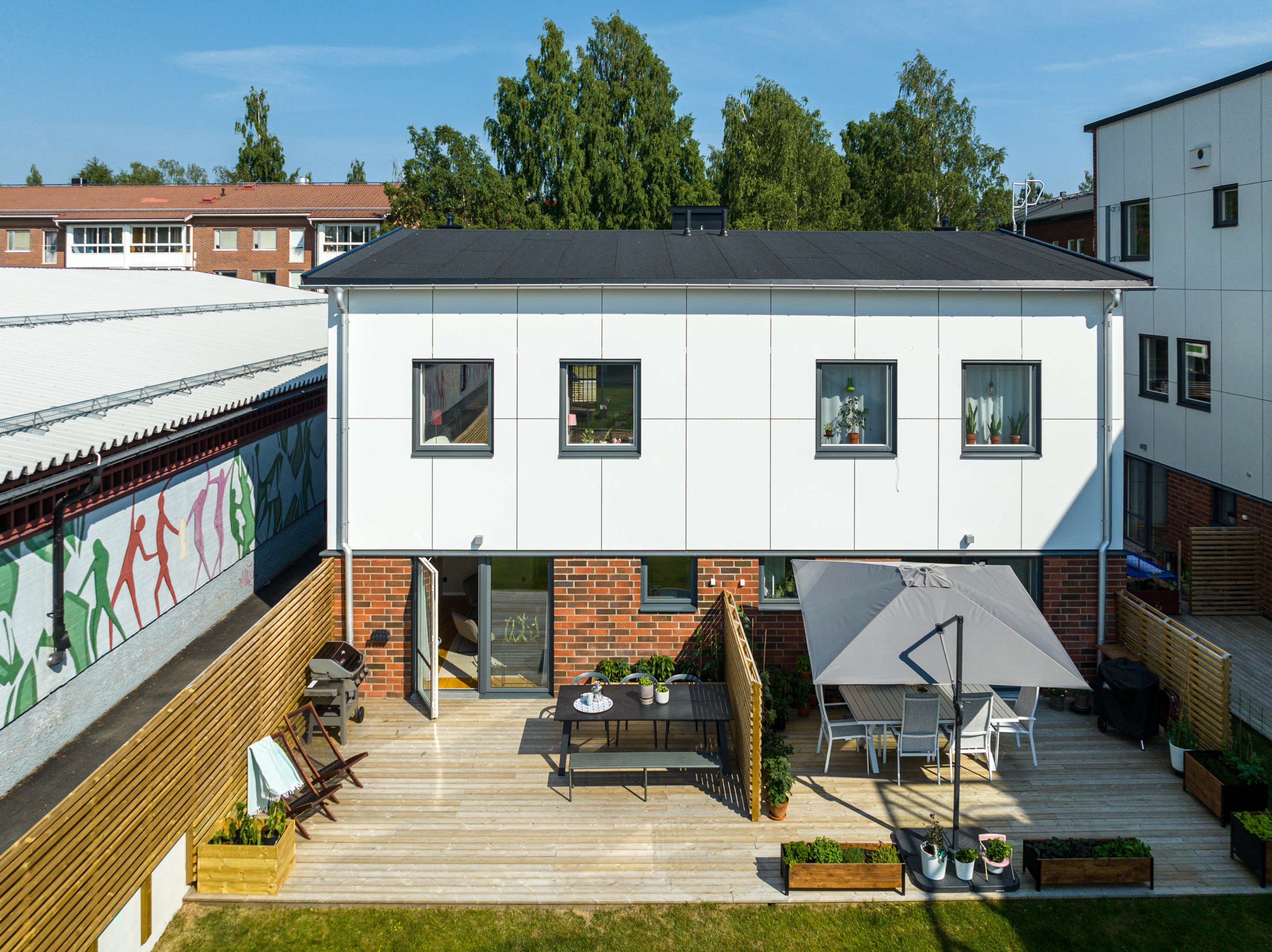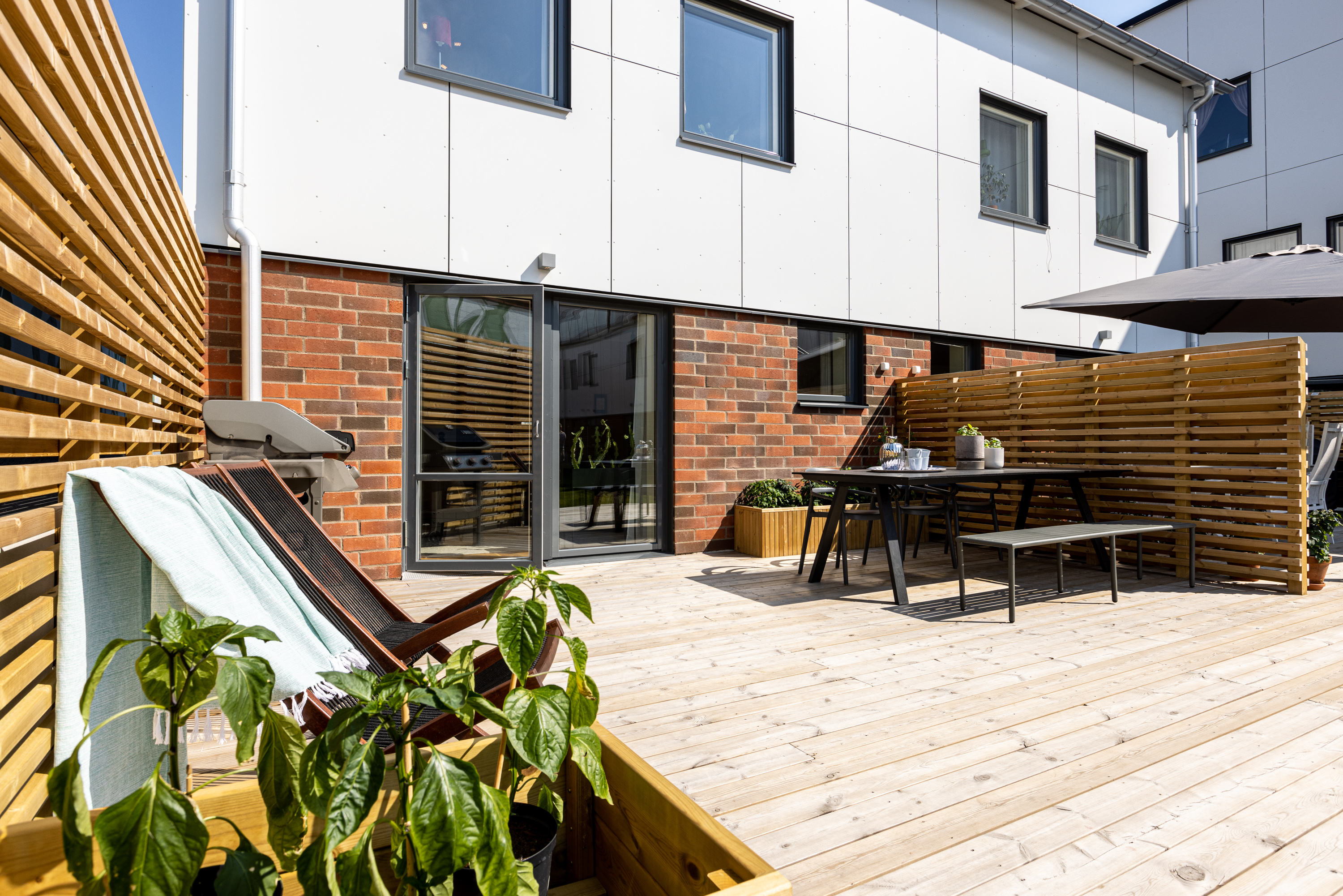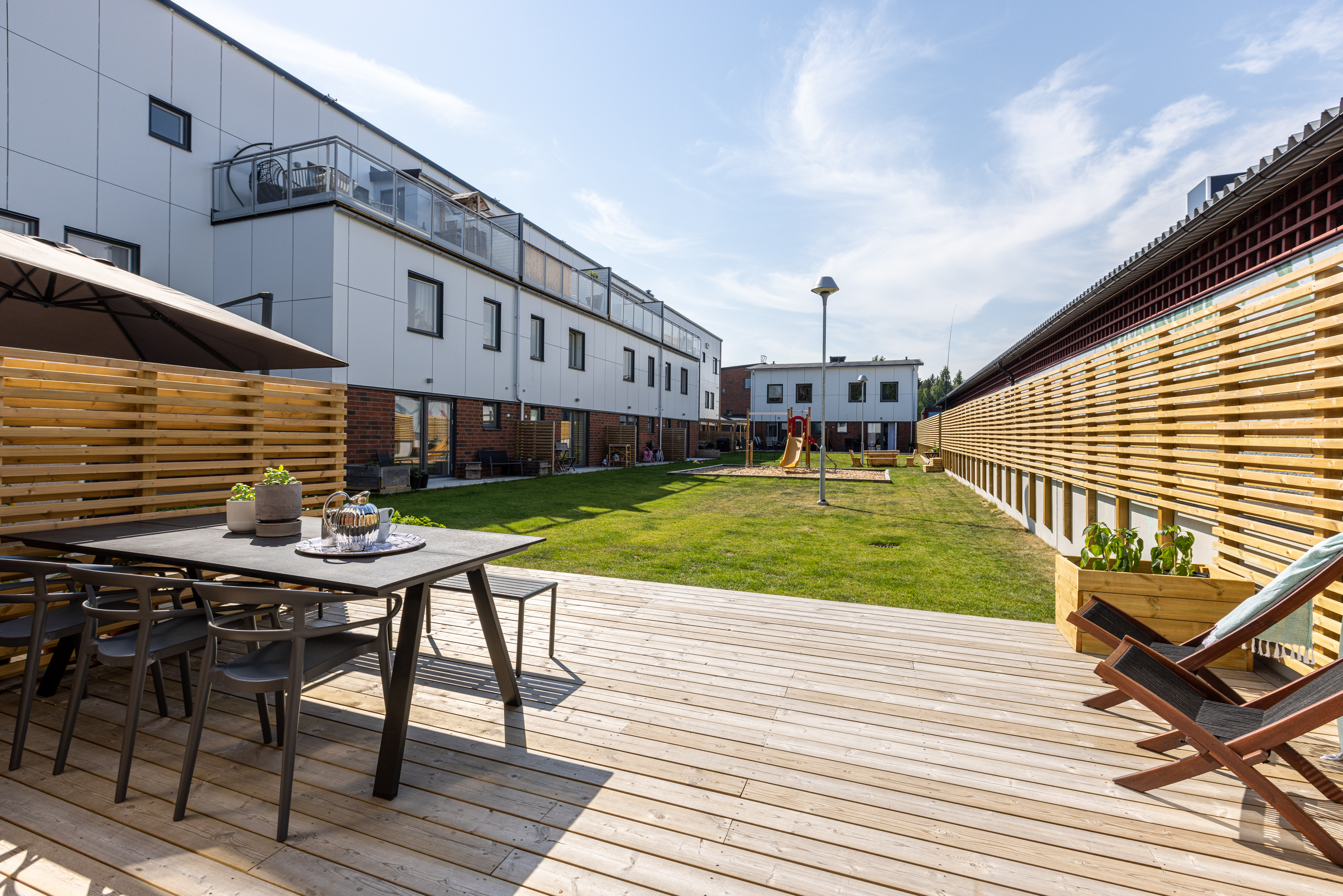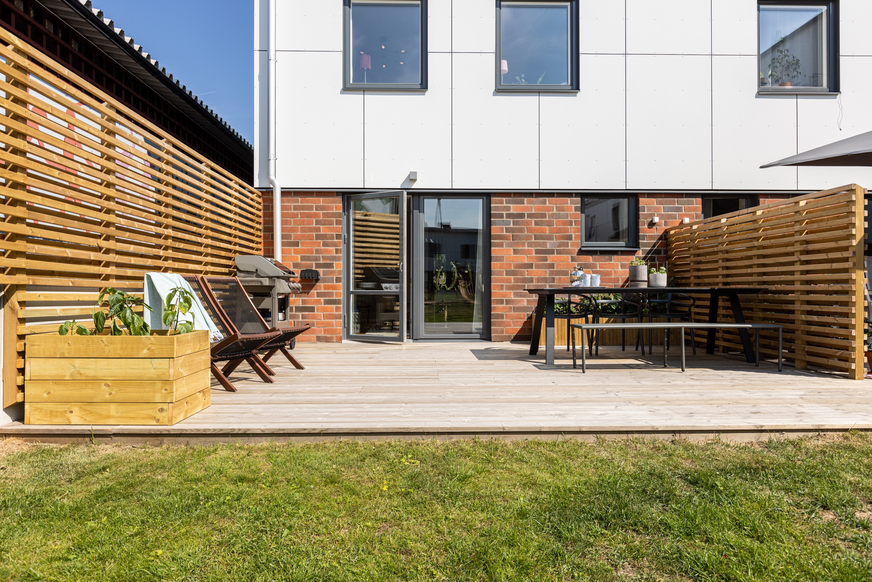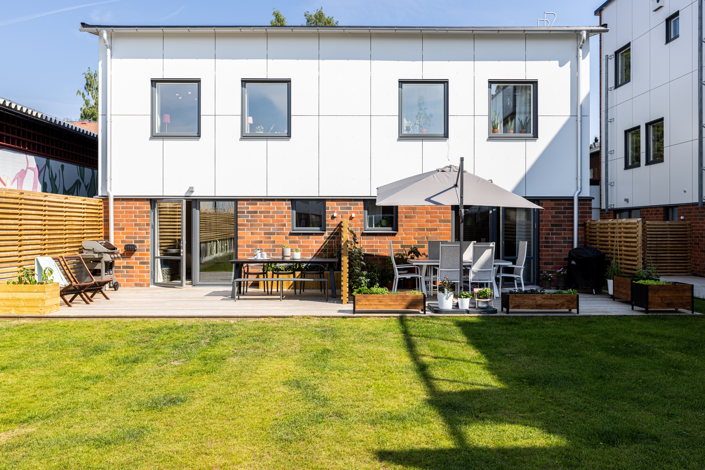 Altan mot innergården i västerläge och uteplats på framsidan.