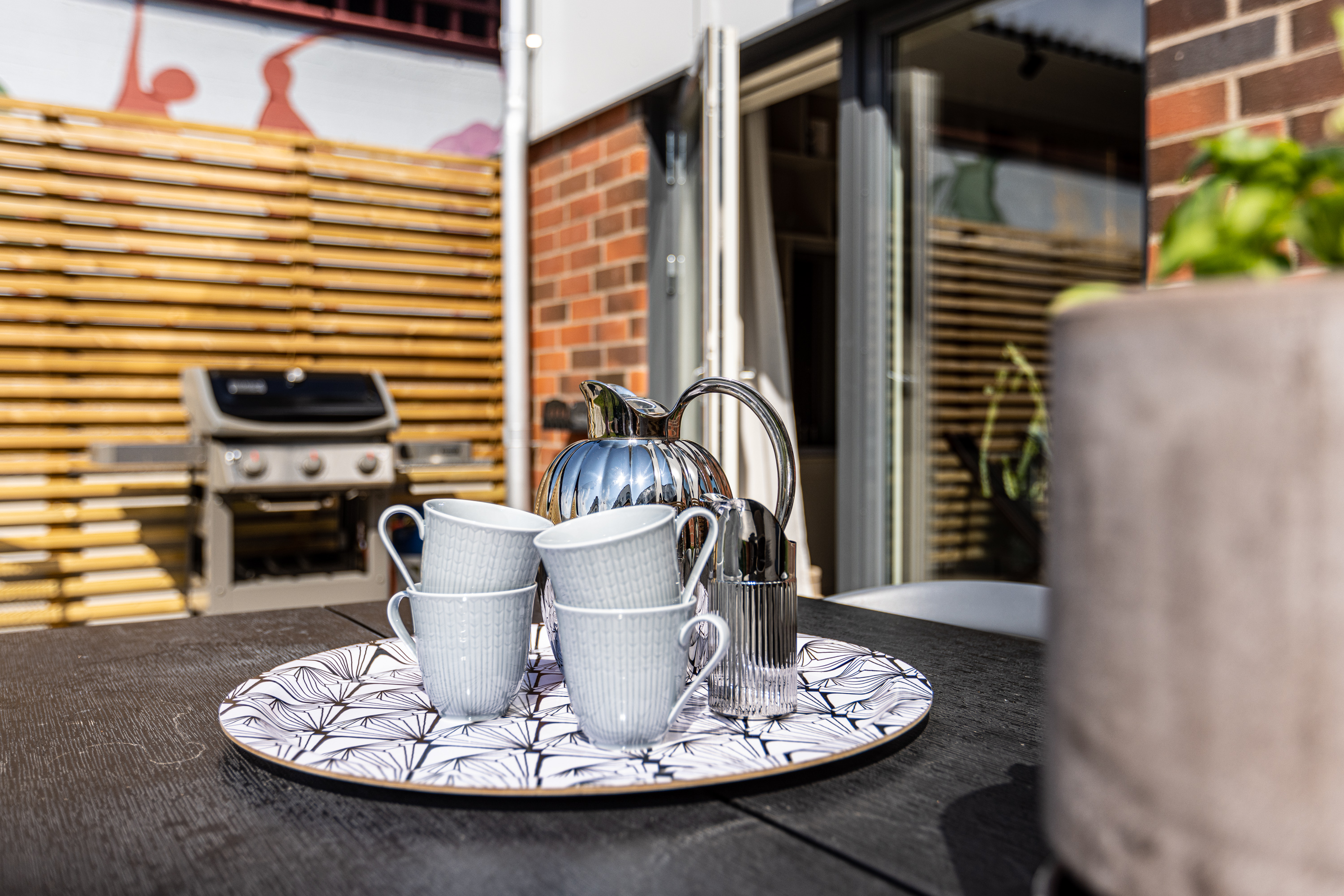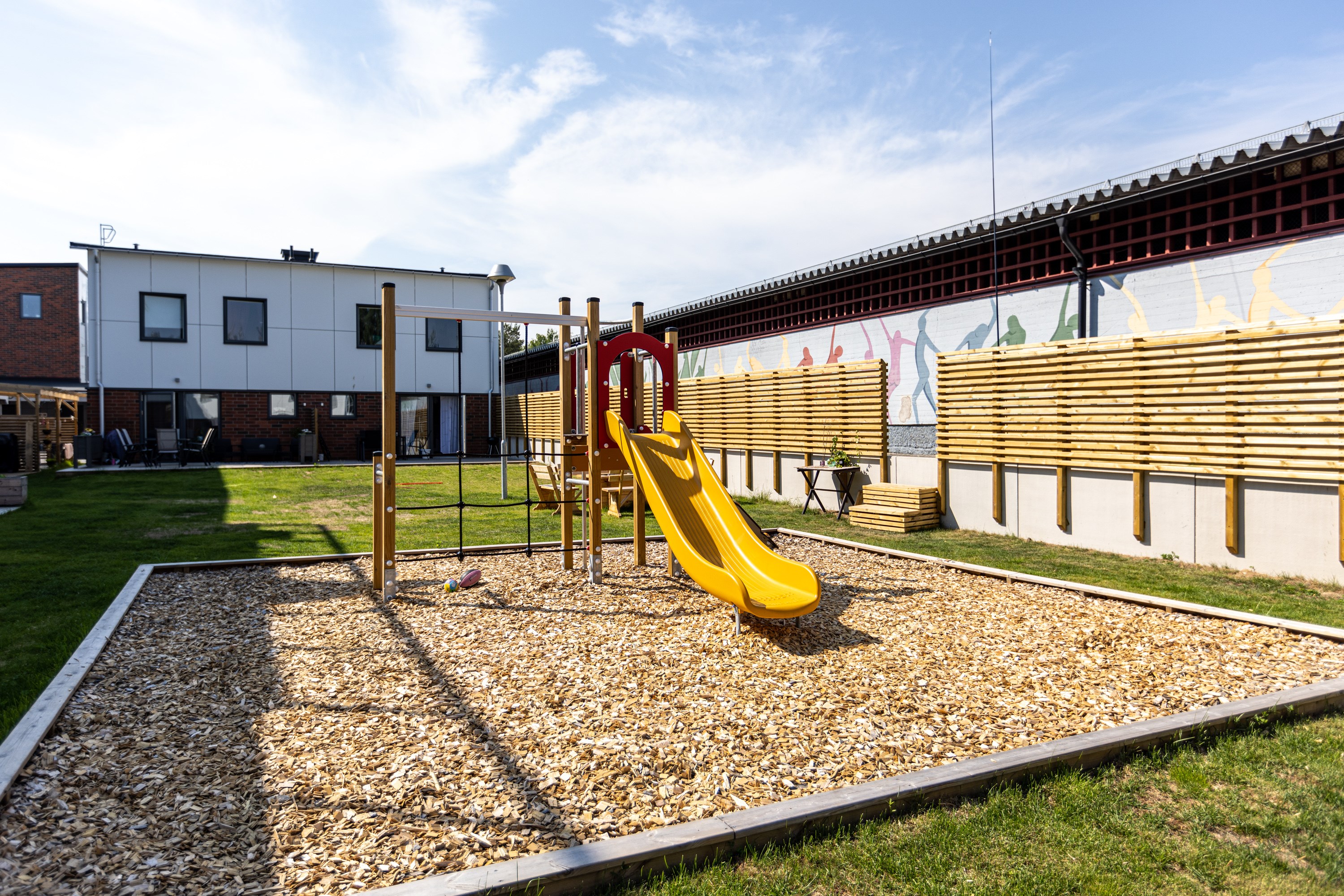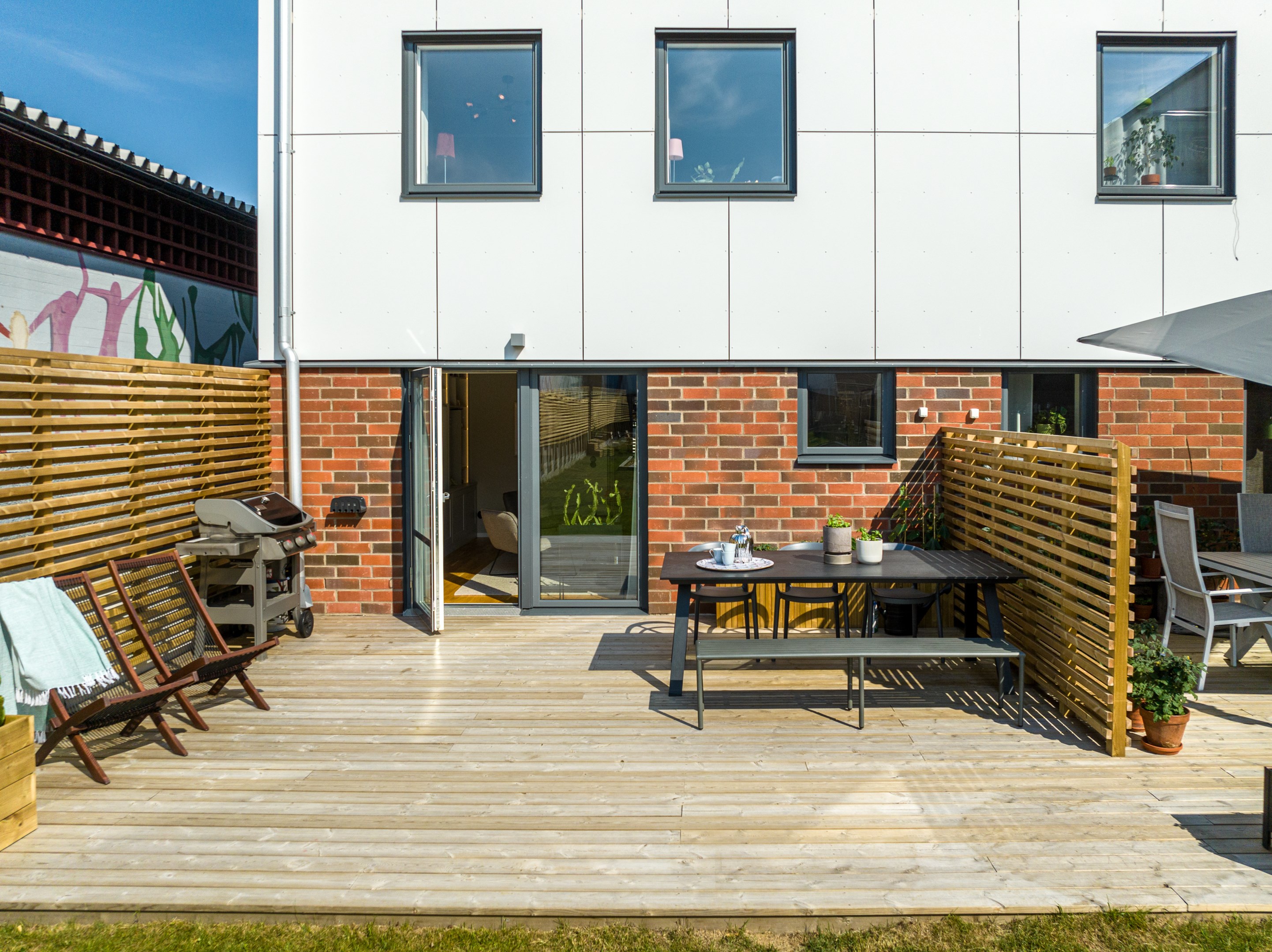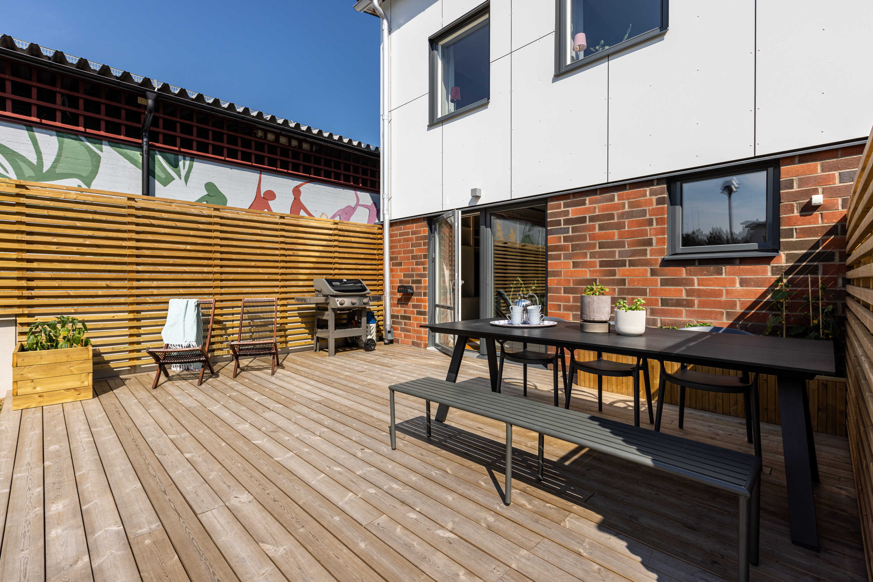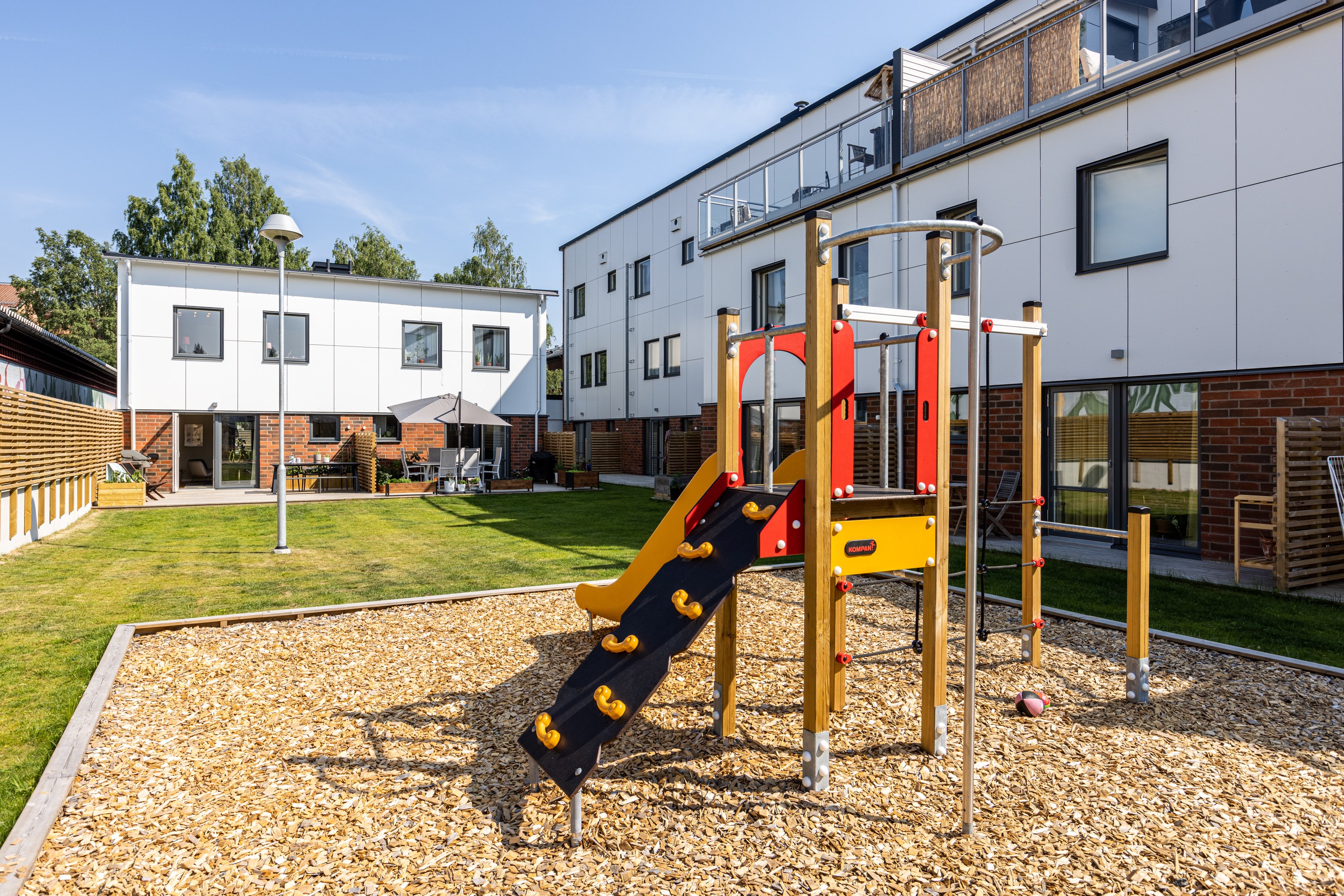 Altan mot innergården i västerläge och uteplats på framsidan.