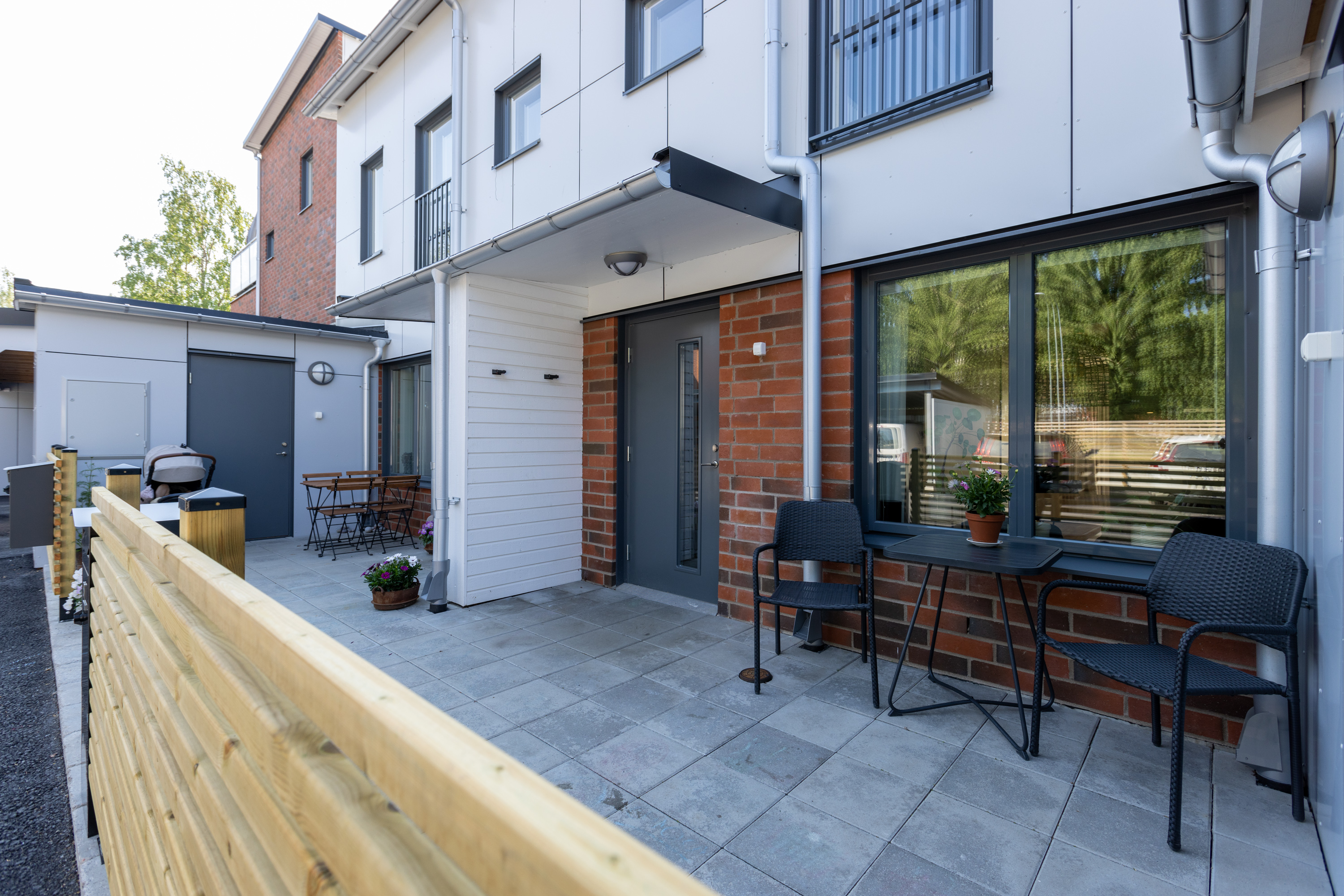 Balkong, uteplats och bilplats