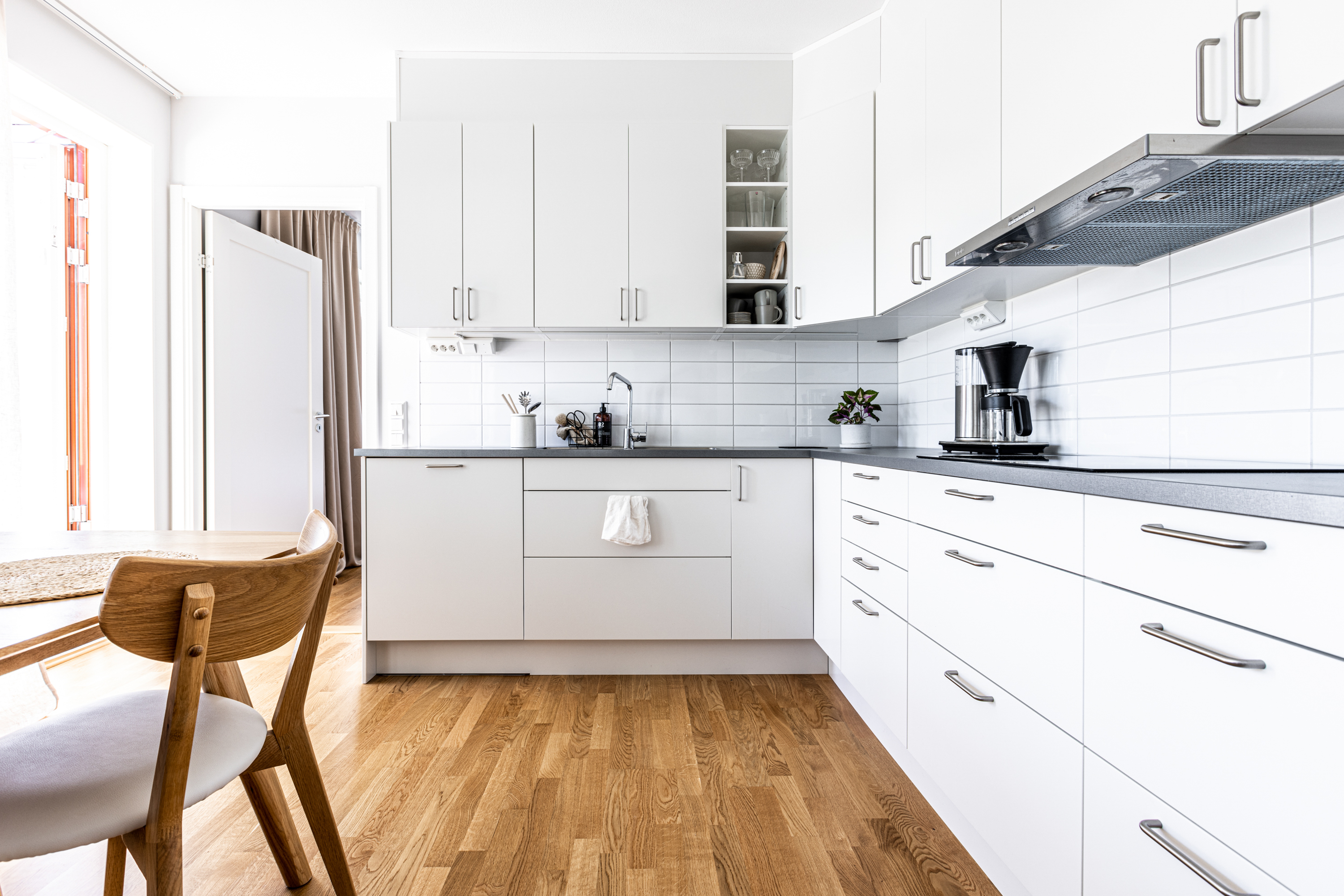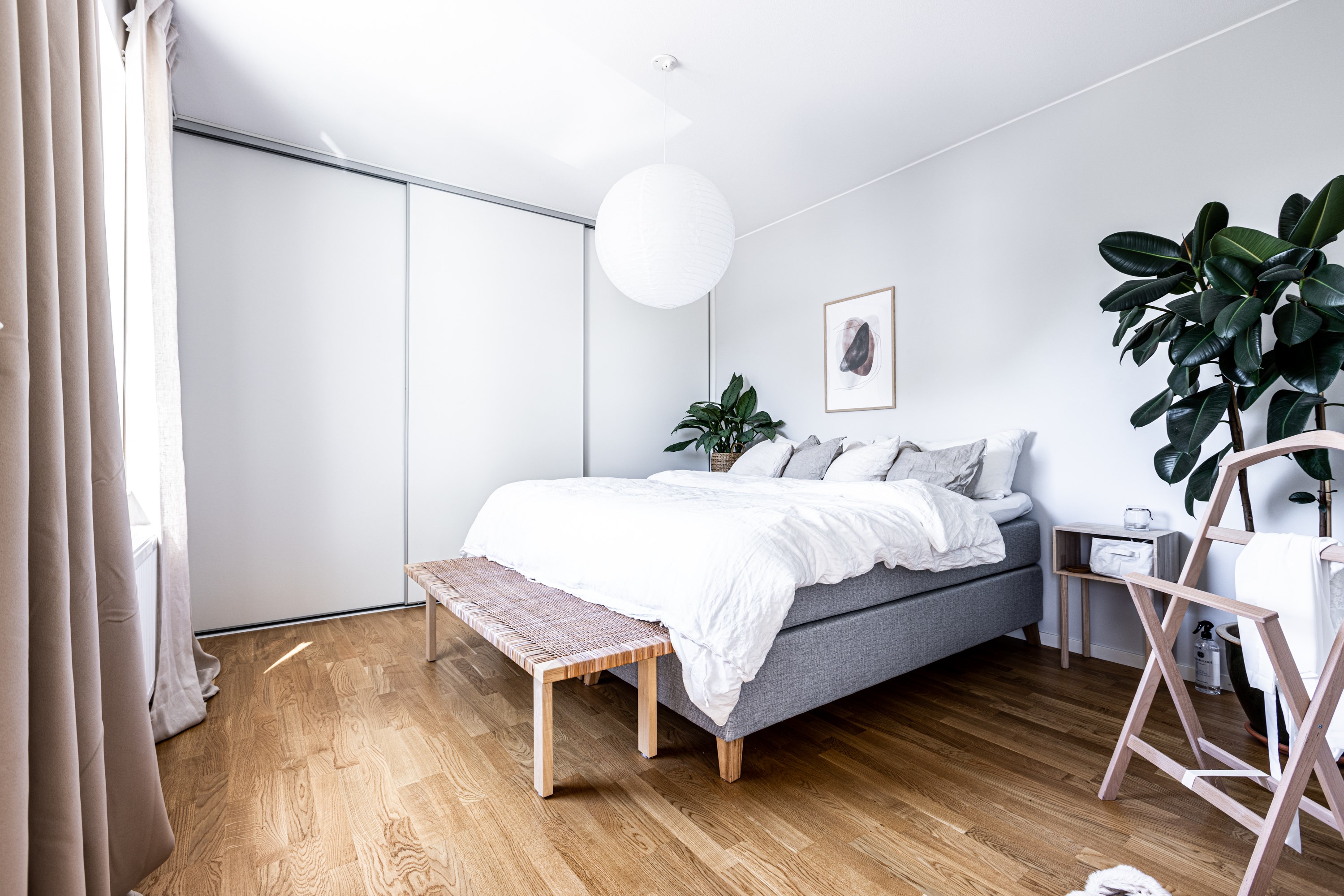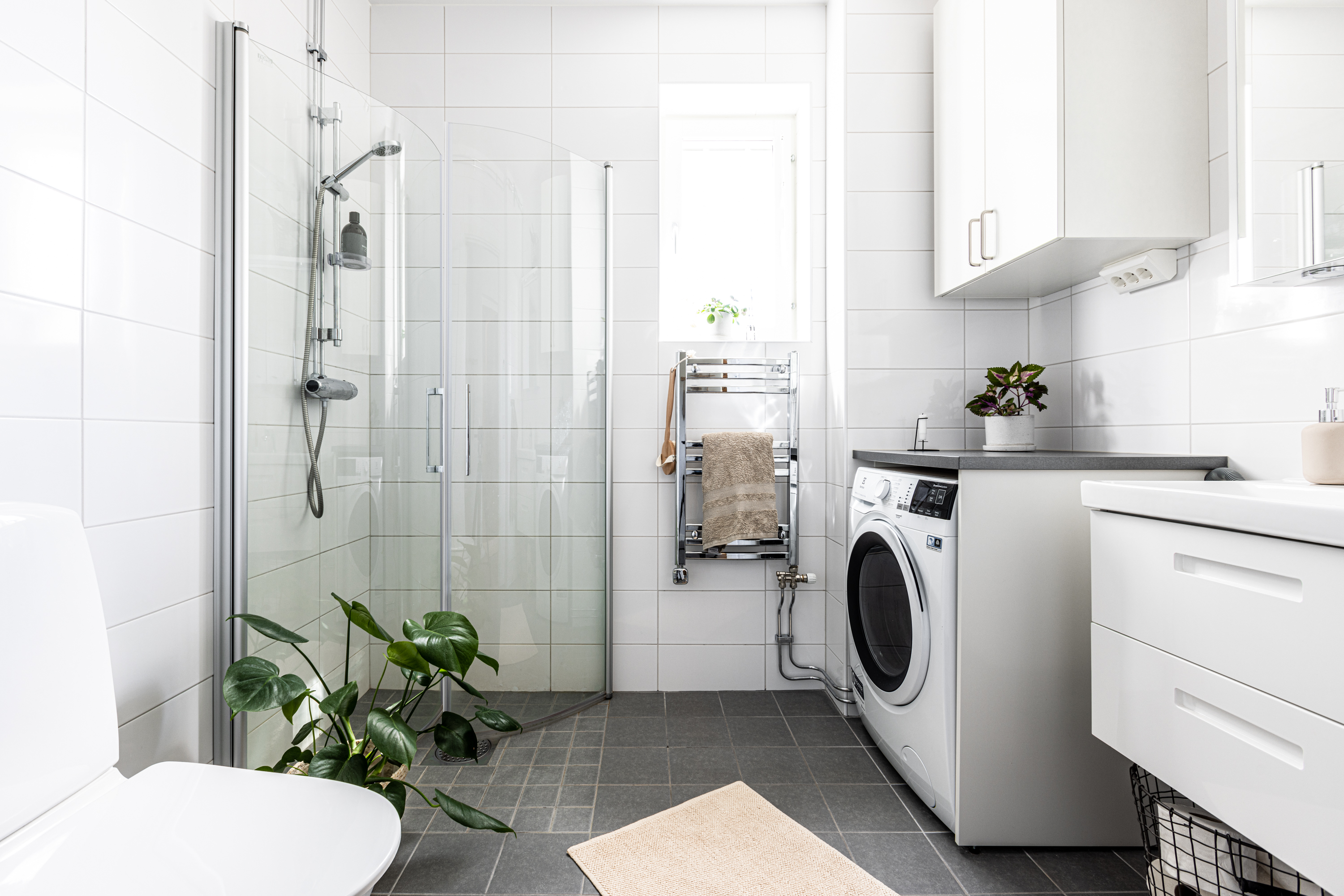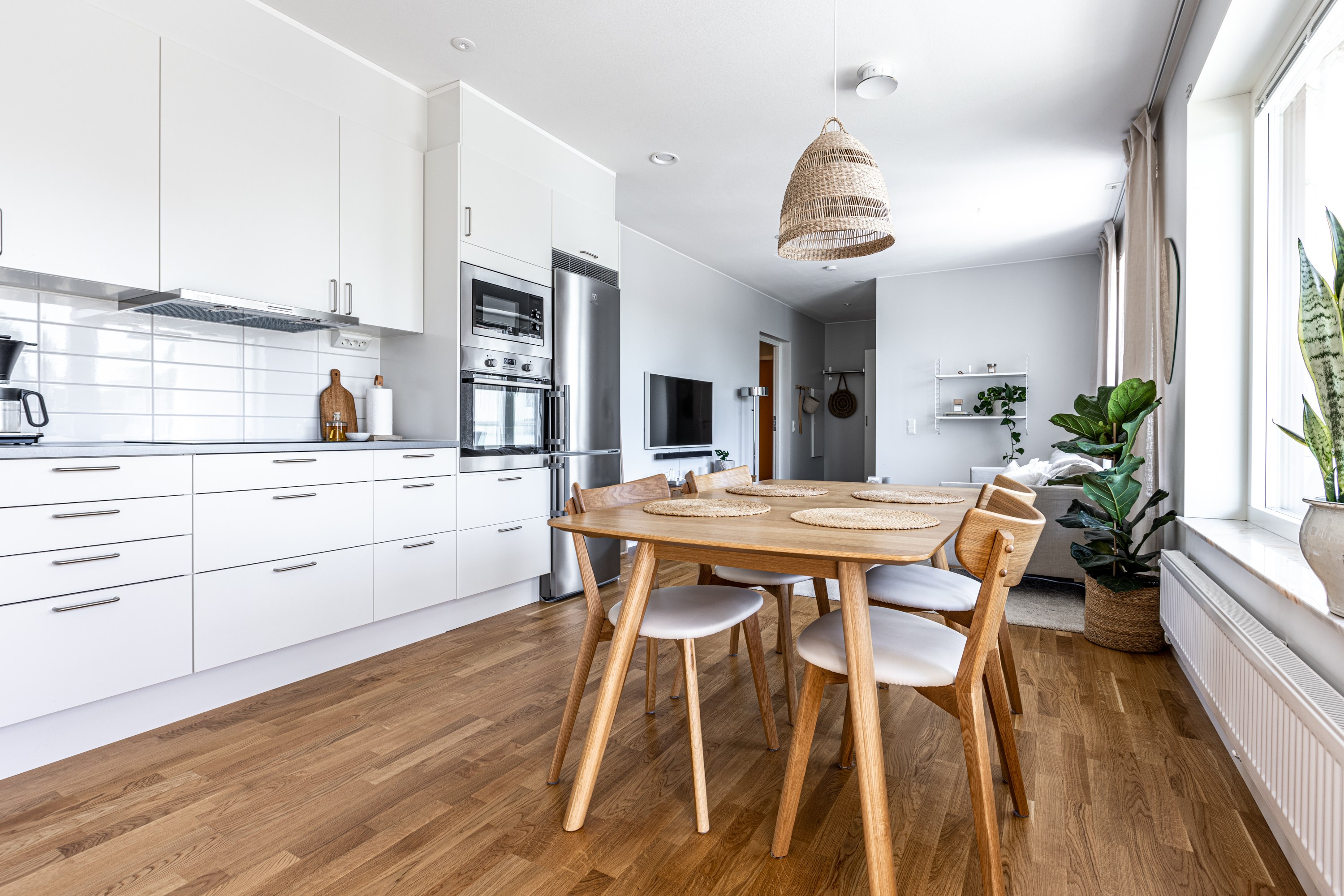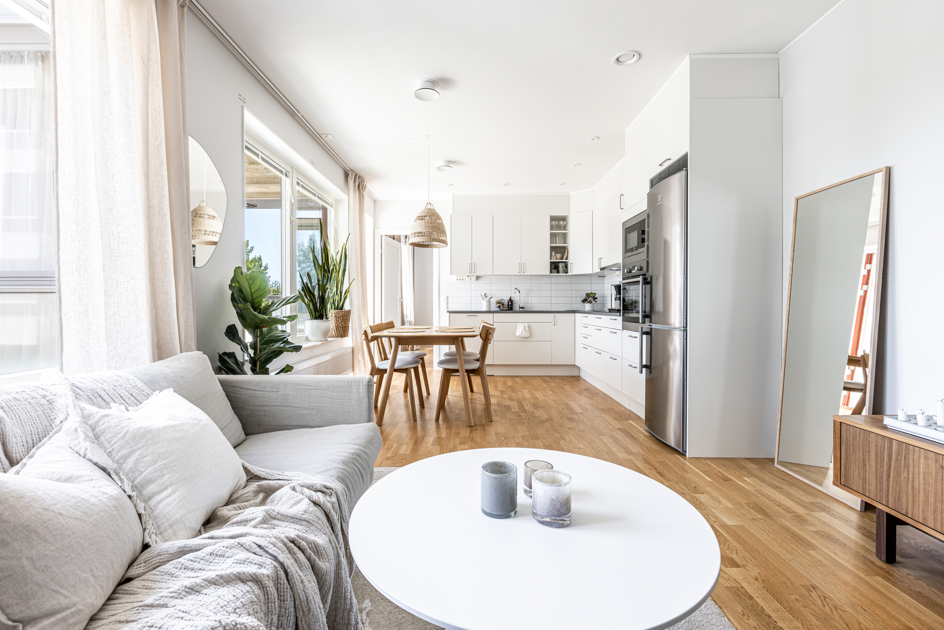 Hall med avhängning av ytterkläder och skor direkt till vänster samt förvaring eller städskåp i garderob som kommer att lämnas kvar i lägenheten. Helkaklat badrum med behaglig golvvärme, spotlights i taket och ett litet vädringsfönster. Dusch med infällbara glasväggar, handfat med kommod, spegelskåp med belysning, handdukstork och toalett. Egen kombinerad tvättmaskin/tumlare med bänkyta ovan och rymligt badrumsskåp. Vardagsrum och kök samspelar i en modern, öppen planlösning. Stora fönsterpartier ger bostaden härlig ljus och rymd. Från vardagsrummet nås den stora, inglasade balkongen som blir favorittillhållet under vår, sommar och höst. Köket bjuder på högkvalitativ och stilsäker inredning från Marbodal. Vit skåpinredning sällskapas av ett vitt kakel och en gråmelerad bänkskiva - klockren kombination. Maskinparken består av integrerad diskmaskin, kyl/frys, ugn och mikro, induktionshäll och fläkt. Matbordet placeras naturligt intill fönsterparti. Sist men inte minst: det rofyllda sovrummet! Har ni mycket kläder och annat som ni vill ha lättillgängligt men ändå dolt? Då kommer ni verkligen att uppskatta skjutdörrsgarderoben som sträcker sig från golv till tak och vägg till vägg. I sovrummet rymmer ni dubbelsäng!