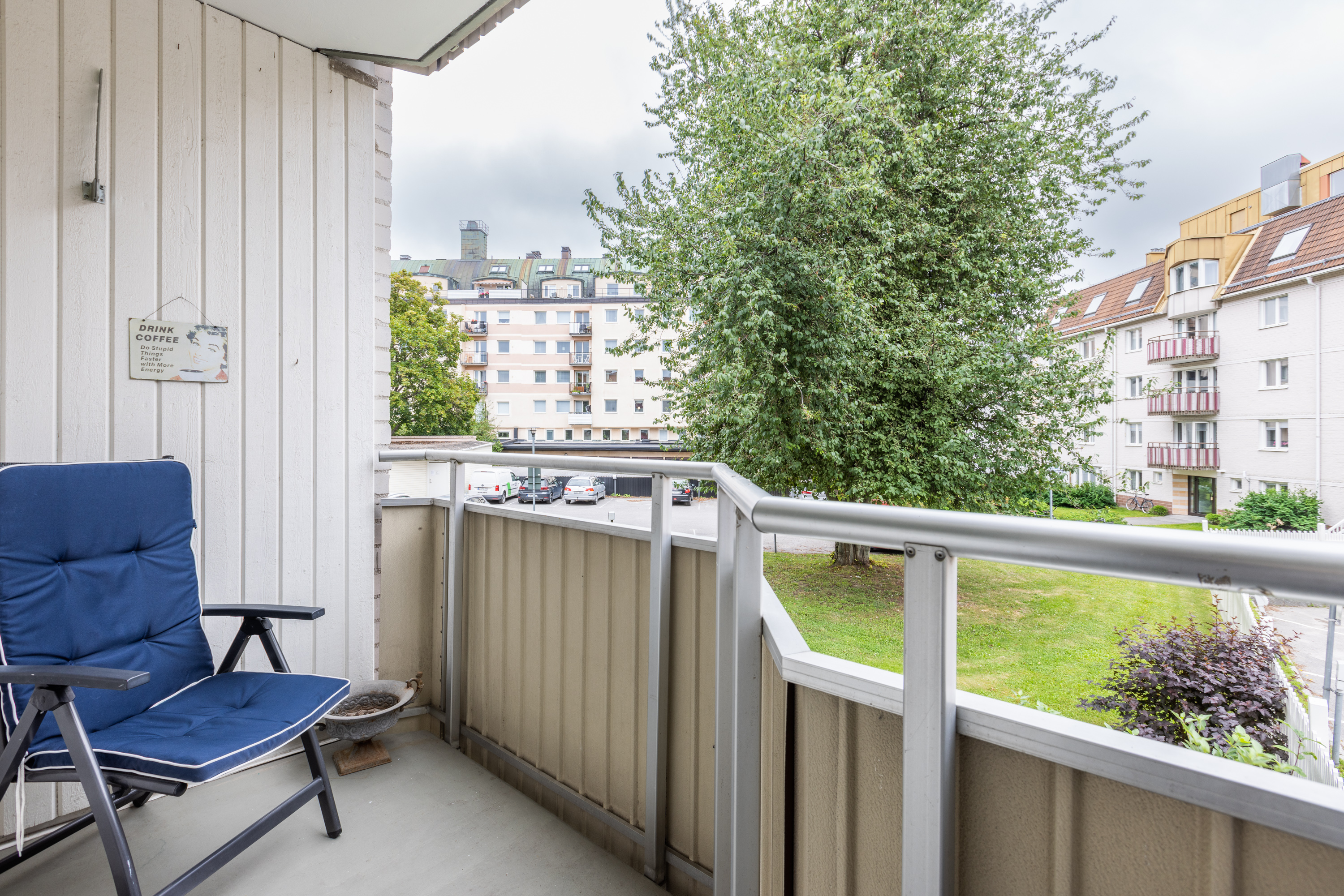 Balkong i sydost in mot föreningens innergård.