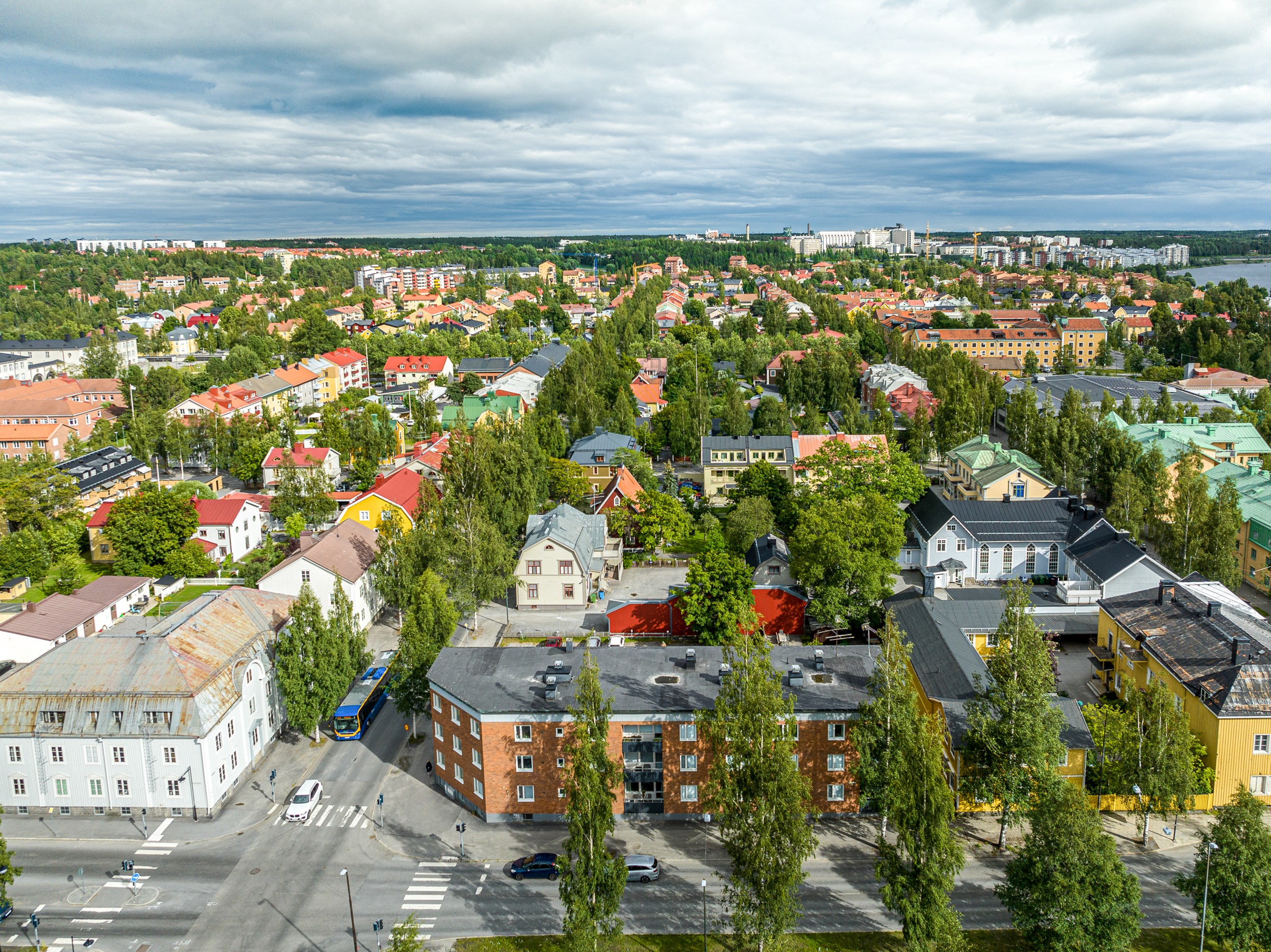 Centrala stan är Umeås hjärta. Umeåbornas vardagsrum är torgen och parkerna omgärdat av ett brett utbud av butiker, restauranger och nattliv. Umeälven är livsnerven rakt genom staden. Den tillför vyer, äventyr och variationer som berikar stadsmiljöerna. Den aktiverar umeborna och den skapar välmående i centrala stan – vi äter vår take-away lunch i parkerna, vi promenerar längs strandpromenaden och hit tar vi våra besökare. Sommartid ger fiskmåsarna och gästbåtarna oss en förnimmelse av att vi är nära havet. Centrala stan är en kreativ blandning av material, gammalt och nytt, höga och låga hus. En dynamik som väcker känslor och som gör staden intressant. Efter branden 1888, då näst intill hela staden brann ned, byggdes dagens Umeå upp i ett rutnätsmönster med långa, breda huvudgator kantade av våra älskade (och av vissa hatade!) björkar. Byggnader som ligger längs shoppingstråk och gågator har butiksentréer och skyltfönster i bottenvåningen medan resterande är en blandning mellan kontor och bostäder. Blandningen av bostäder och olika typer av verksamheter gör att centrala stan är full av liv långt efter att arbetsdagen tagit slut och solen börjar skymma. Här finns även knutpunkten för busstrafiken – Vasaplan som många Umeåbor använder varje dag. Centrala stan lockar såklart många människor – de som vill bo, besöka eller arbeta i området. Därför byggs det hela tiden nya bostäder och verksamhetslokaler. Många kvarter i centrumfyrkanten är under utveckling. Förtätningen är också ett led i arbetet att bygga en klimatsmart stad där vi t ex inte är beroende av bilar.