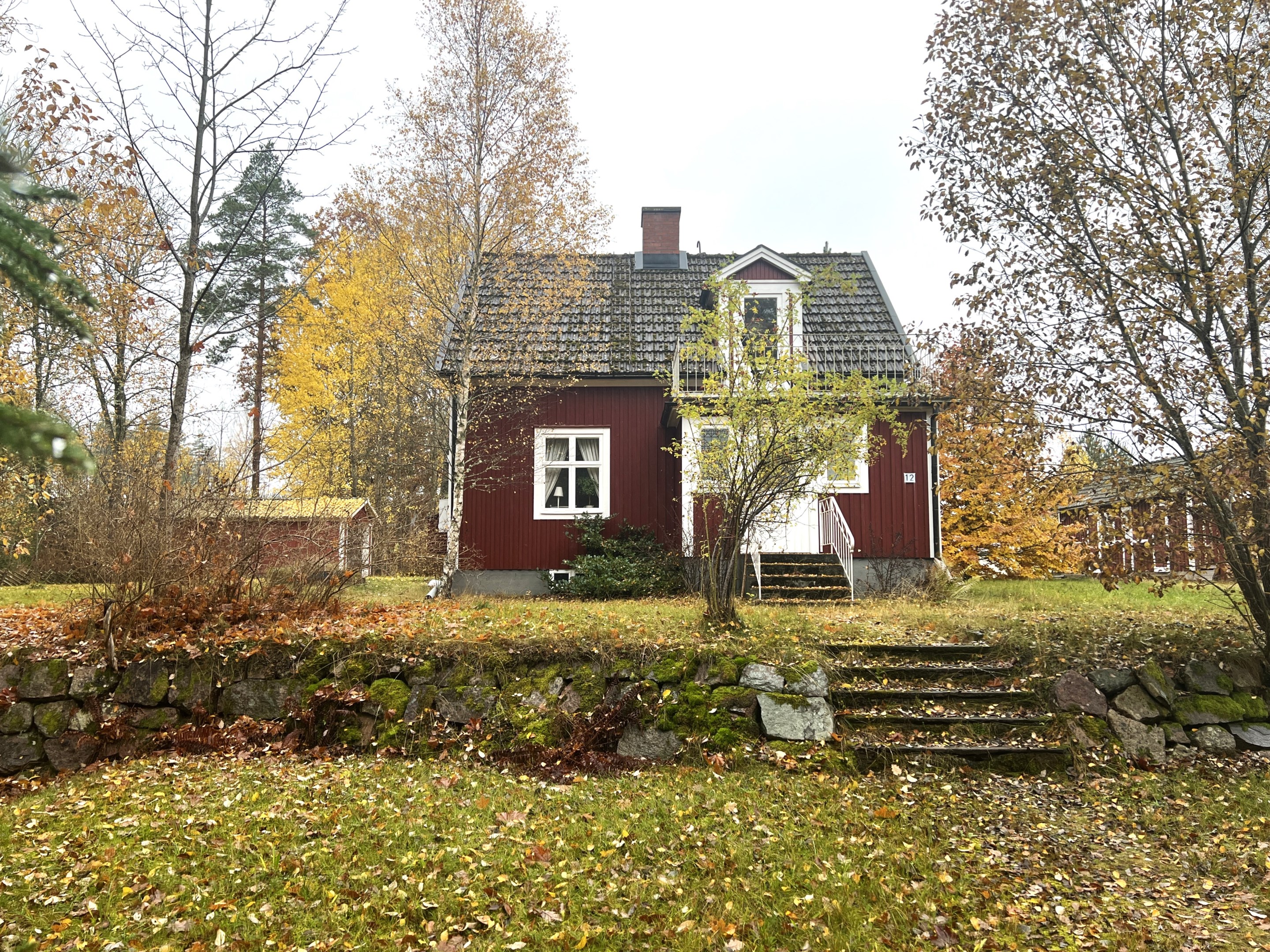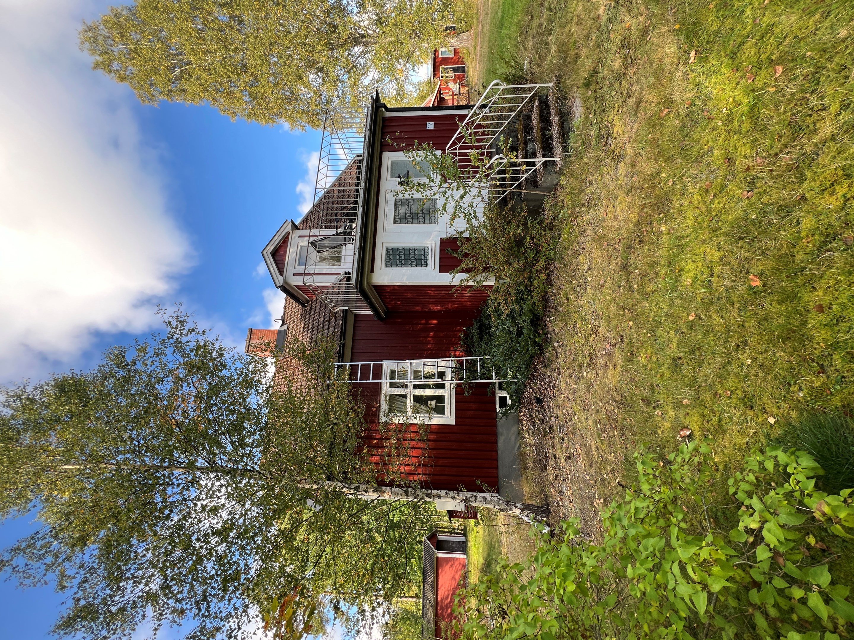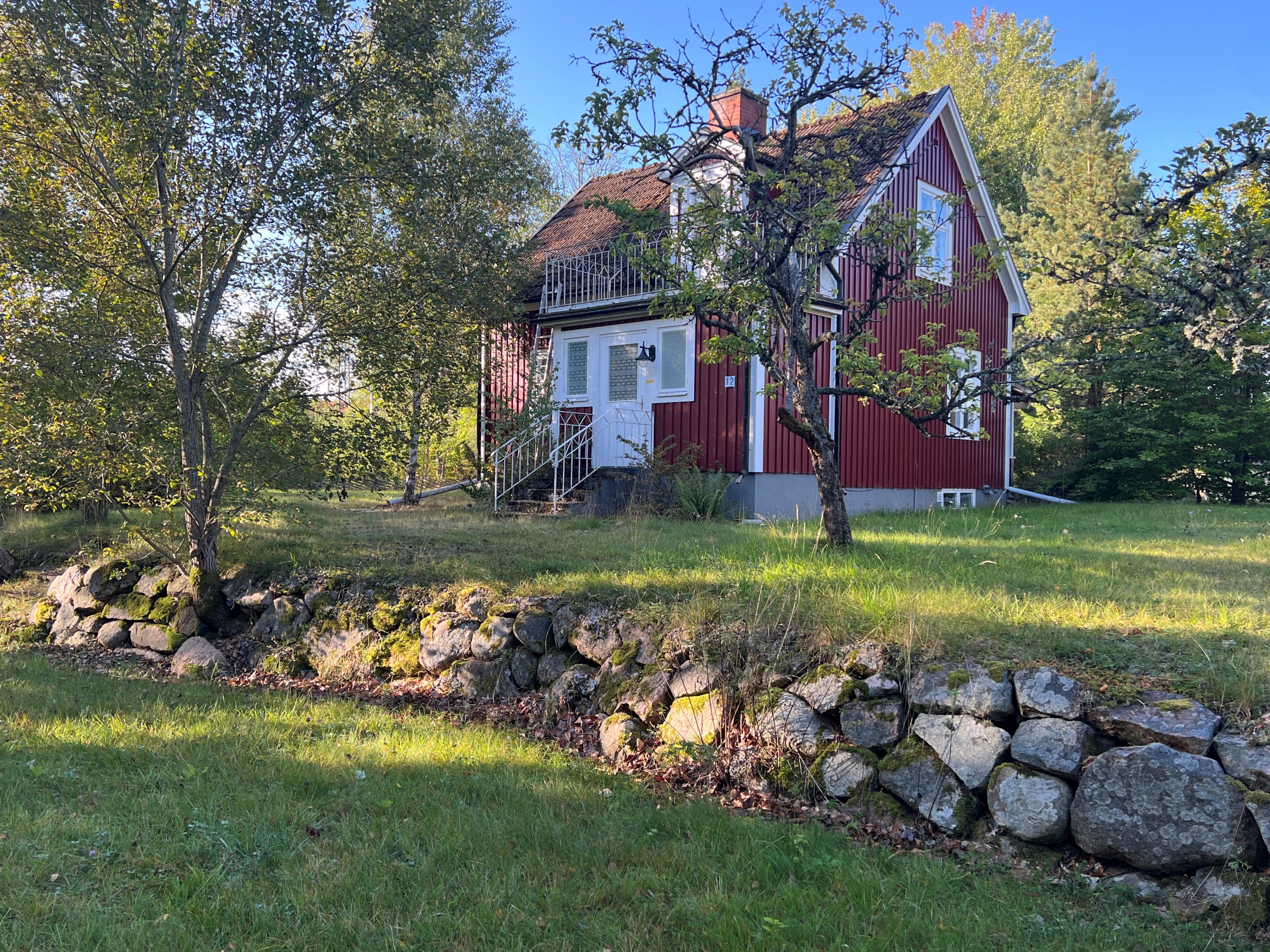 Småland. Rött hus med vita knutar. Skön trappa där man tar kaffet i solskenet och i vardagsrummet sprakar veden så hemtrevligt i kaminen. Vinden sjunger lite i alla fina träd som omger huset. Alldeles i utkanten av Fröseke svänger man upp på en liten grusväg som kantas av en gärdsgård. Den småländska känslan förhöjs när man når fram mot huset där det ligger högt och fint med en vacker stenmur i upphöjningen av den främre delen av tomten. Husets fasad är välvårdad och nymålad i rött och med vita knutar. Fönster och dörrar renoverades också för två år sedan då man också passade på att isolera vinden för att uppnå bättre energianvändning. Huset värms annars upp av luftvärmepump i matrummet, direktel samt en kamin som förre ägaren installerade, ca 2016. Det nedre planet består av en rymlig groventré där även källarnedgång finns. Därefter kommer köket som gjordes iordning för några år sedan där man nogsamt sparat den gamla träinredningen med lutande skåp och matchat med ny inredning bland annat en kyl/frys från Smeg. Matrummet ligger därefter och har en naturlig öppning till husets entré och vardagsrum. Genomgående ekparkett i fiskbensmönster här och i vardagsrummet är det gott om plats att mysa framför den värmande kaminen. Rymlig huvudentré och här finner vi även badrummet. Äldre inredning med badkar och dusch, toalett och tvättställ, kakel. Man rör sig lätt runt bland rummen på det här planet. I vardagsrummet finns även trappan upp till det övre planet. Trappan är klädd med heltäckningsmatta och vi kommer upp till en ljus hall med samma golvbeklädnad samt utgång till rymlig balkong. Stor "gåinigarderob". Här finns också 2 bra och rymliga sovrum, båda med varsitt fönster, garderob samt heltäckningsmatta. Från groventrén leder trappan ner till källaren. Rymlig med ett stort rum där det ryms en gammal CTC-panna, oljetank och tvättmaskin samt plats för förvaring. Matkällare med hyllor. Utanför groventrén finns en skyddad uteplats med trallgolv och plasttak. Fristående förråd på ca 36kvm innehållande påbörjad byggnation av ett gym, vedförråd samt förrådsrum. På tomten finns även en fristående carport. Stor, trevlig tomt som flyter ihop med naturen på ett bekvämt sätt med den intilliggande skogen. Flera träd samt även fruktträd. Väldigt småländsk och trevlig miljö med stenmuren och gärdsgården. Visst sommarboende finns i närheten men det här är en lugn och ostörd plats där man ändå har nära till centrum. Ett rejält hus där man kan plocka fram ännu mer av den ursprungliga charmen. Trivsamt!
