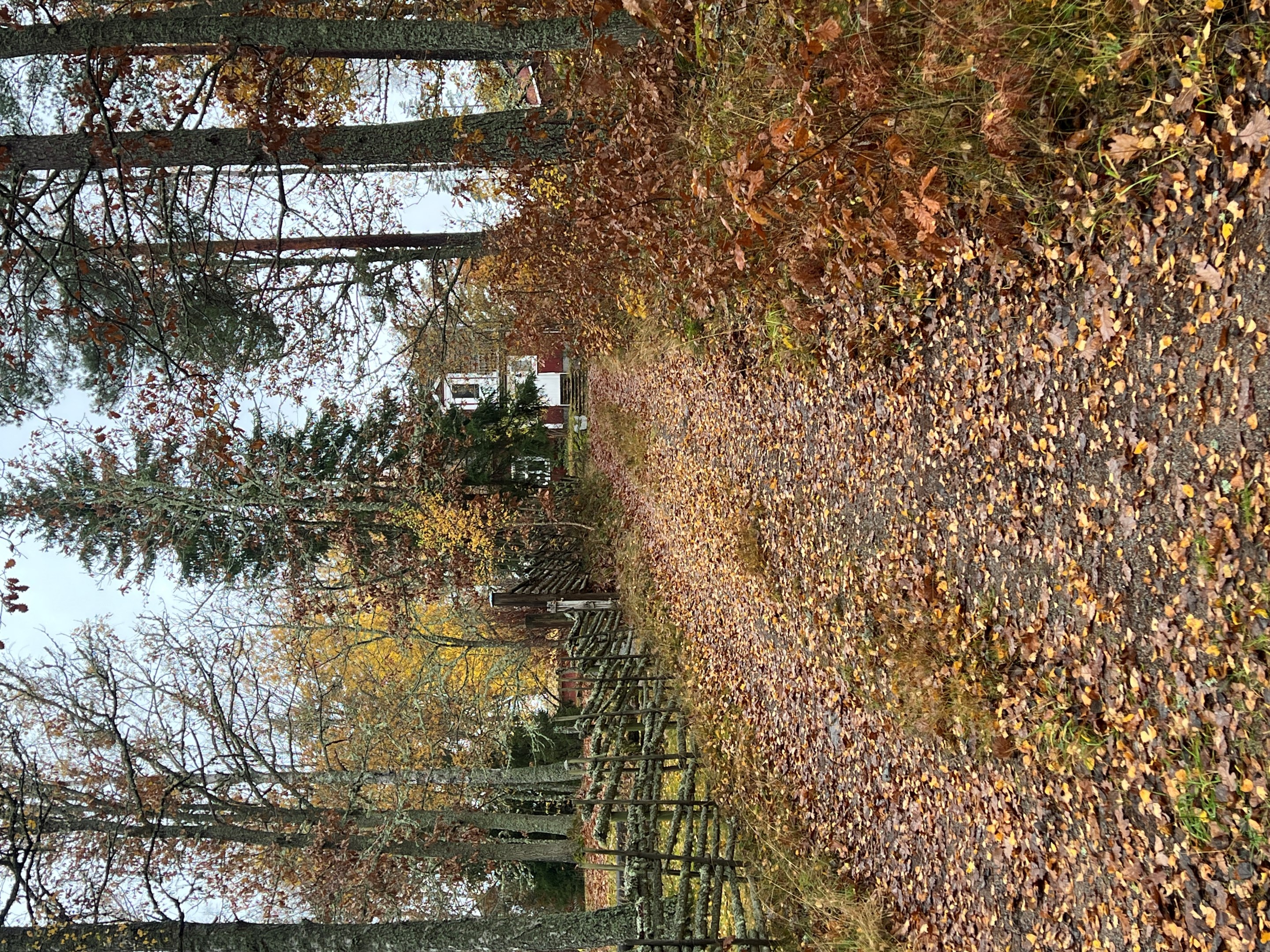 Stor, trevlig tomt som flyter ihop med naturen på ett bekvämt sätt med den intilliggande skogen. Flera träd samt även fruktträd. Väldigt småländsk och trevlig miljö med stenmuren på framsidan.