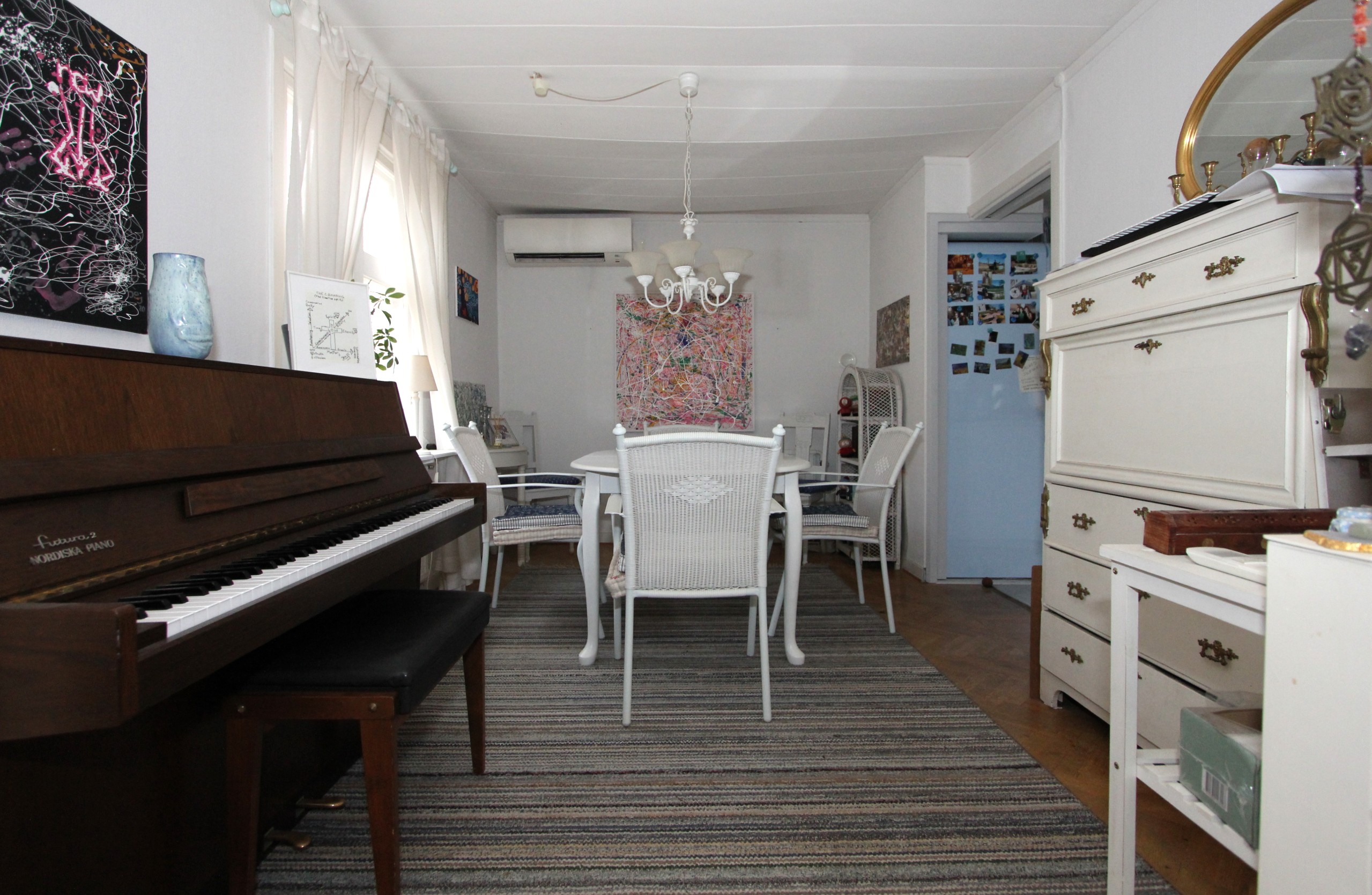 Från köket kommer man till det fina matrummet. 1 fönster och fiskbensparkett. De renoverade fönstren är verkligen fina och vi har 1 här. Luftvärmepump-16.