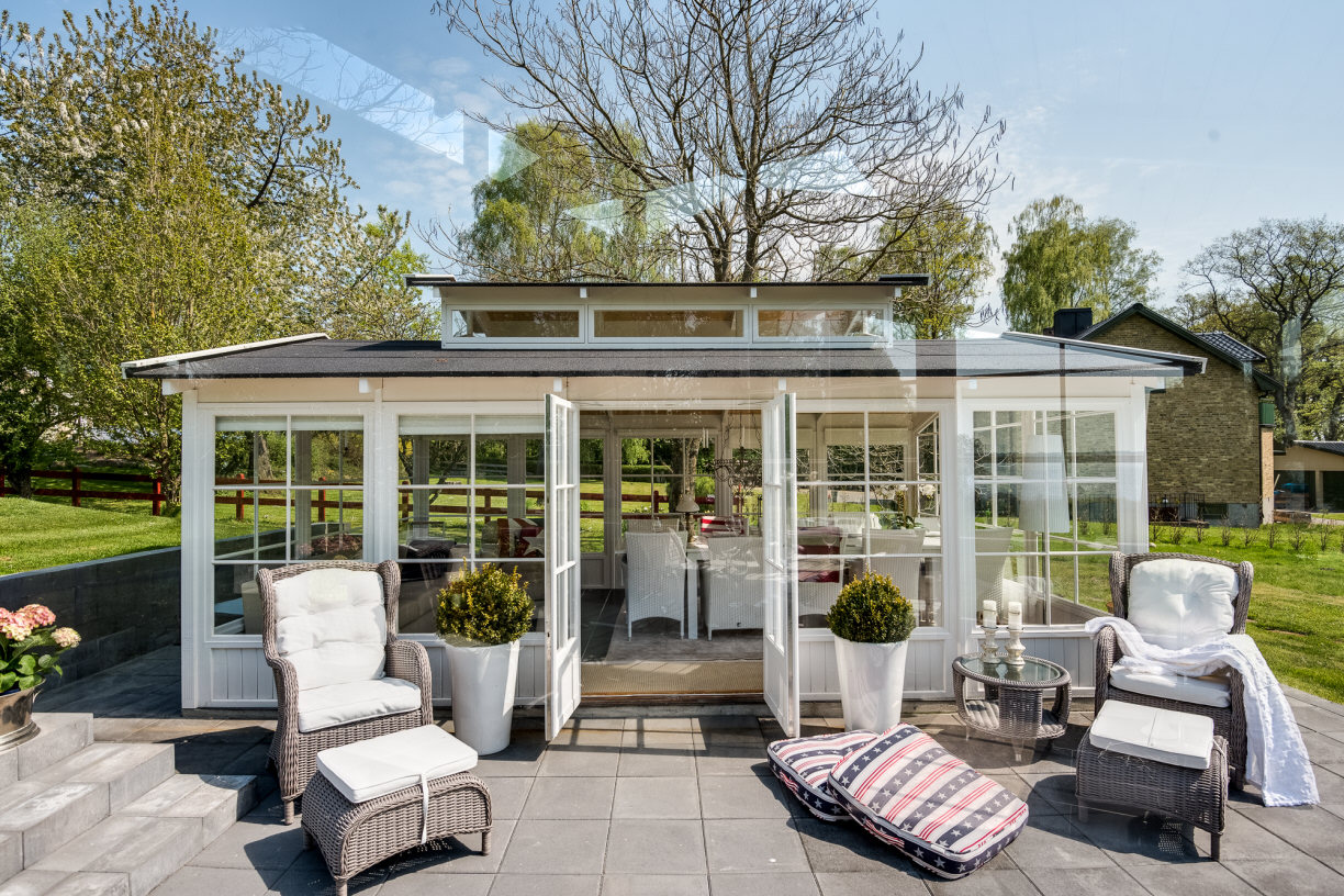 Lusthus (2015) med gjuten platta. Garage för två bilar Carport för 1-2 bilar.